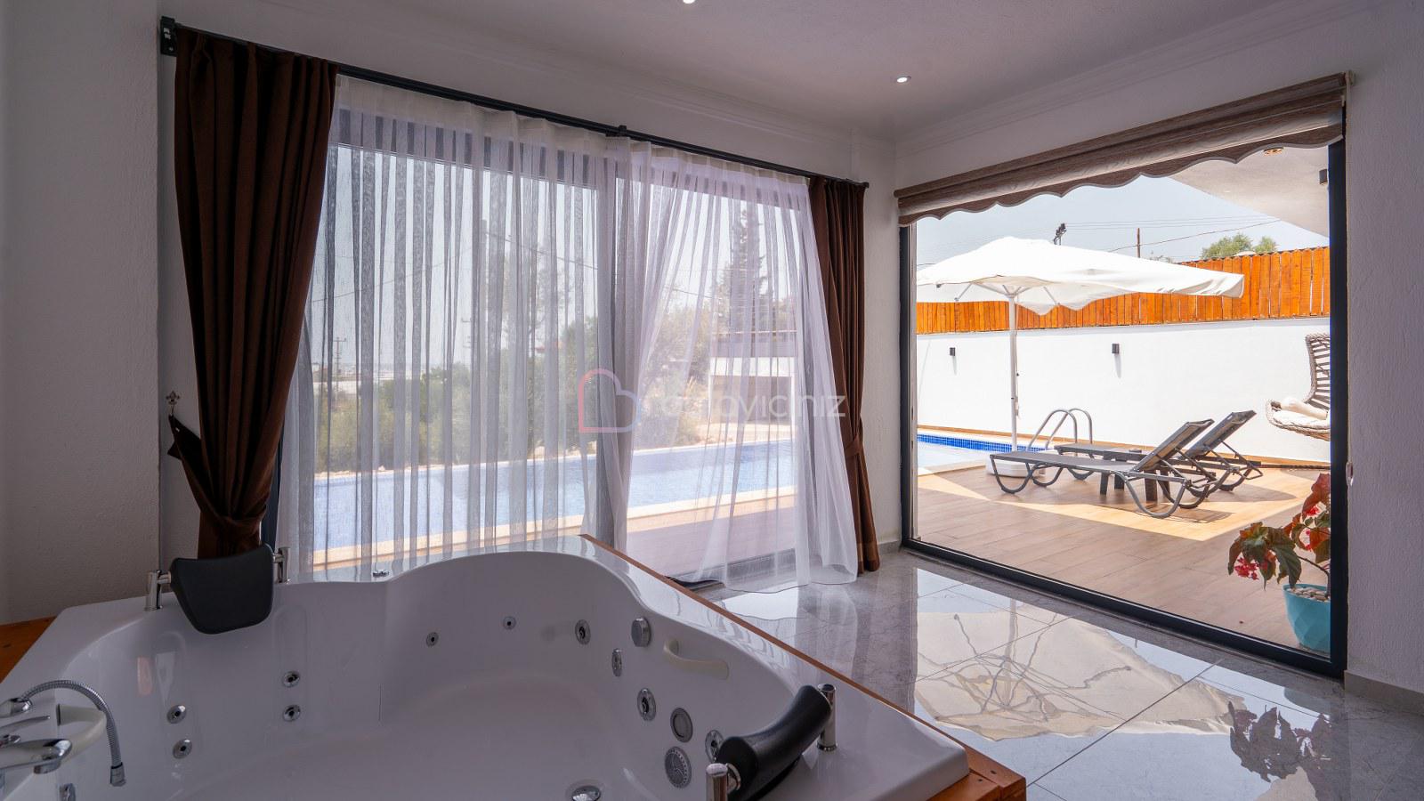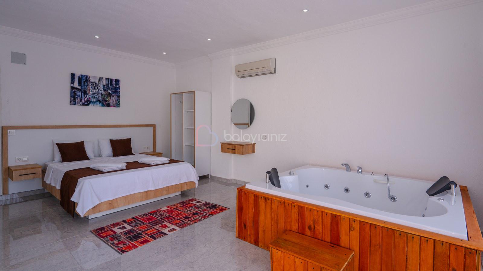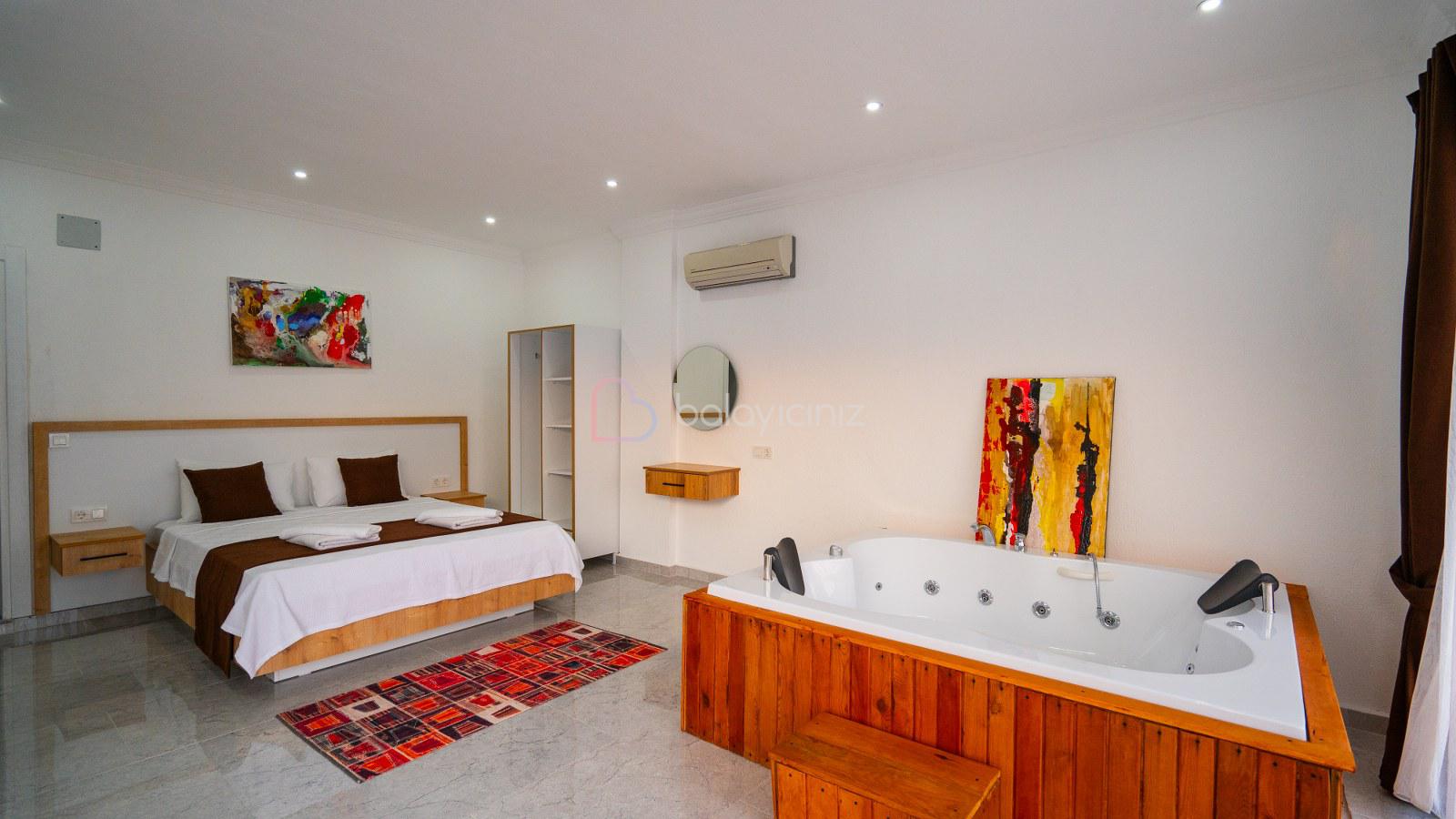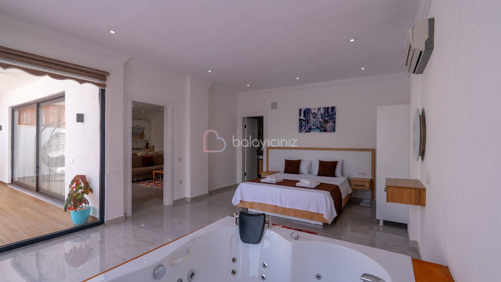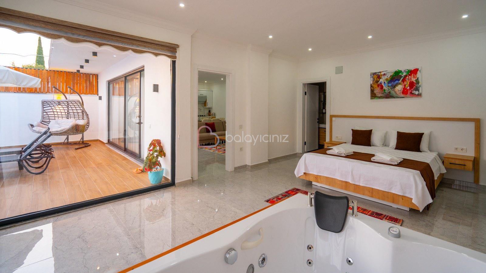 1. Yatak Odası: 1 adet çift kişilik yatak, klima, komodin, elbise dolabı, makyaj masası, jakuzi, banyo ve tuvalet bulunmaktadır.
