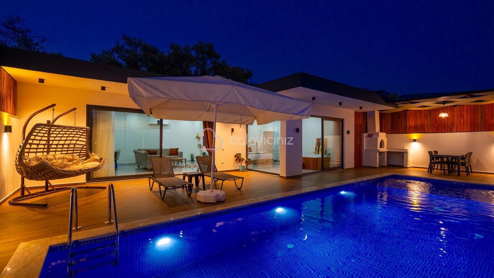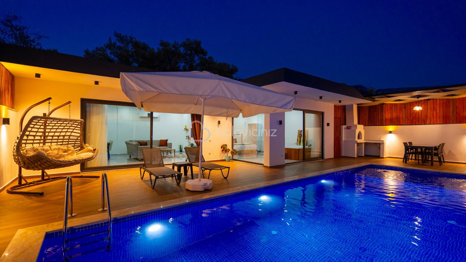 Villa Safari, Kalkan Çayköy bölgesinde konumlanmış, 1 yatak odalı, 2 kişi kapasiteli, jakuzili, doğa içerisinde korunaklı balayı villasıdır. Villa Safari, lüks ve konforlu dizaynının yanısıra, doğa içerisinde, sizlere şehir hayatının gürültüsünden uzak, huzurlu ve dinlendirici bir tatil sunmaktadır. Korunaklı havuz alanı ve ihtiyacınız olan her şeyin mevcut olduğu seçeneğimiz balayı çiftler, muhafazakar çiftlerimiz için ideal bir seçenektir. İhtiyacınız olan her şeyin mevcut olduğu villamızda sizlere sadece tatilin tadını çıkarmak kalıyor.