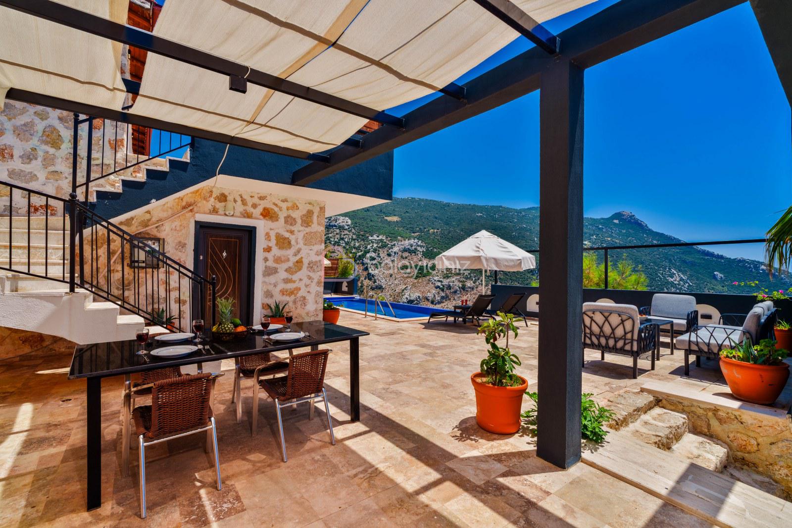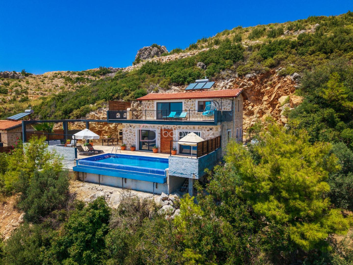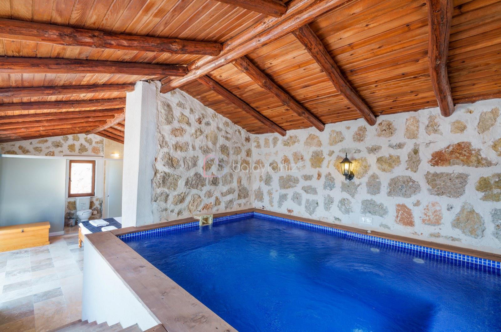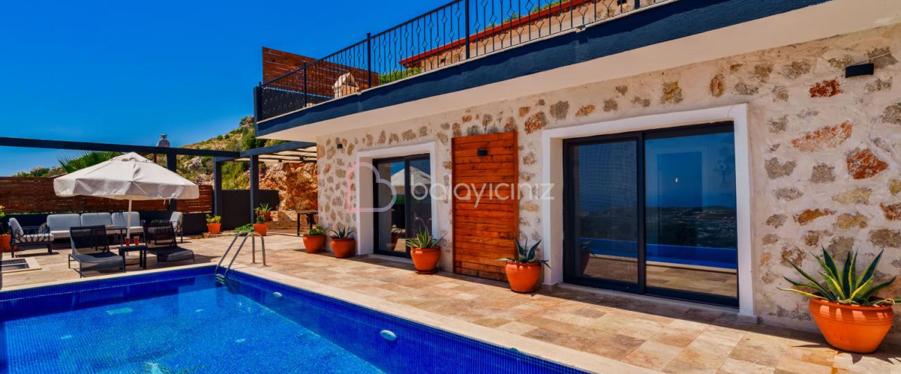 Yemek HizmetiKalkan İslamlar Köyü Öz Mevkii’nde bulunan Safi, taş ve ahşap oluşumu bir binadır. Zevkle döşenmiş iç dekorasyonu ile, muhafazakâr balayı çiftleri ya da 4 kişilik aile ve arkadaş grupları için idealdir. Kapalı ısıtmalı havuzlu ile size muhteşem bir tatil deneyimi yasatacak bir villamızdır. Yemyeşil bir doğanın içerisinde gözlerden uzak, sakin ve huzurlu bir tatil tercihiniz var ise Villa Safi doğru bir seçim olacaktır. Kapalı ısıtmalı havuzu bulunmaktadır.