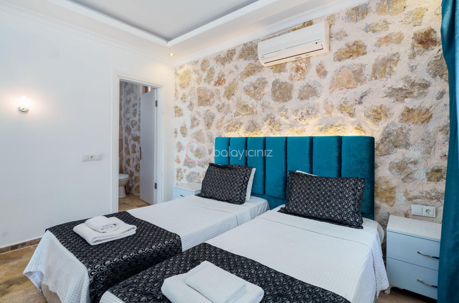 2. Yatak Odası: 2 adet tek kişilik yatak, elbise dolabı, makyaj masası, komodin, klima, banyo ve tuvalet bulunmaktadır.