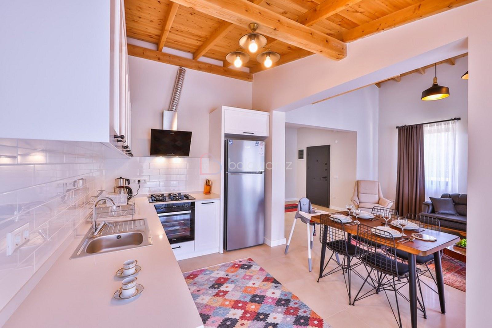 Modern Amerikan mutfak, buzdolabı, bulaşık makinesi, çamaşır makinesi, ankastre fırın, mikrodalga fırın, ankastre 4’lü ocak, elektrikli su ısıtıcısı (kettle), 4 kişilik yemek takımı, çeşitli mutfak araç gereçleri bulunmaktadır.