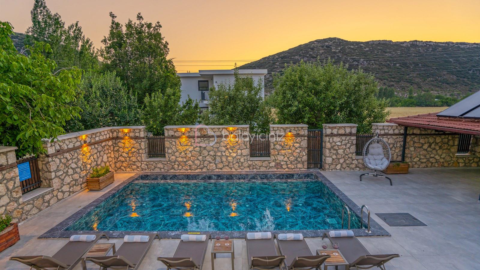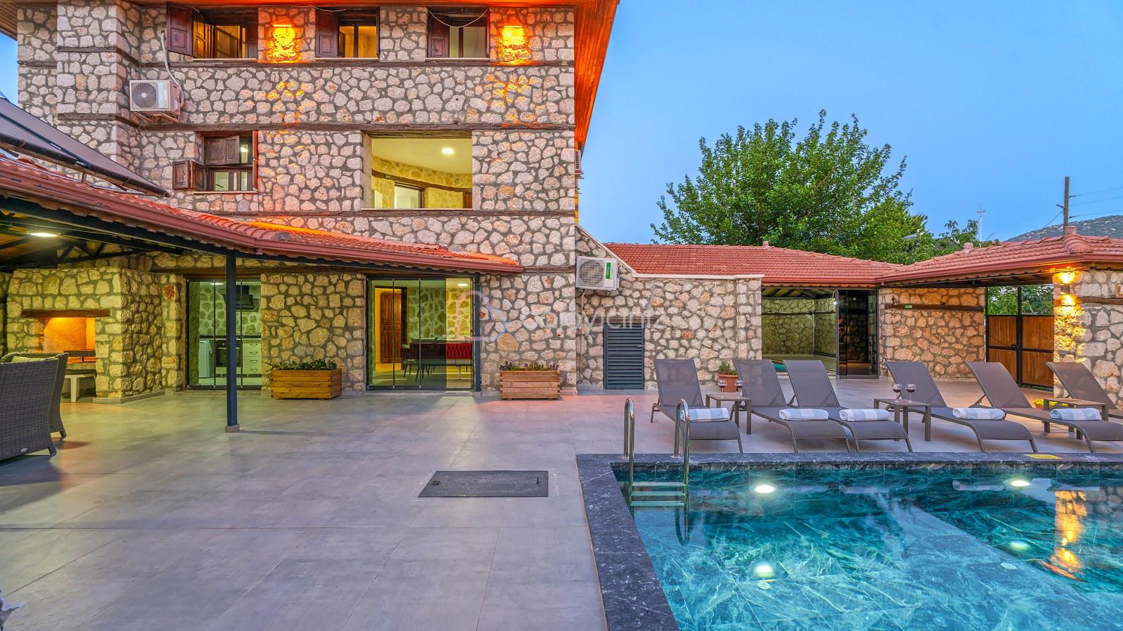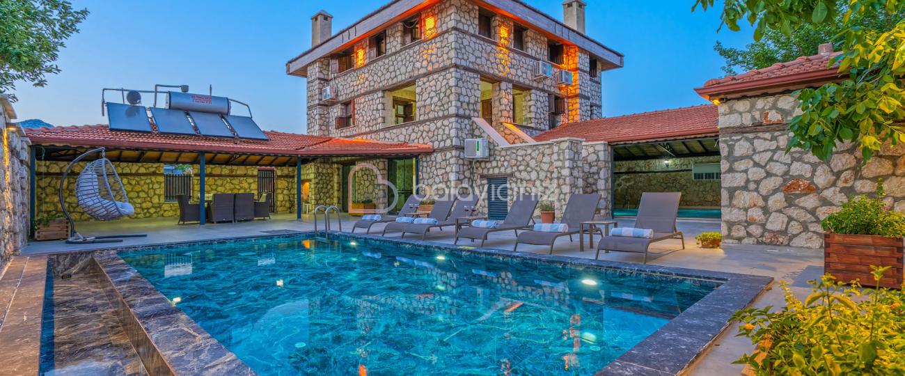 Kalkan’ın Bezirgan Köyünde bulunan Villa Şah Duo, yemyeşil bir doğanın içeresinde aileniz ile yapabileceğiniz, sessiz sakin huzur dolu bir tatilin adresidir. Özel havuzlu, 3 yatak odalı, 6 kişiye uygun villanın içerisi konforlu ve şık bir döşemeye sahiptir. Ayrıca kapalı havuz, hamam, sauna ve jakuzisi bulunan villamızda oldukça keyifli bir tatil geçirebilirsiniz.