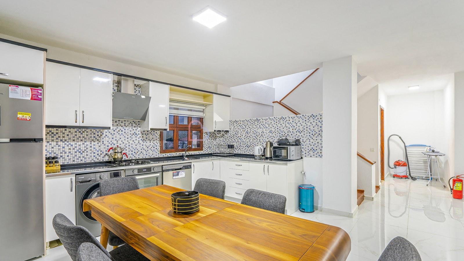 Mutfak içerisinde buzdolabı, çamaşır makinesi, bulaşık makinesi, fırın, ocak, mikrodalga fırın, elektrikli su ısıtıcı (kettle), tost makinesi, yemek takımları, çatal ve bıçak takımları, tencere ve tava takımları, bardaklar bulunmaktadır.