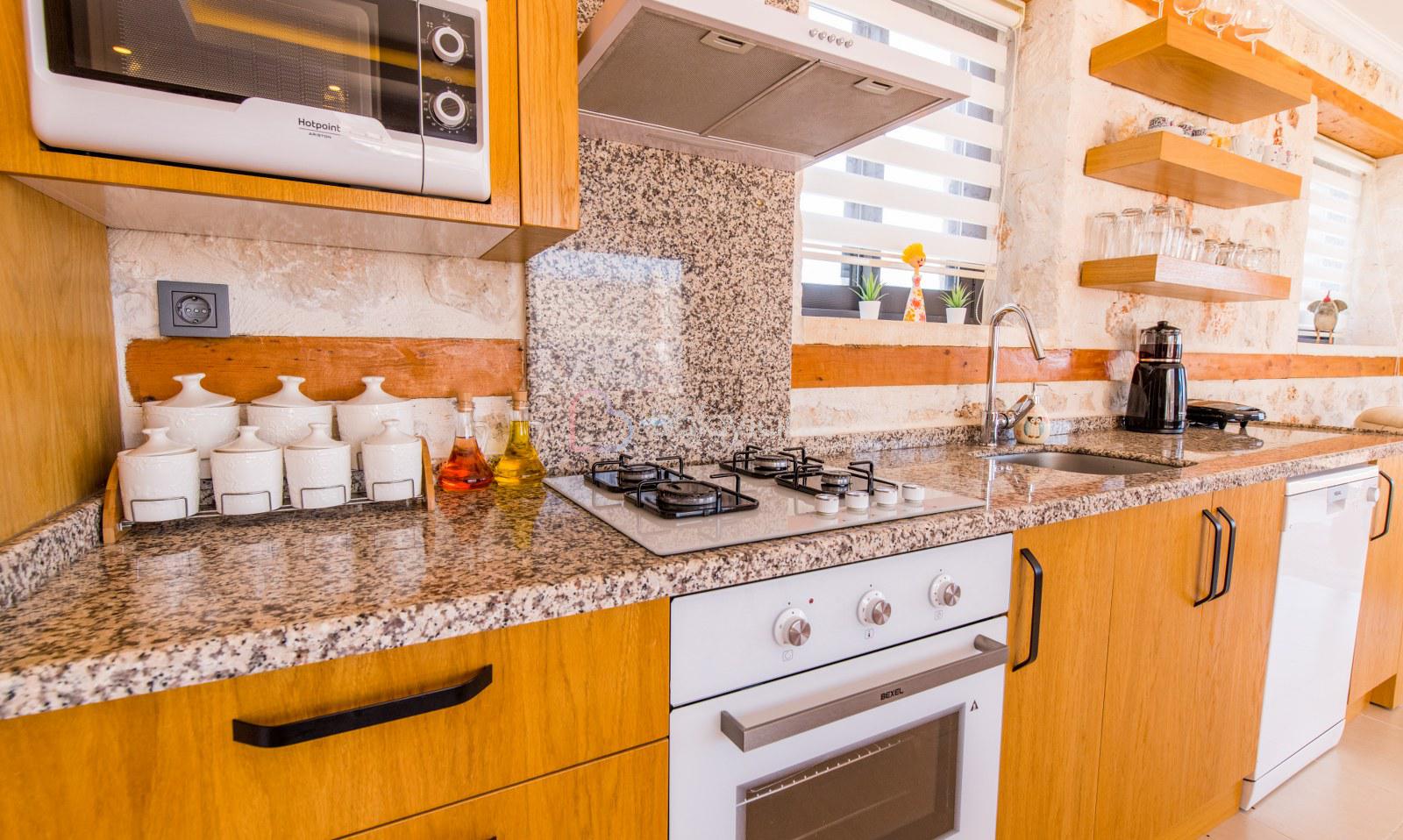Amerikan mutfakta buzdolabı, bulaşık makinesi, fırın, 4'lü ocak, mikrodalga fırın, kettle, tost makinesi, yemek masası, yemek takımları, çatal ve bıçak takımları, tencere ve tava takımları, bardaklar bulunmaktadır.