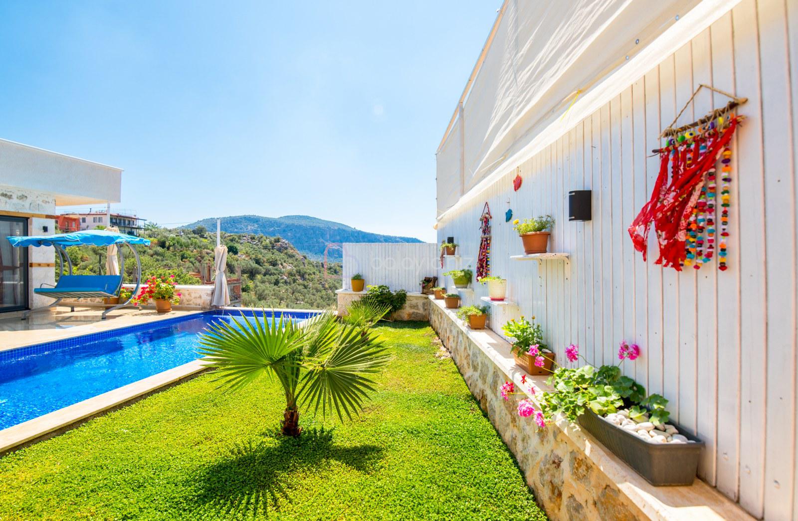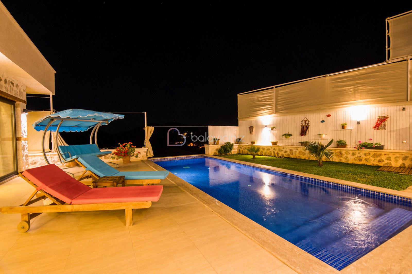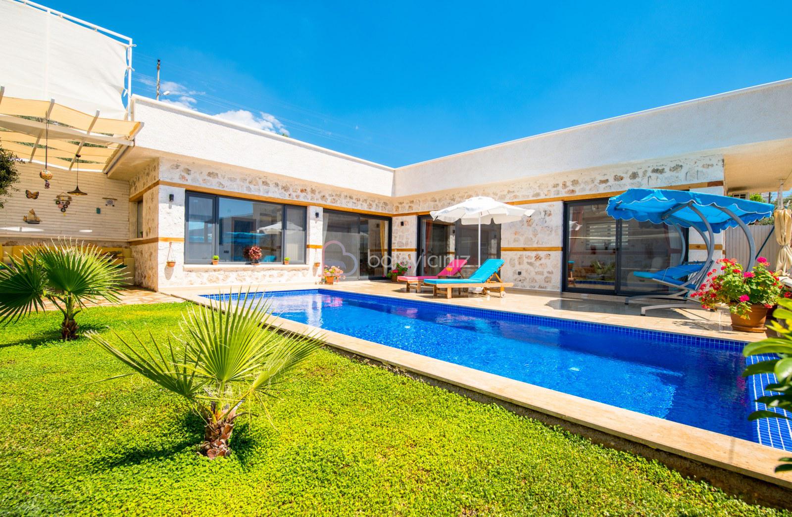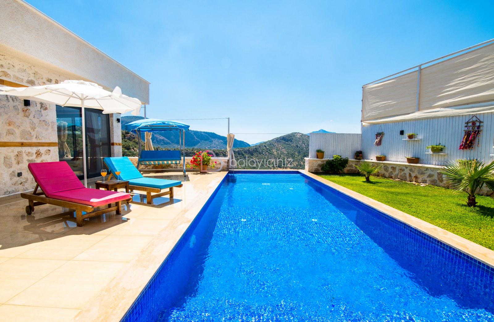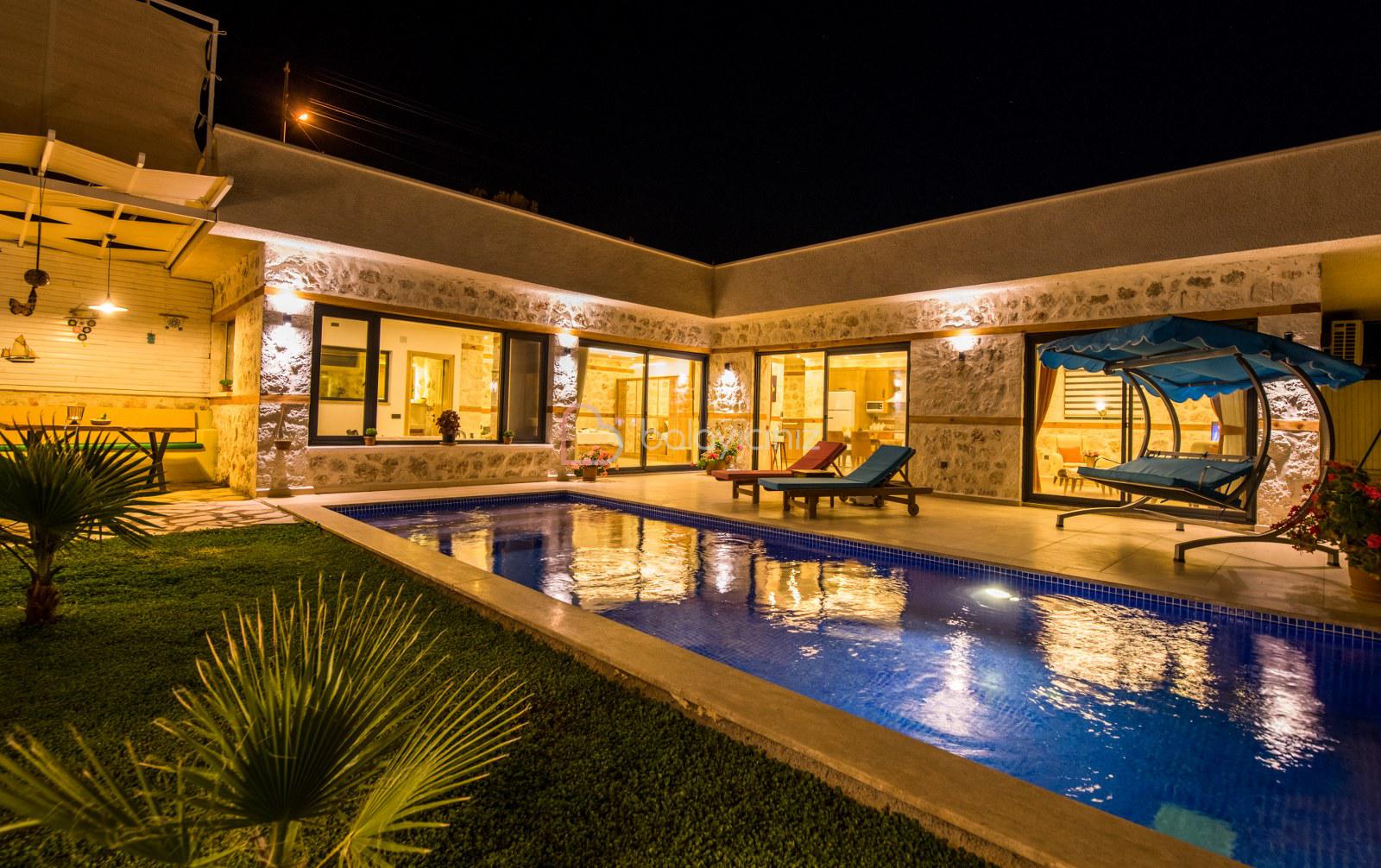 Kalkan'da merkezi bir konumda bulunan Villa Sahin Uno , balayı çiftleri ve çekirdek ailelerimiz için özenle dekore edilmiştir. Villamız 2 kişi kapasiteli ve tek yatak odalıdır. Ayni zamanda jakuzisi bulunan villamızın havuz ve havuz alanının korunaklı olması ile sizlere gözlerden uzak ve doğa ile iç içe bir tatil geçirme olanağını sağlamaktadır. Villamız siz değerli misafirlerimize mesafe olarak merkezi konumu nedeniyle ulaşımda kolaylık sağlamaktadır.