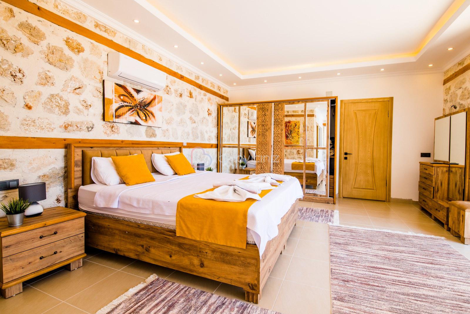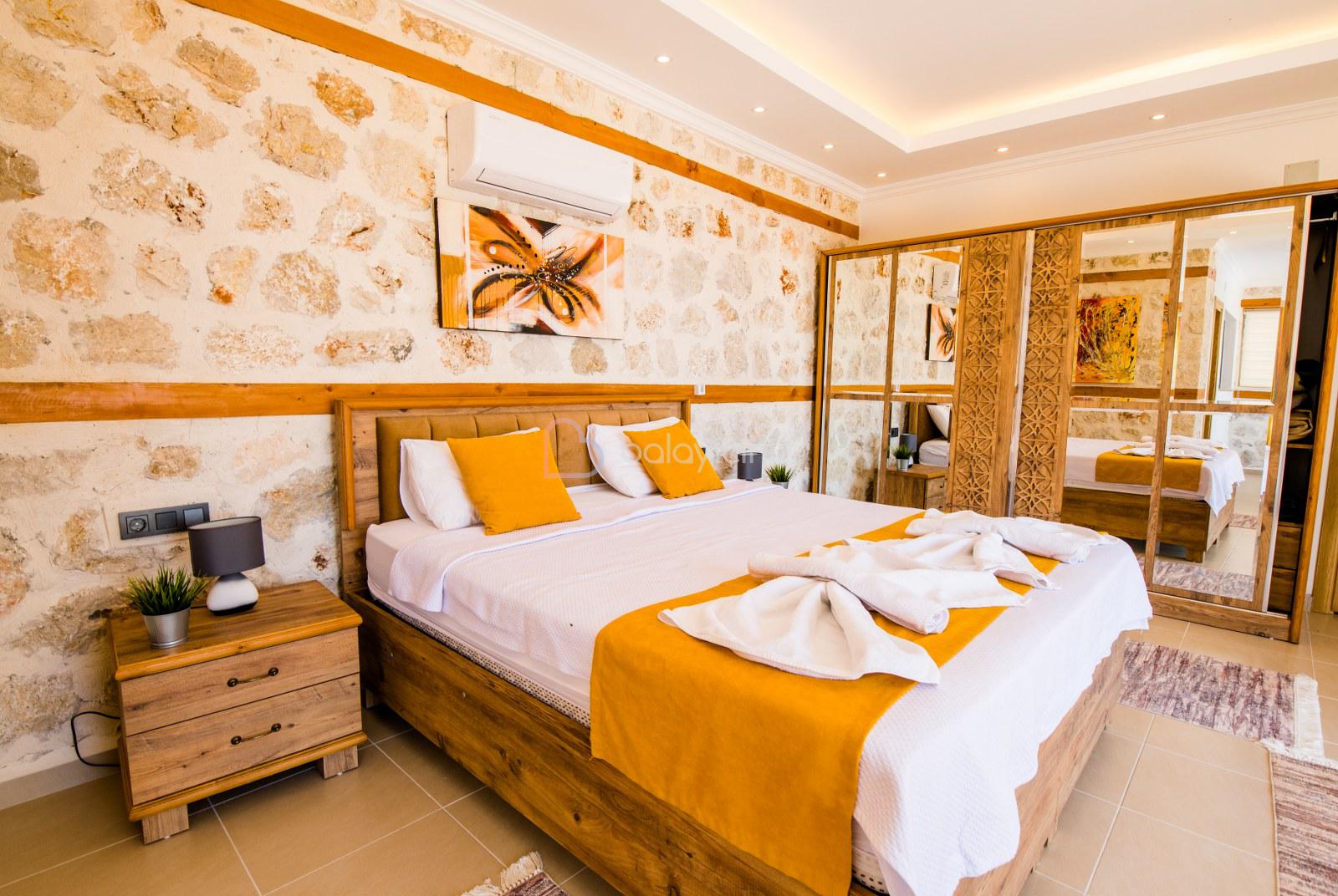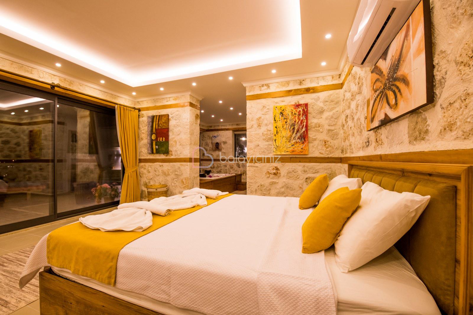 1.Yatak Odası(Aile): 1 adet çift kişilik yatak, klima, televizyon, komodin, makyaj masası, elbise dolabı, jakuzi, banyo ve tuvalet bulunmaktadır.