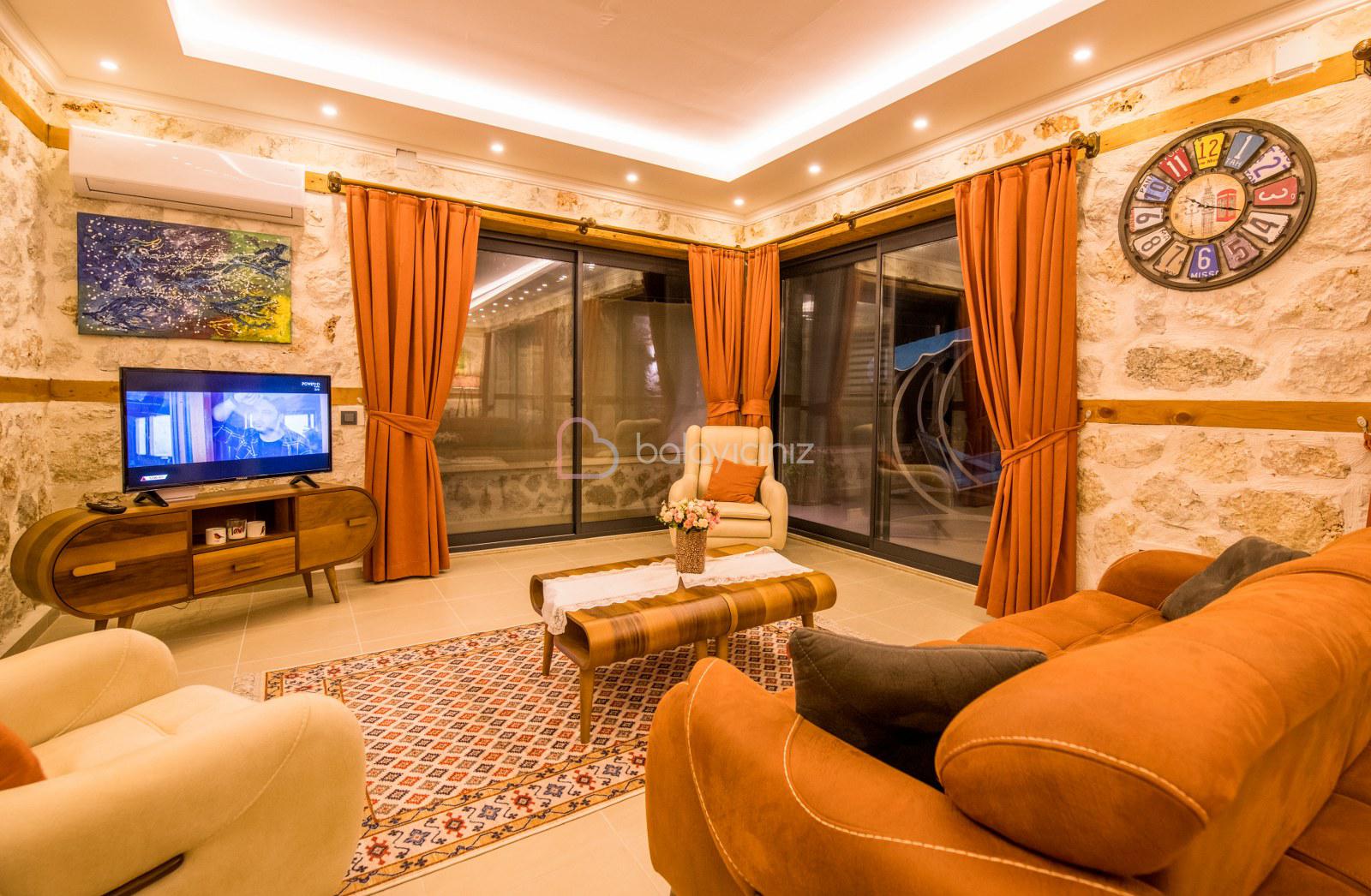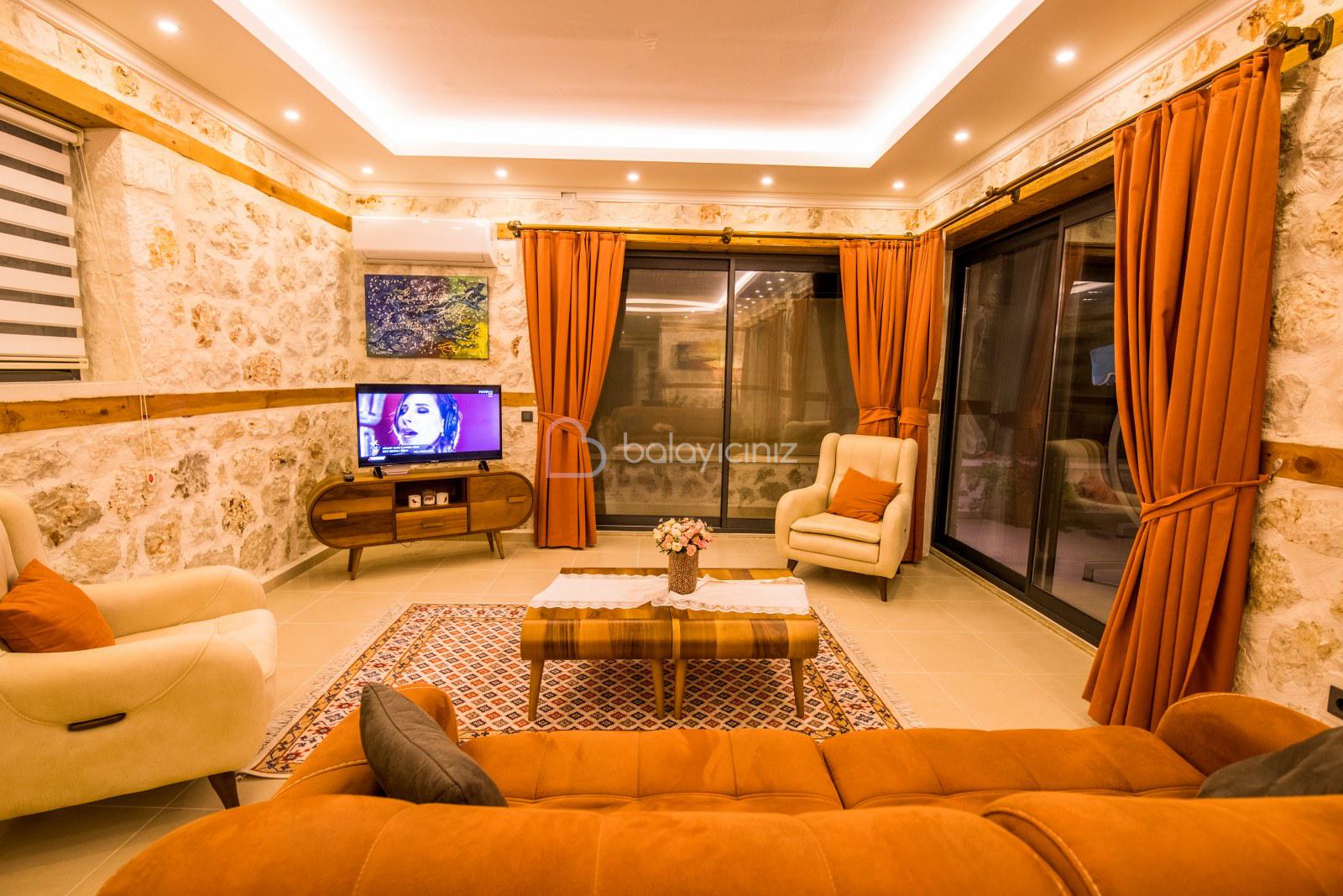 Oturma grubu, klima, televizyon, sehpa, uydu alıcı, internet, bulunmaktadır. Havuz terasına çıkış yapılabilmektedir.