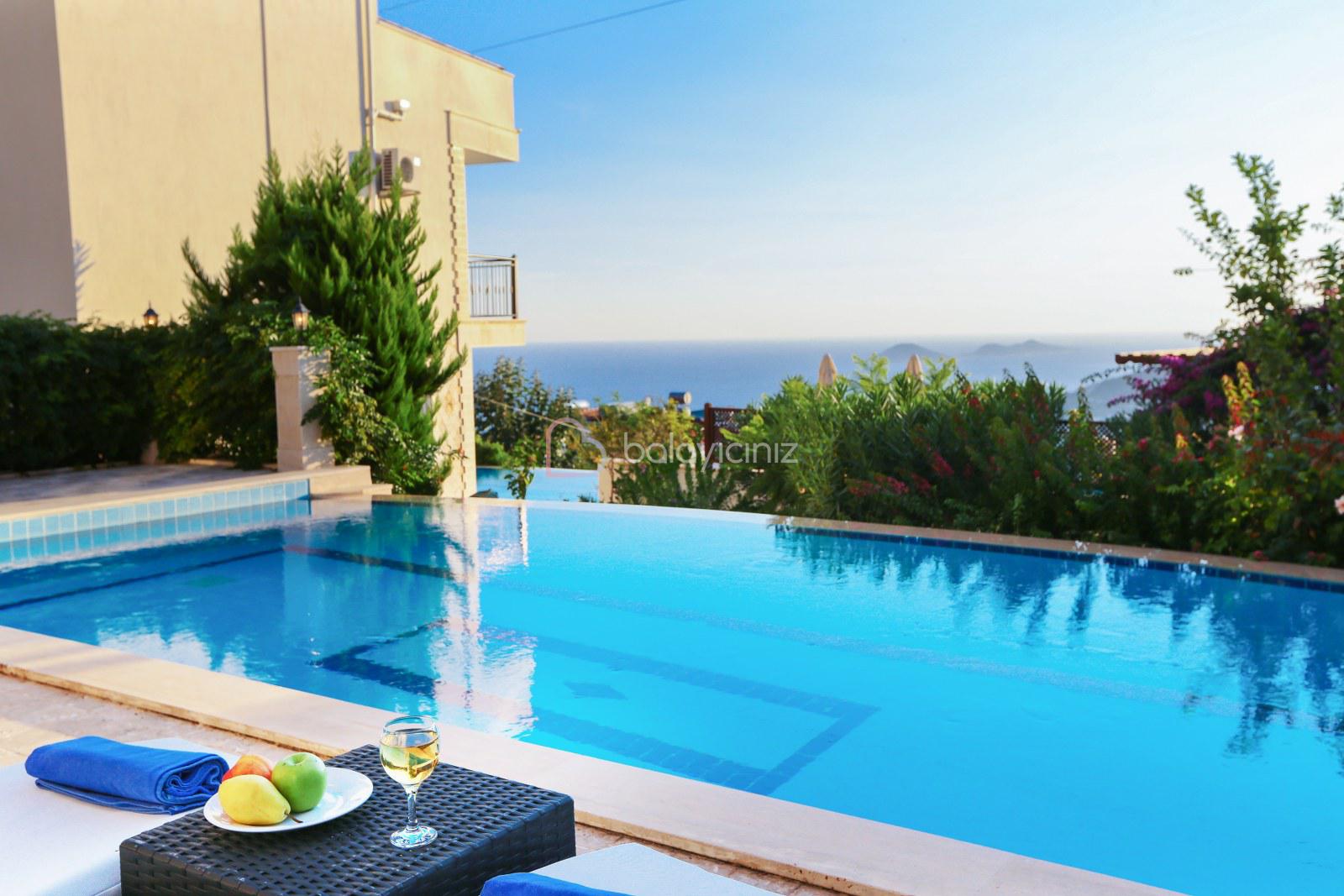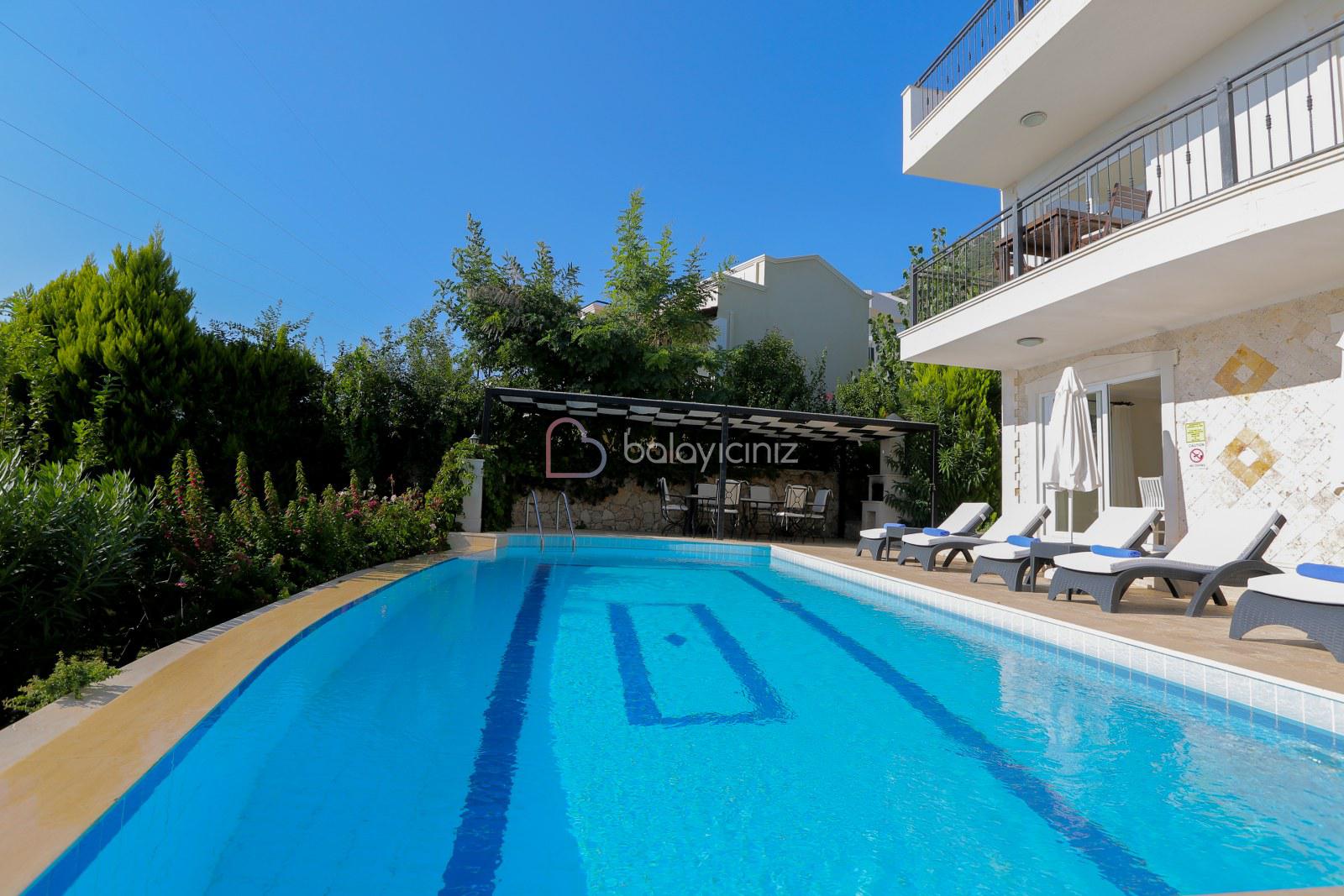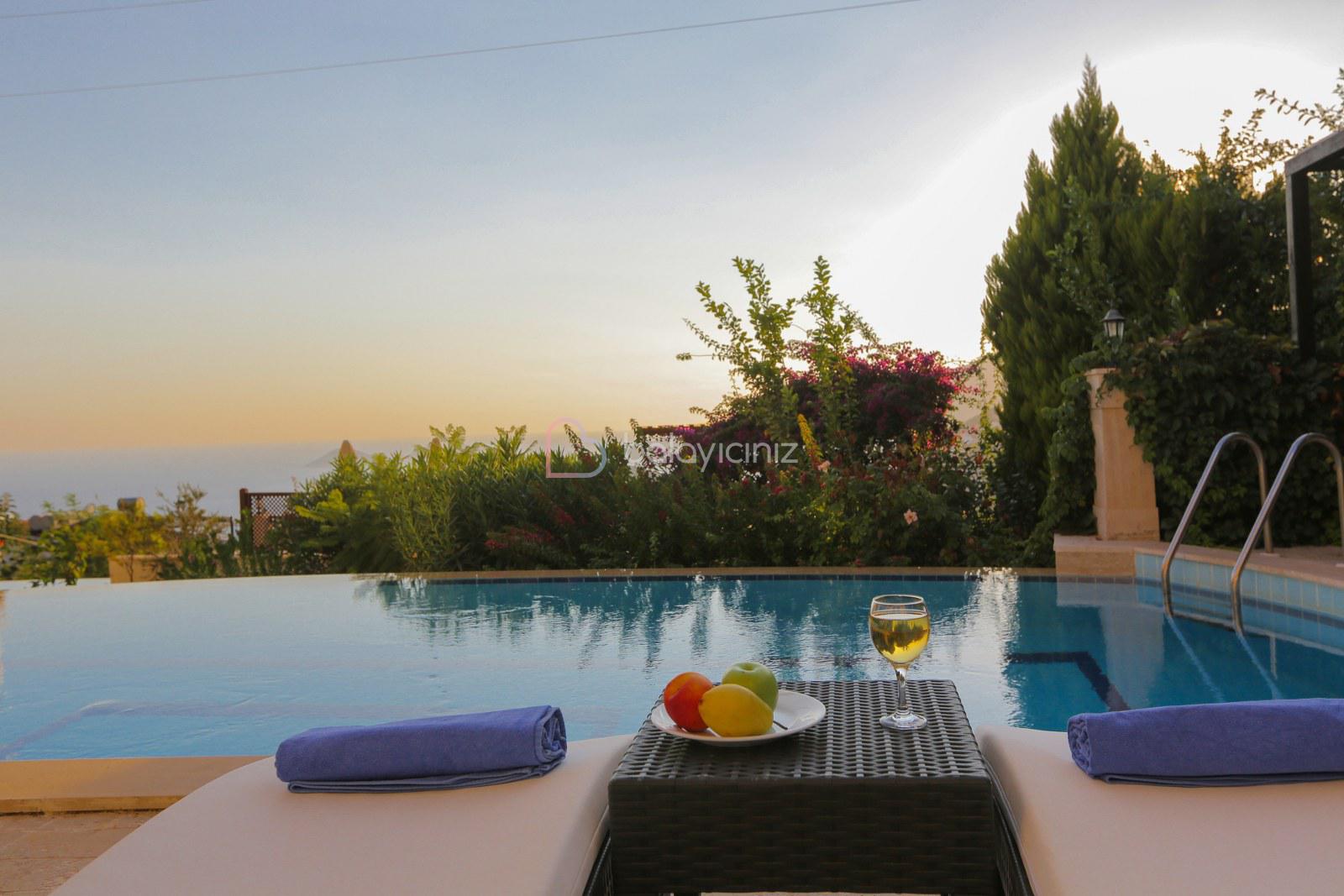 Havuz terasında özel yüzme havuzu, şezlonglar, güneş şemsiyeleri, bahçe oturma grubu barbekü, bahçe yemek masası bulunmaktadır.
