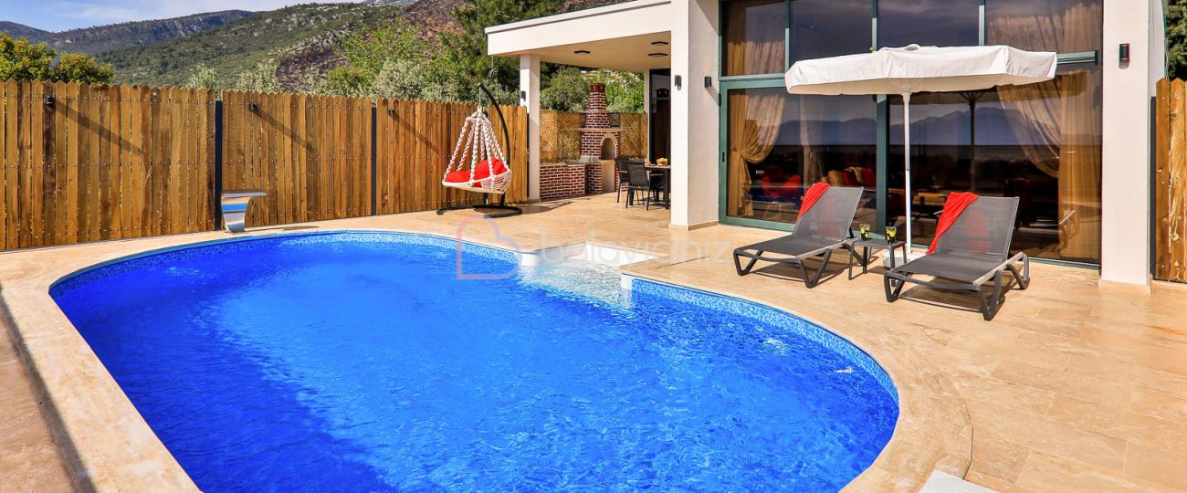 Havuz terasında özel yüzme havuzu, şezlonglar, güneş şemsiyesi, masa ve sandalyeler, salıncak, mangal bulunmaktadır.