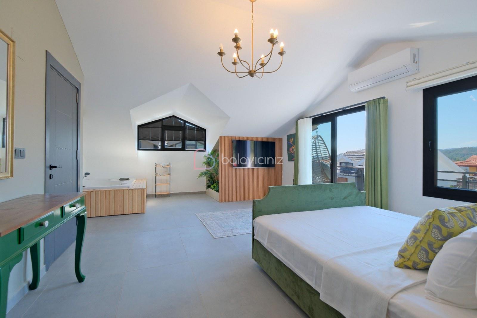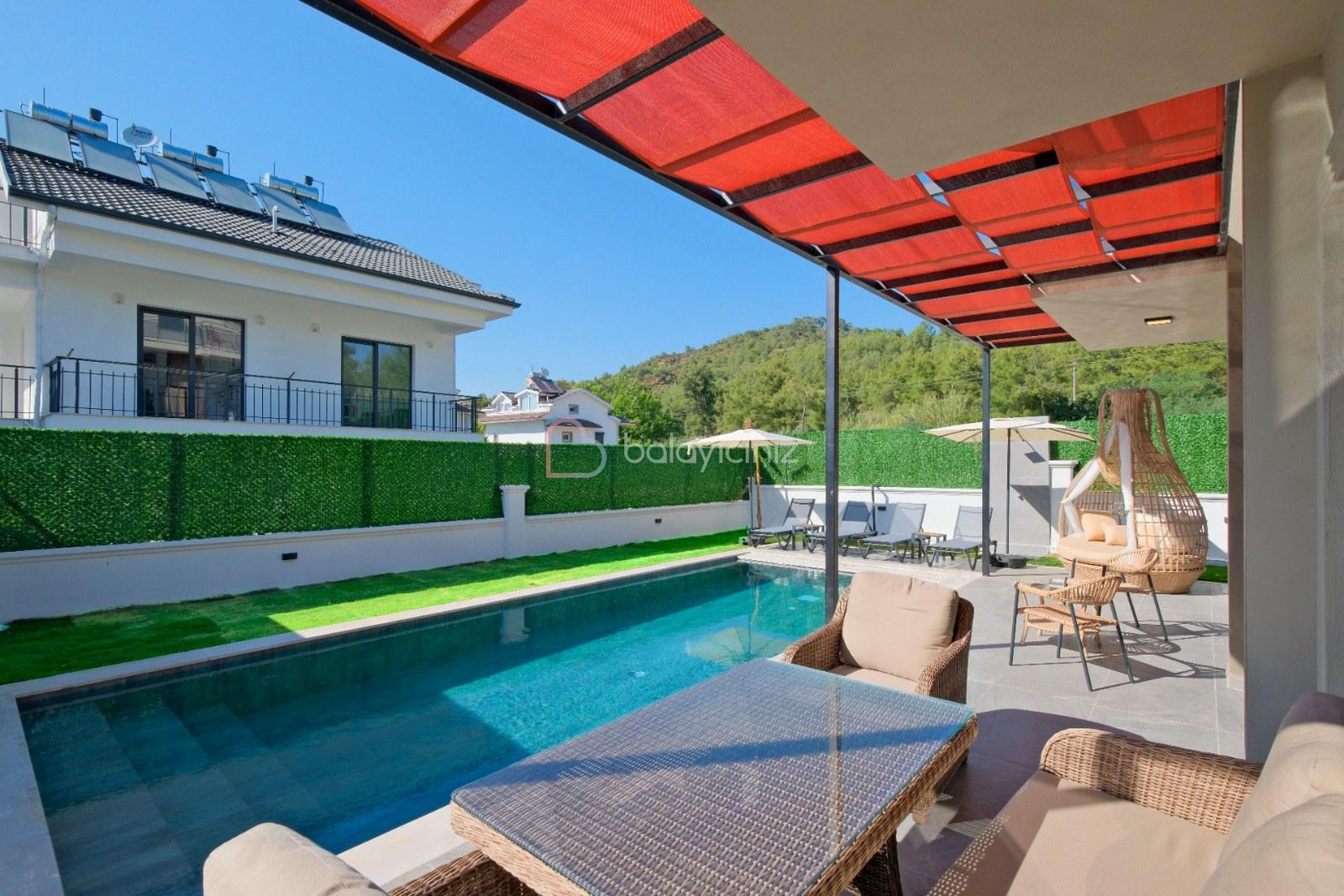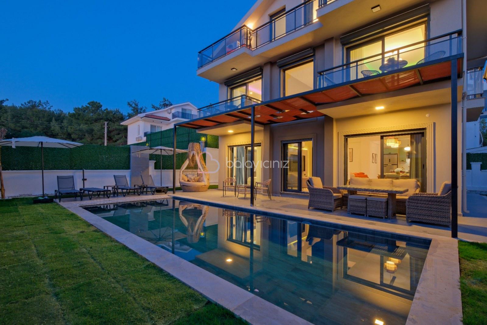 Yemek HizmetiVilla Solstice 2, Fethiye Çiftlikköy mevkiinde konumlanmış, doğa içerisinde 4 yatak odalı 8 kişi kapasiteli geniş aileler, arkadaş grupları için ideal olan bir villamızdır. Lüks ve modern dizaynının yanında yeşil bahçe alanıyla villamız keyifli bir tatil imkânı sunmaktadır. Villa Solstice 2 jakuzili ve saunalı bir seçenektir. Geniş bir havuz terası ve bahçe alanına sahip olup kalabalık, çocuklu aileler, geniş arkadaş grupları içinde ideal bir seçenek olacaktır. Şehir merkezine ve denize yakındır. İhtiyacınız olan her şeyin düşünüldüğü villamızda size sadece sevdiklerinizle unutulmaz anlar yaşayıp tatilin tadını çıkarmak kalıyor.