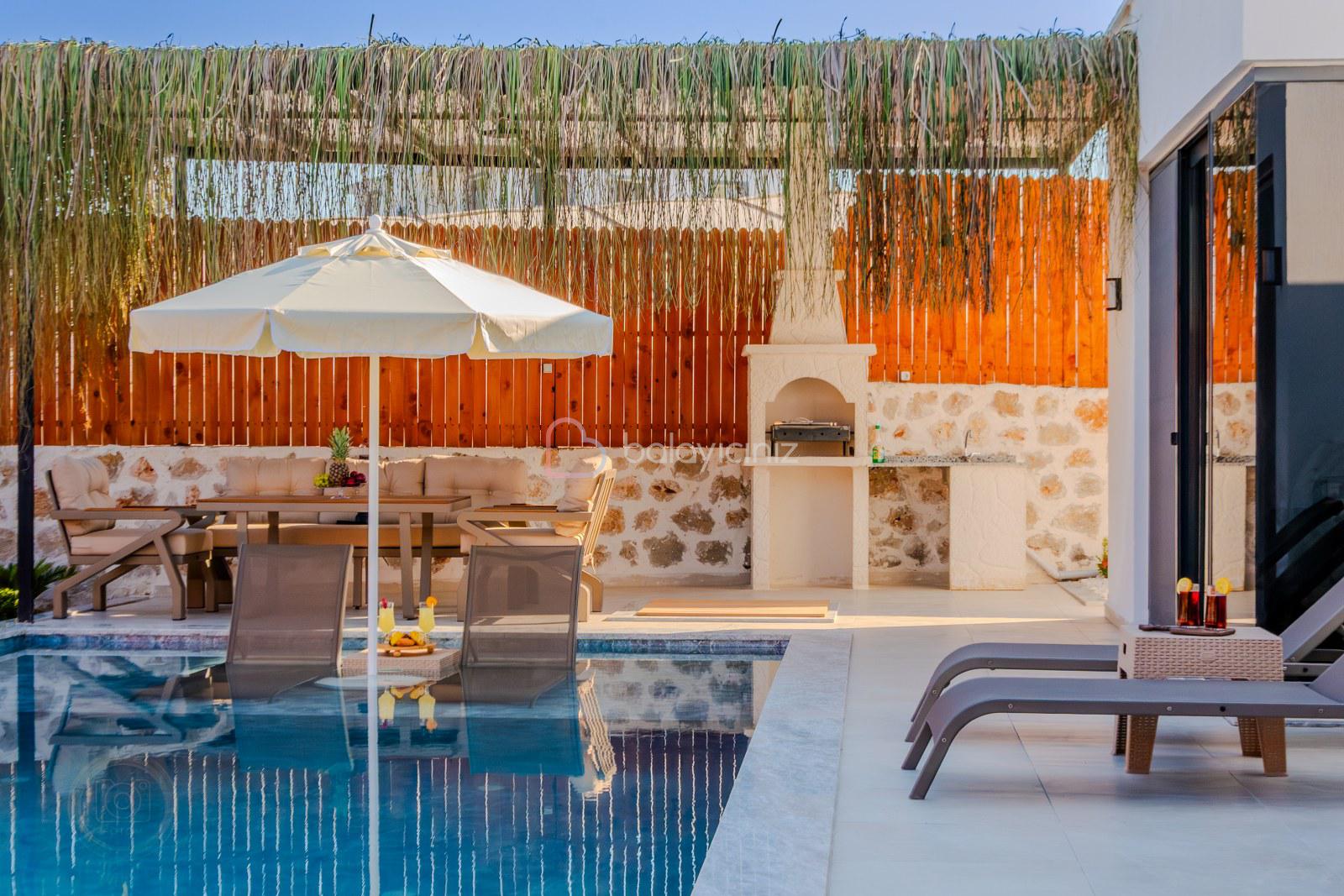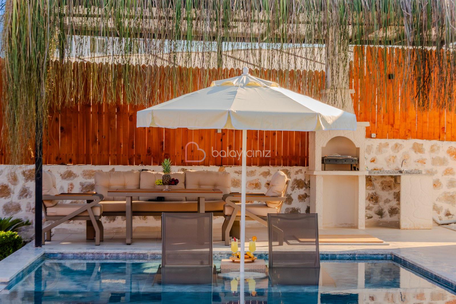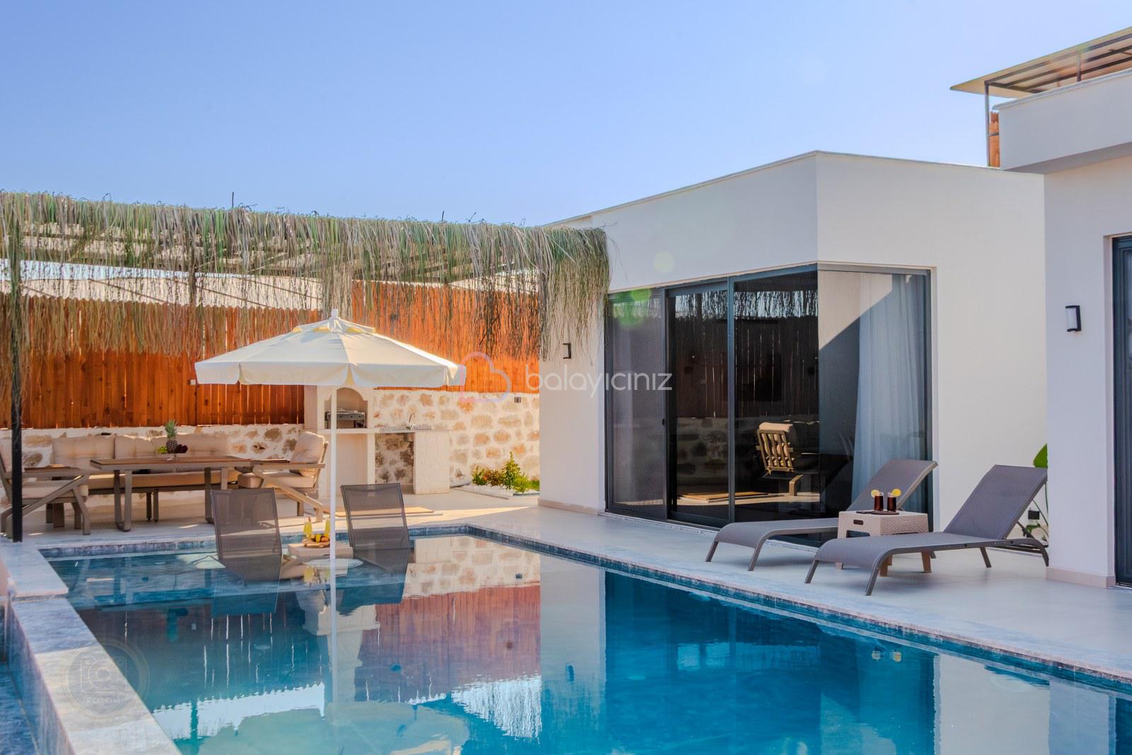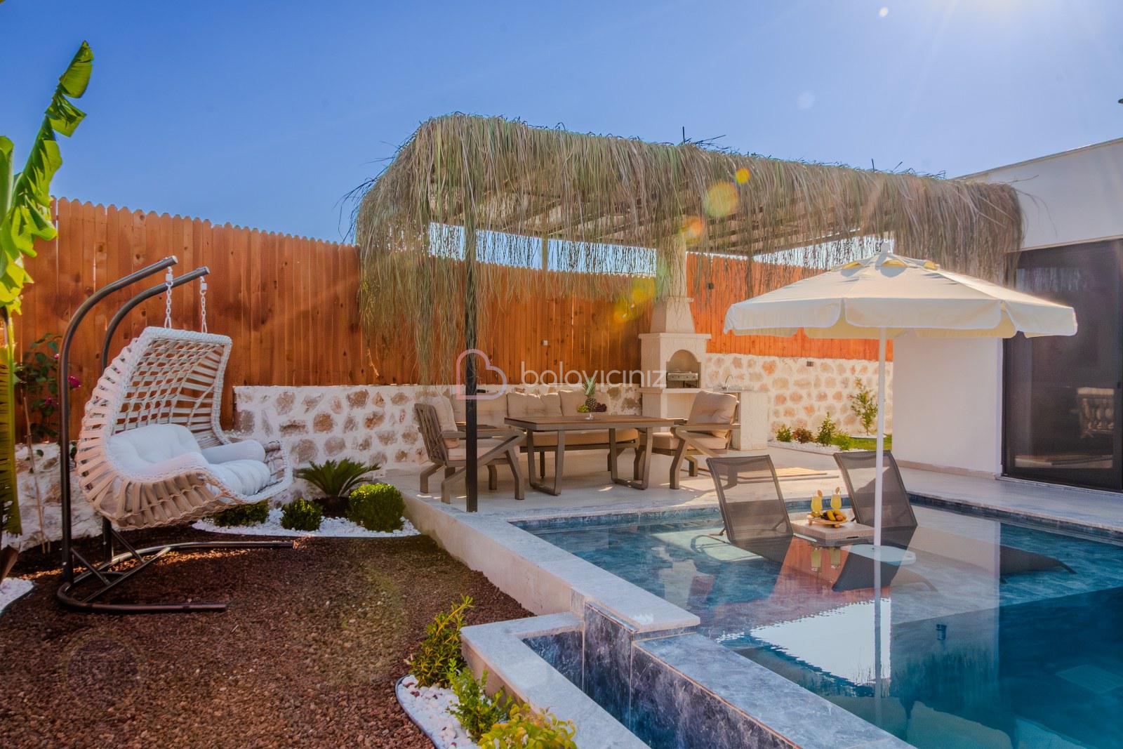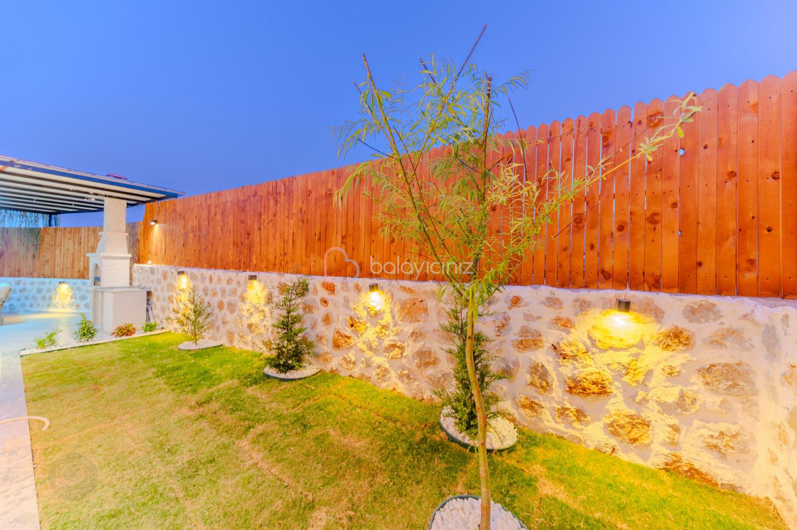 Villa Starlin bahçesinde özel yüzme havuzu, şezlong, semsiye,oturma grubu, mangal ve salıncak bulunmaktadır.