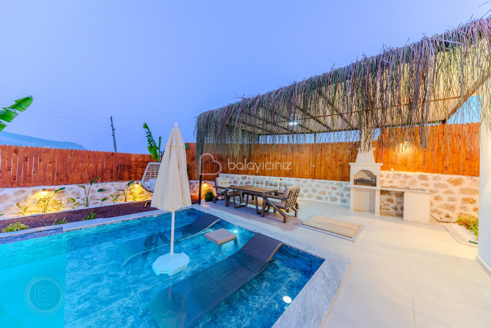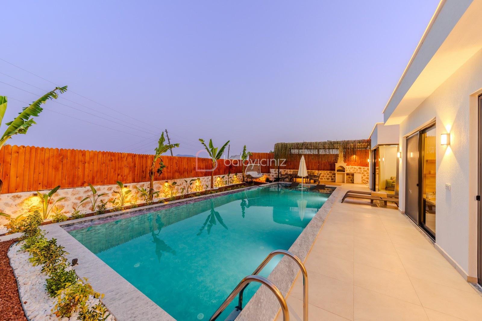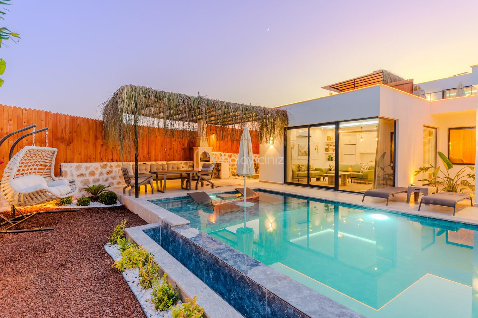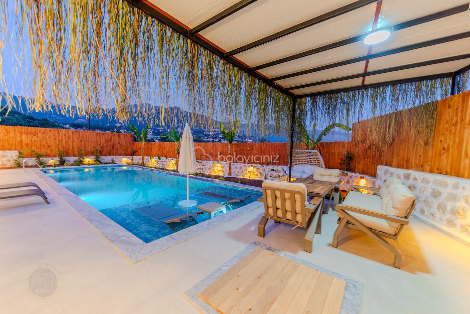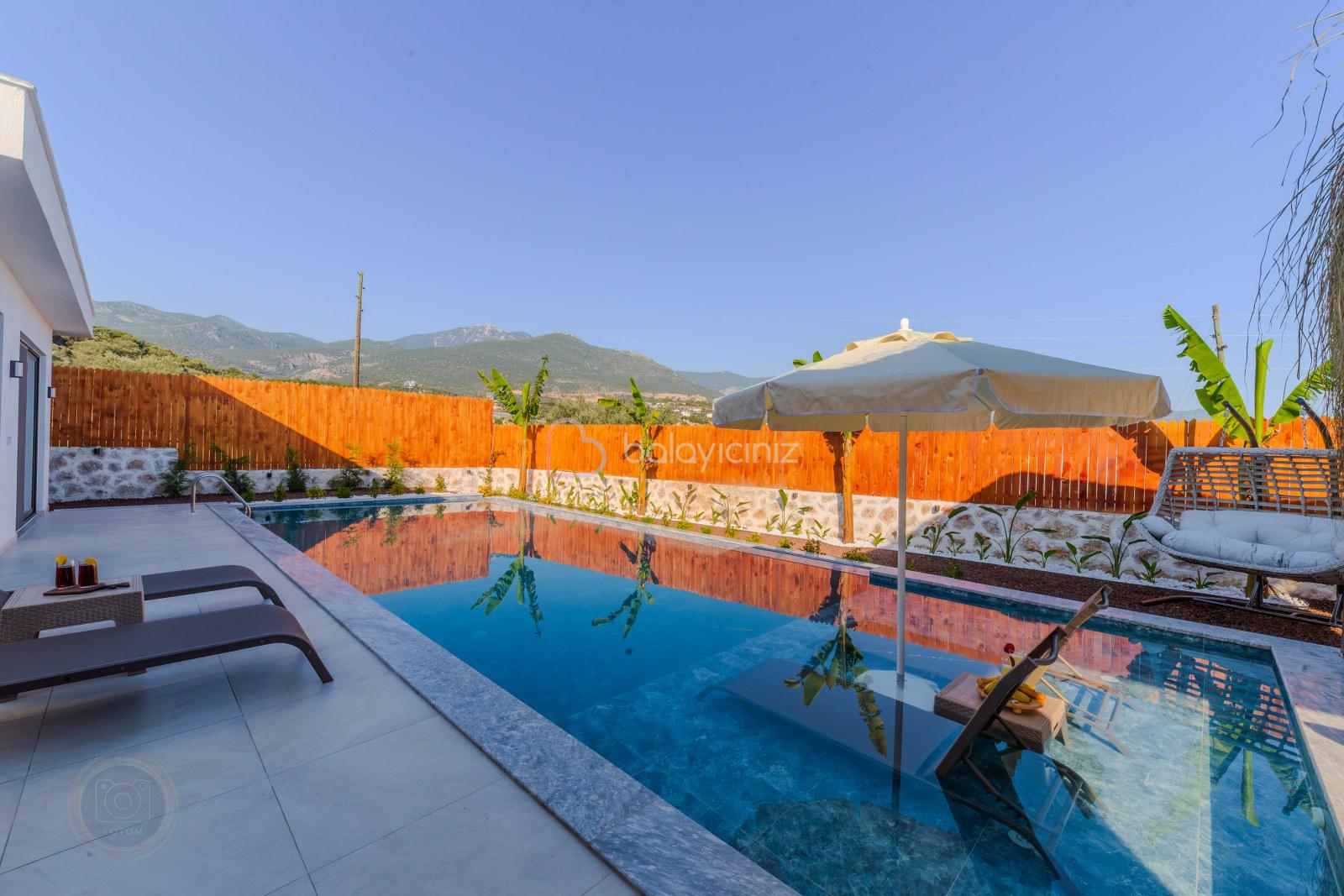 Villa Starlin bahçesinde özel yüzme havuzu, şezlong, semsiye,oturma grubu, mangal ve salıncak bulunmaktadır.