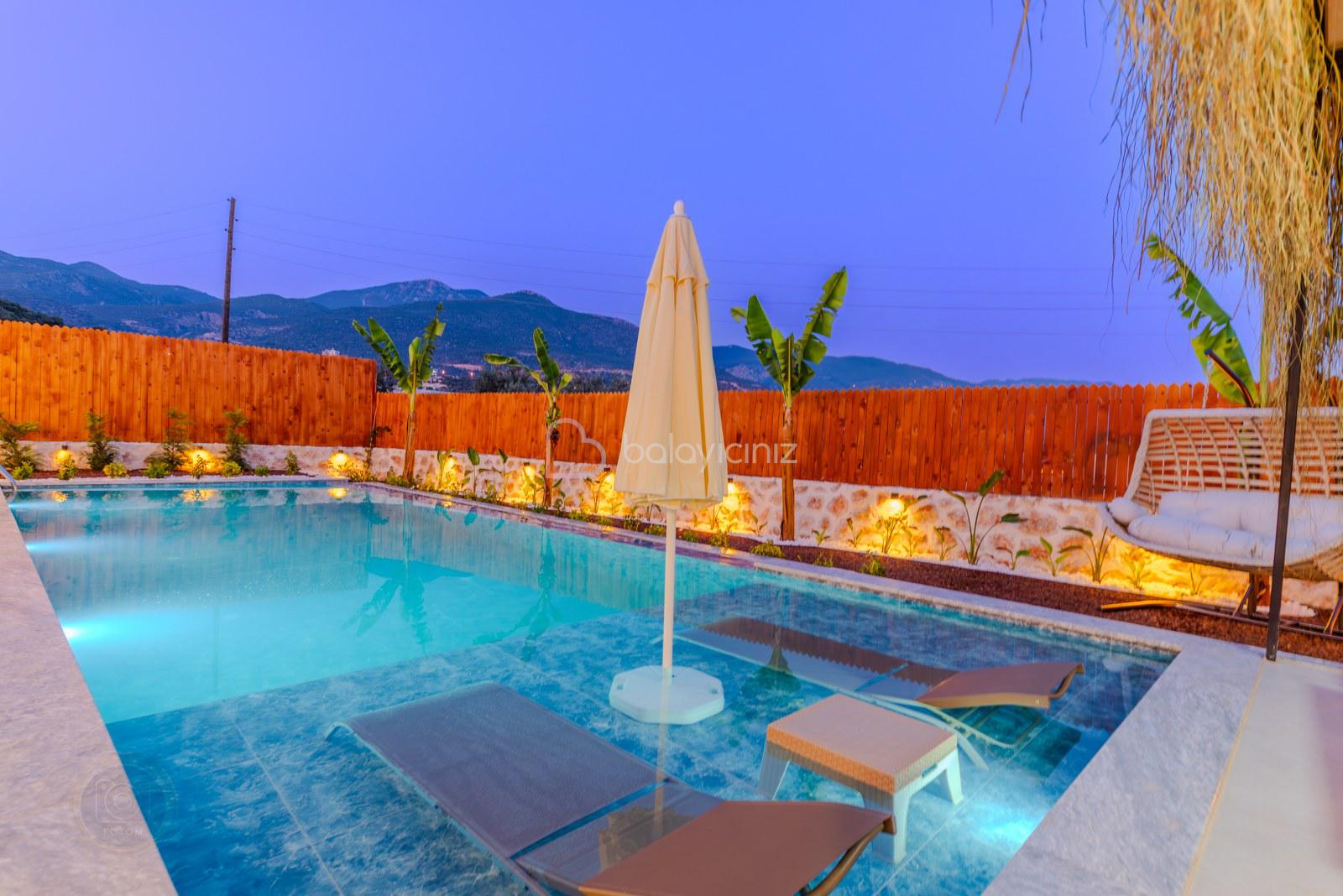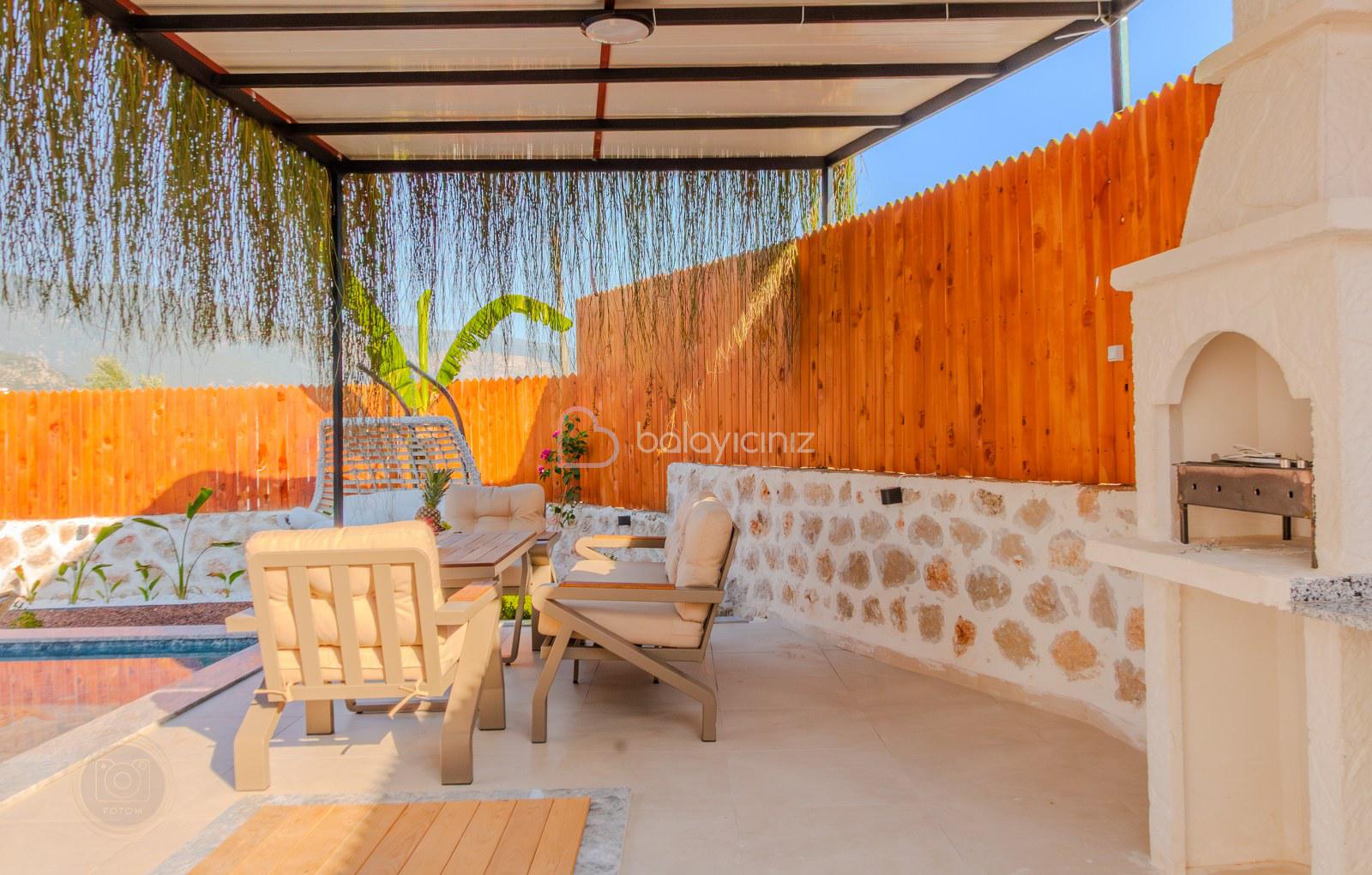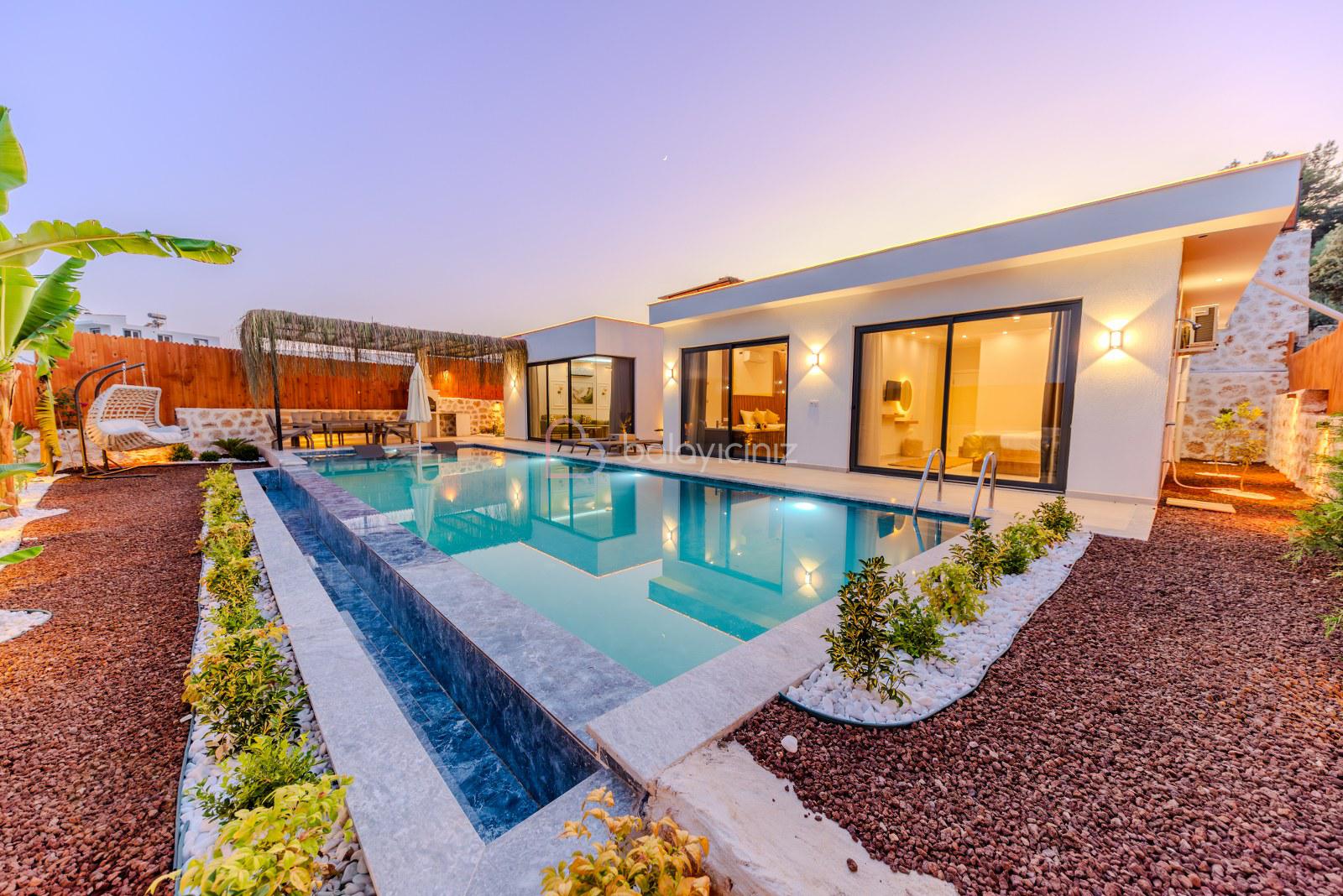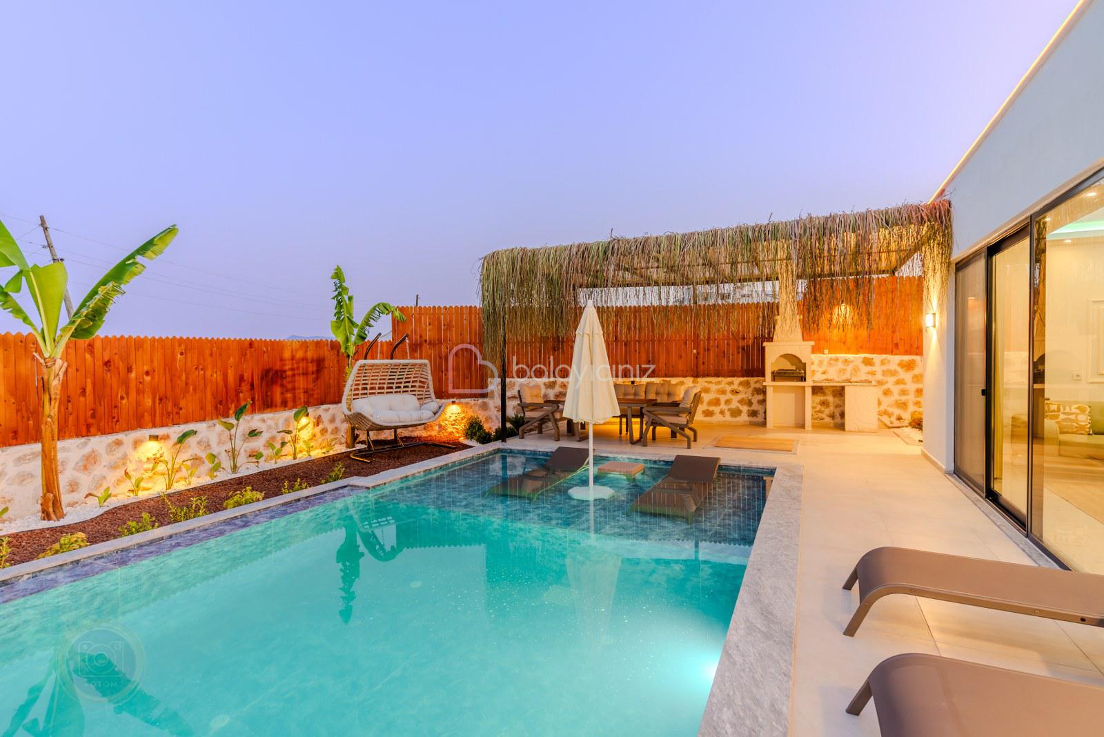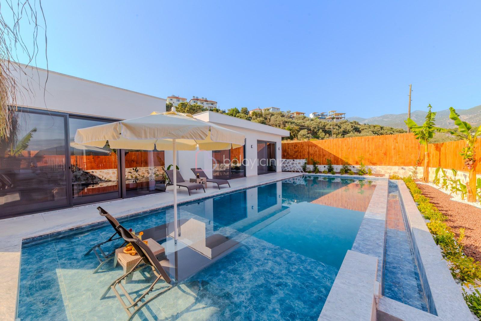 Villa Starlin bahçesinde özel yüzme havuzu, şezlong, semsiye,oturma grubu, mangal ve salıncak bulunmaktadır.