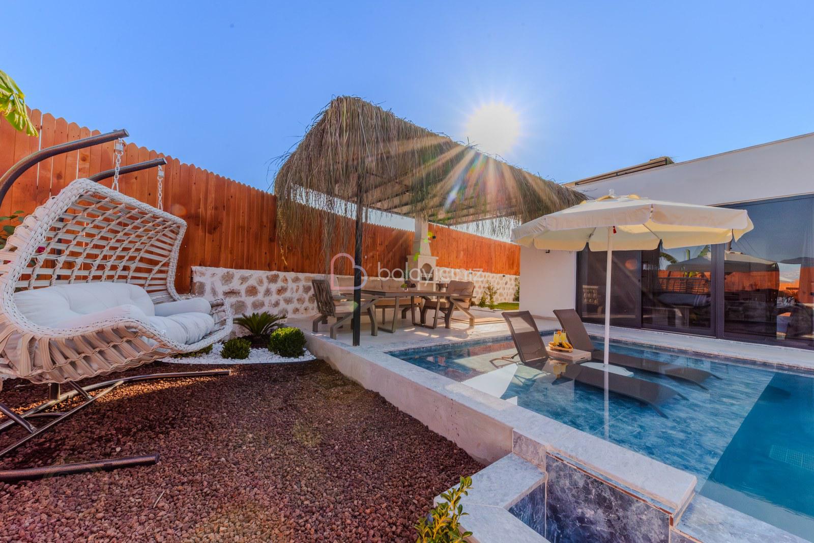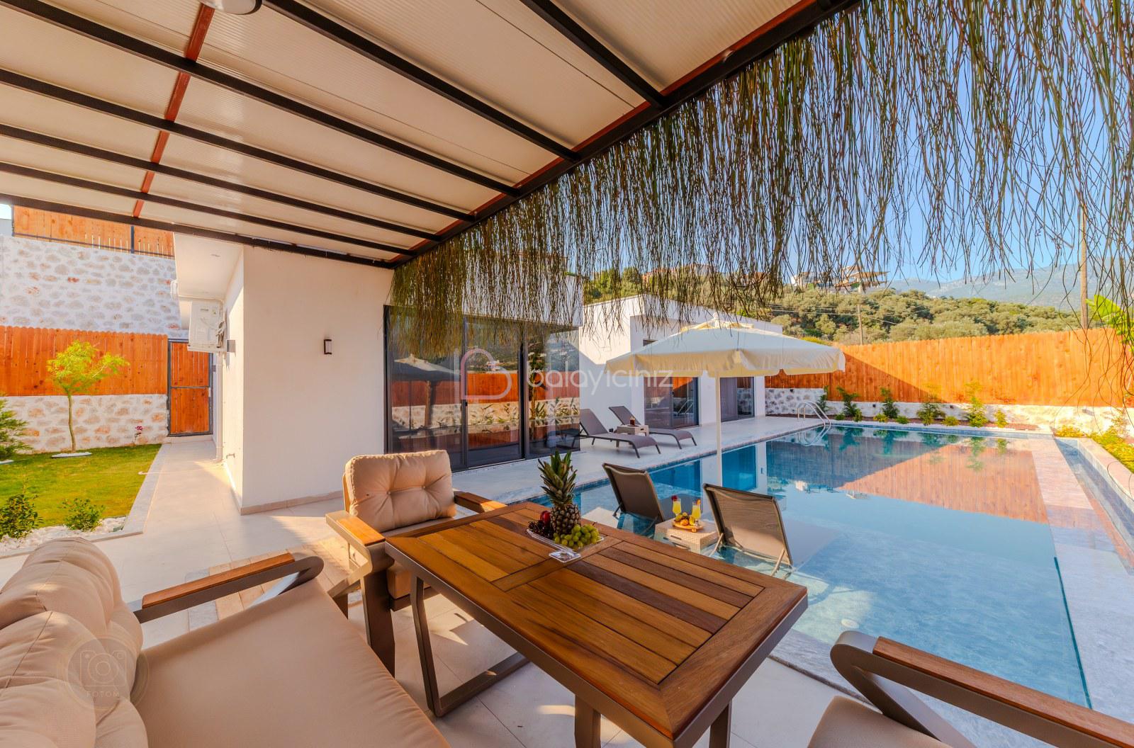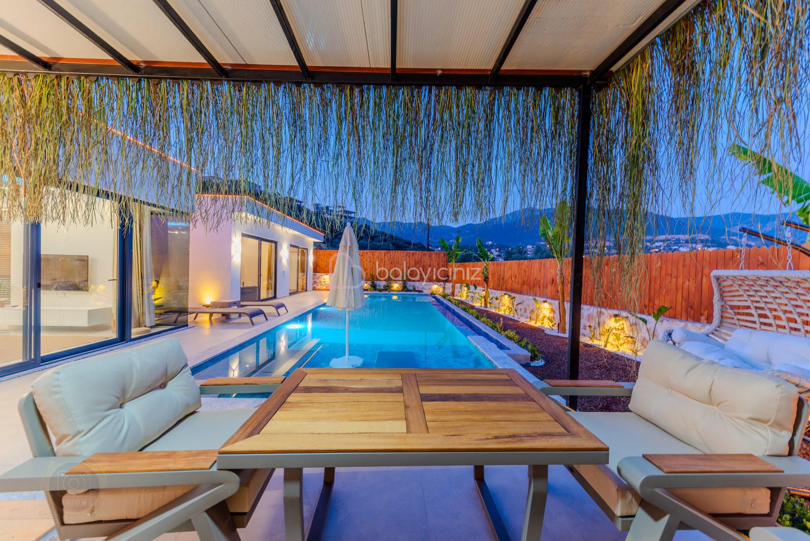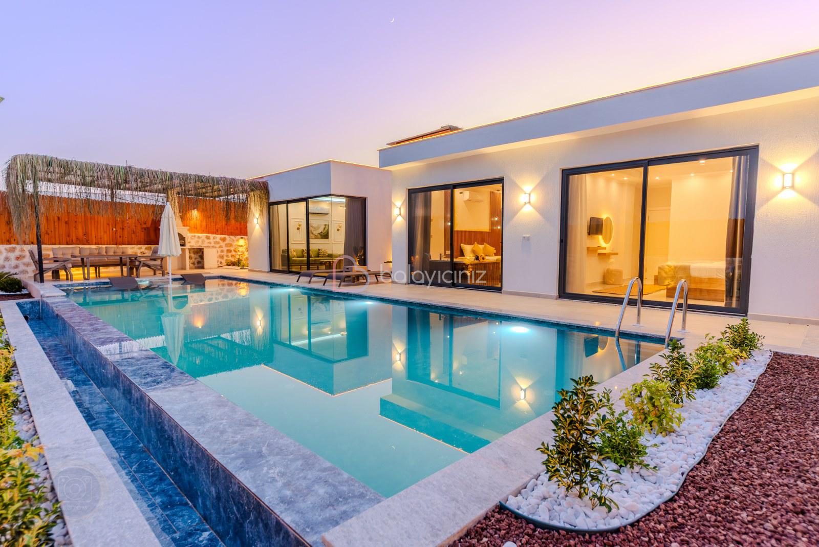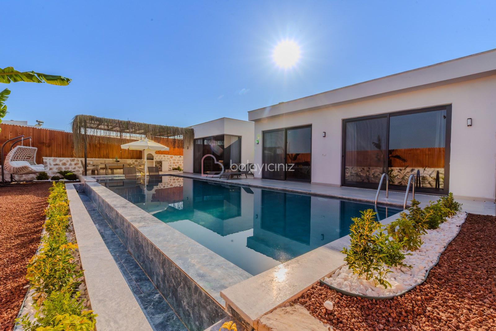 Villa Starlin bahçesinde özel yüzme havuzu, şezlong, semsiye,oturma grubu, mangal ve salıncak bulunmaktadır.