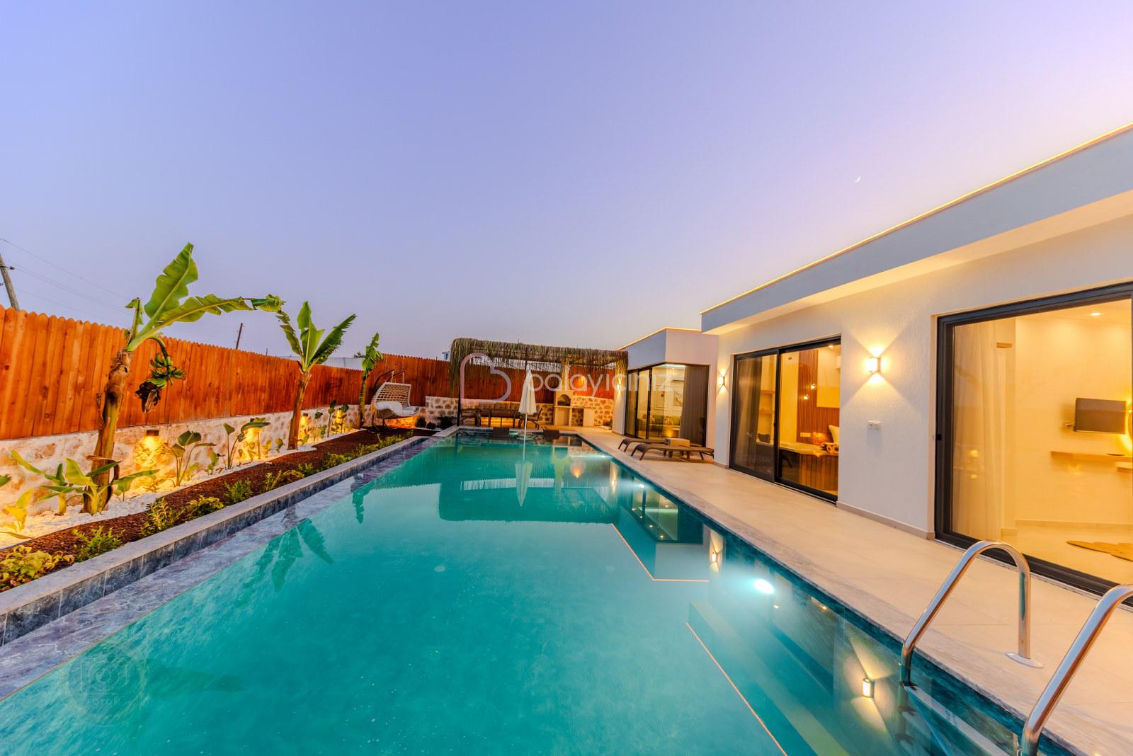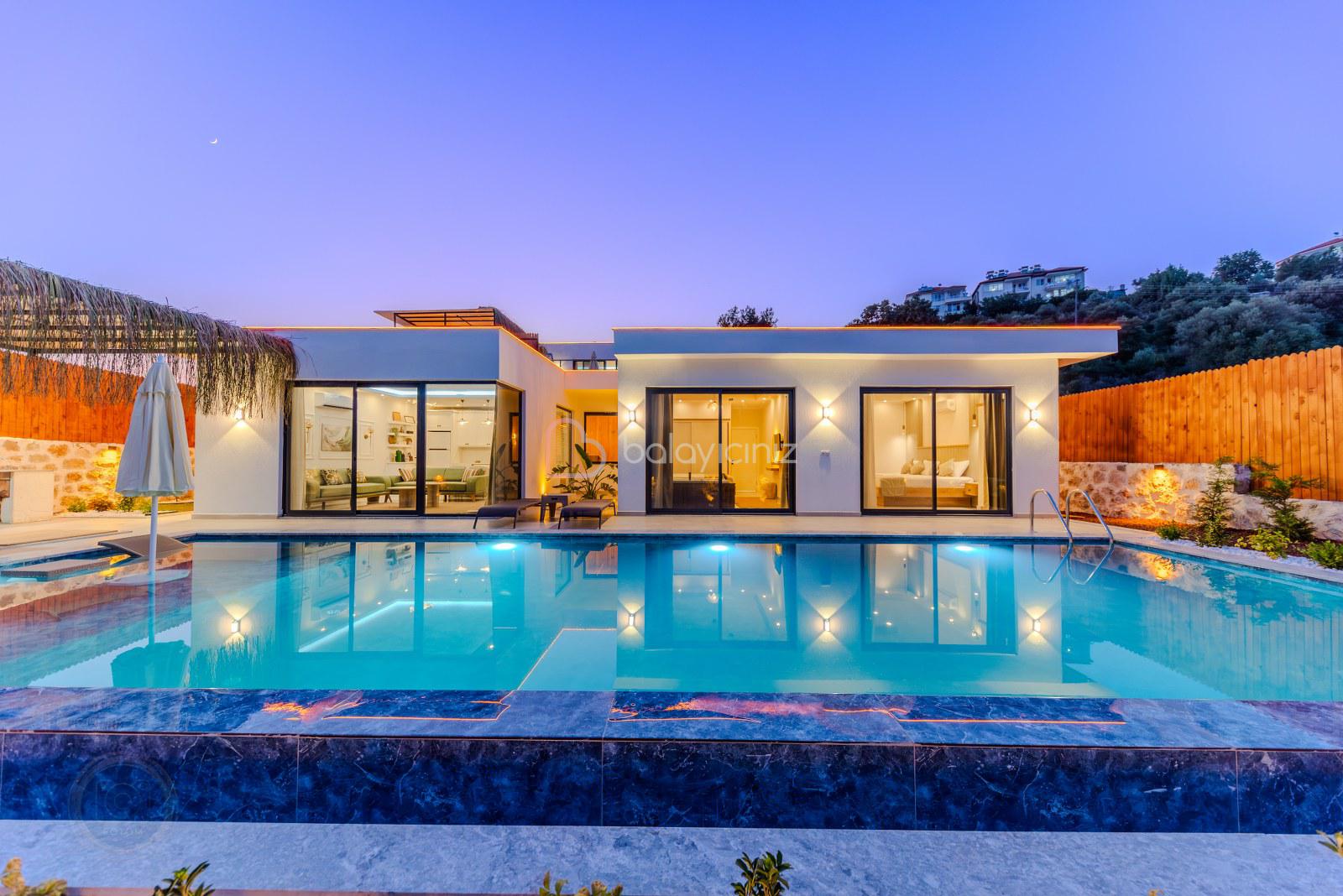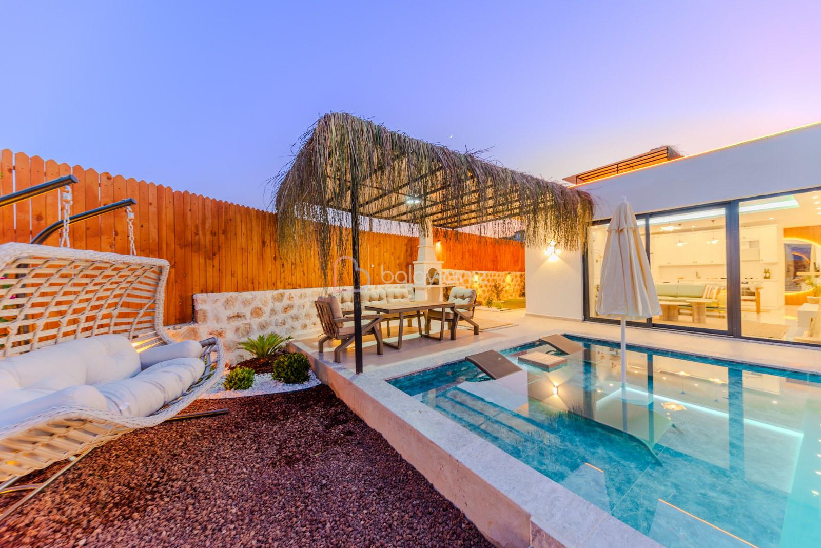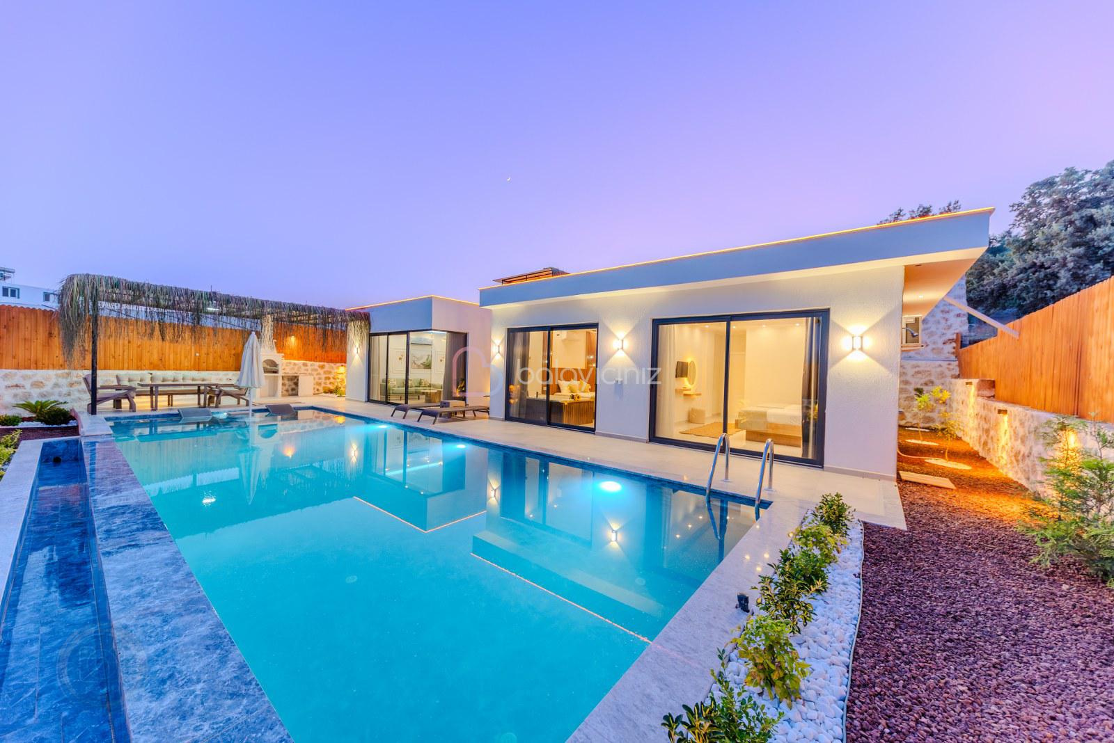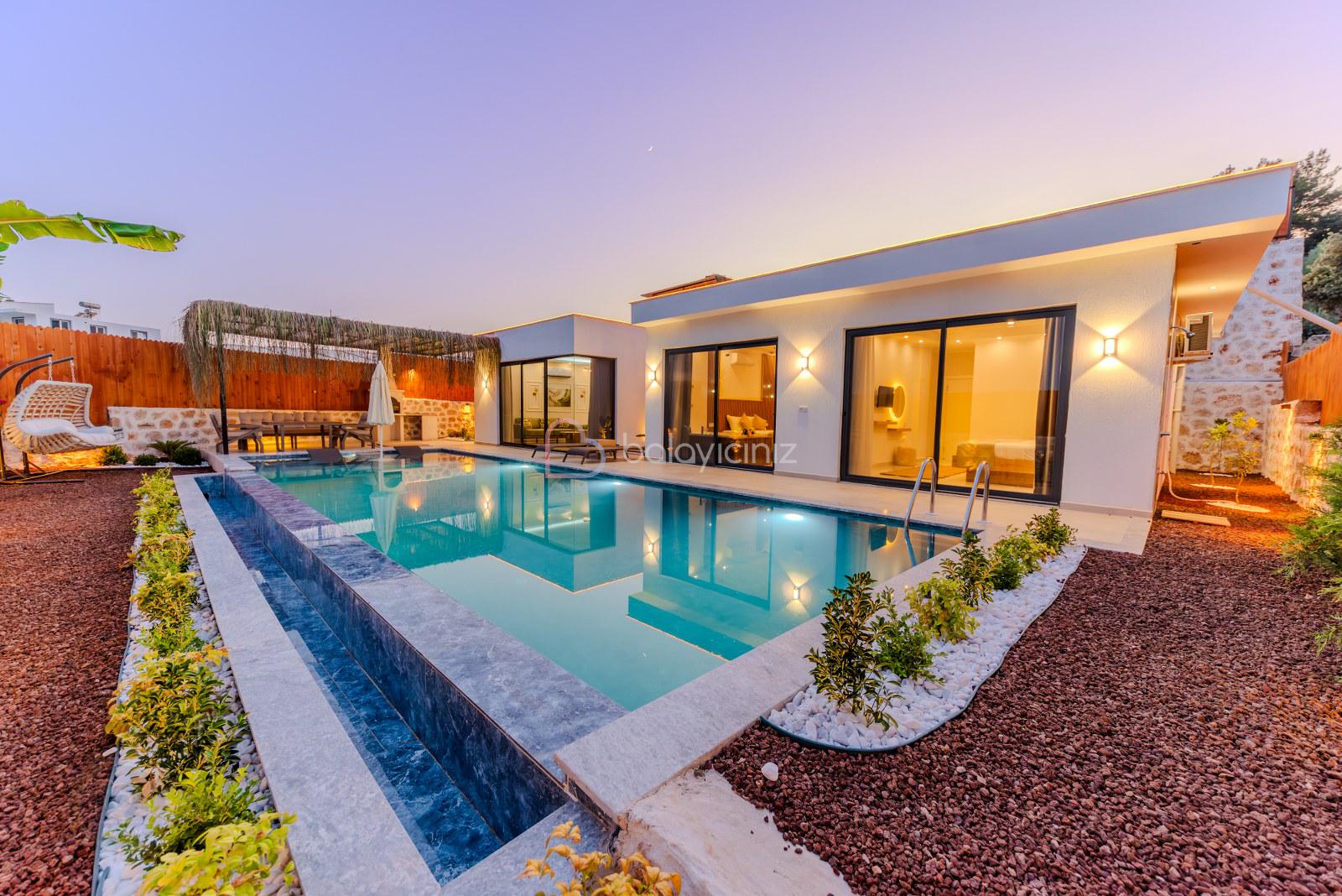 Villa Starlin bahçesinde özel yüzme havuzu, şezlong, semsiye,oturma grubu, mangal ve salıncak bulunmaktadır.