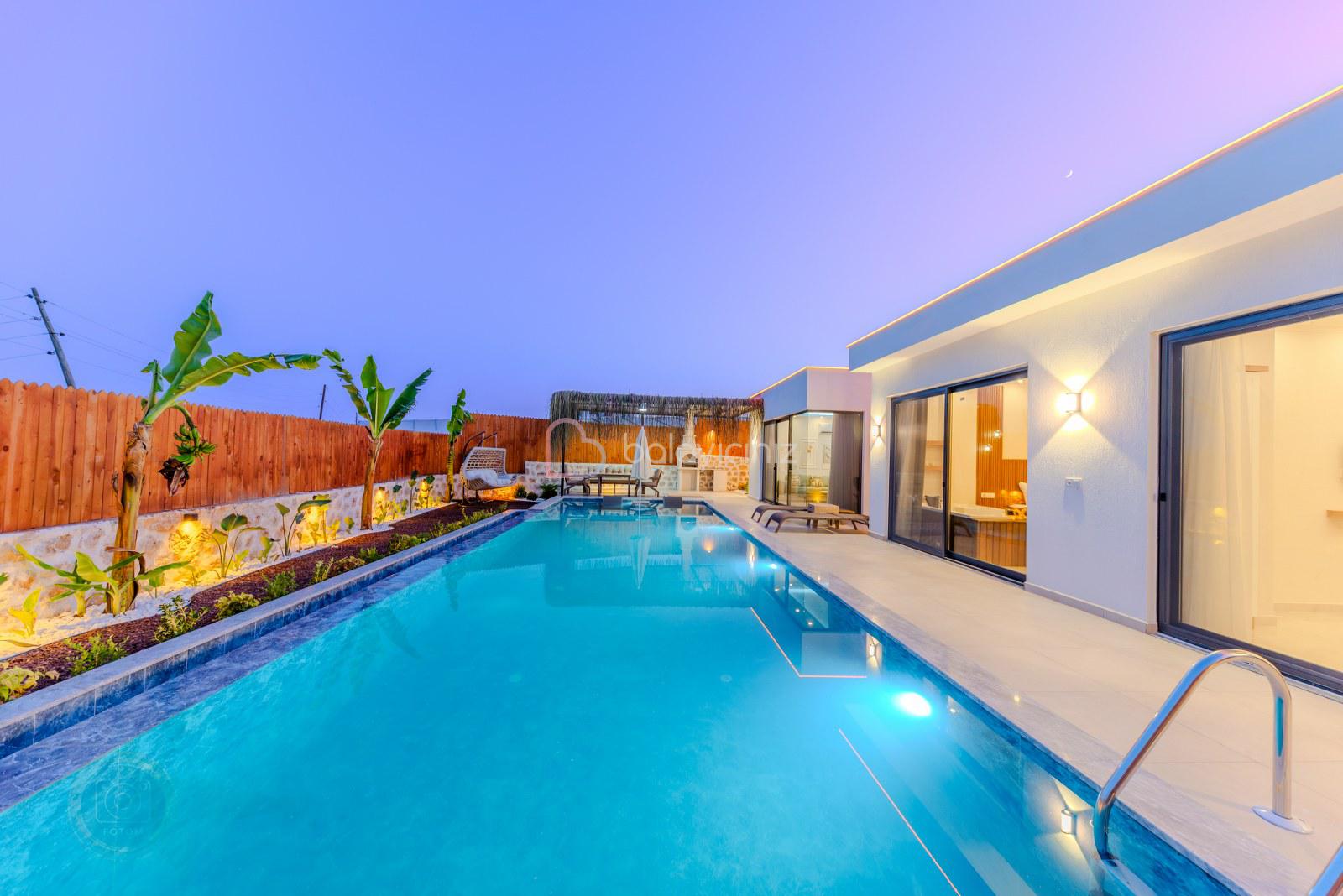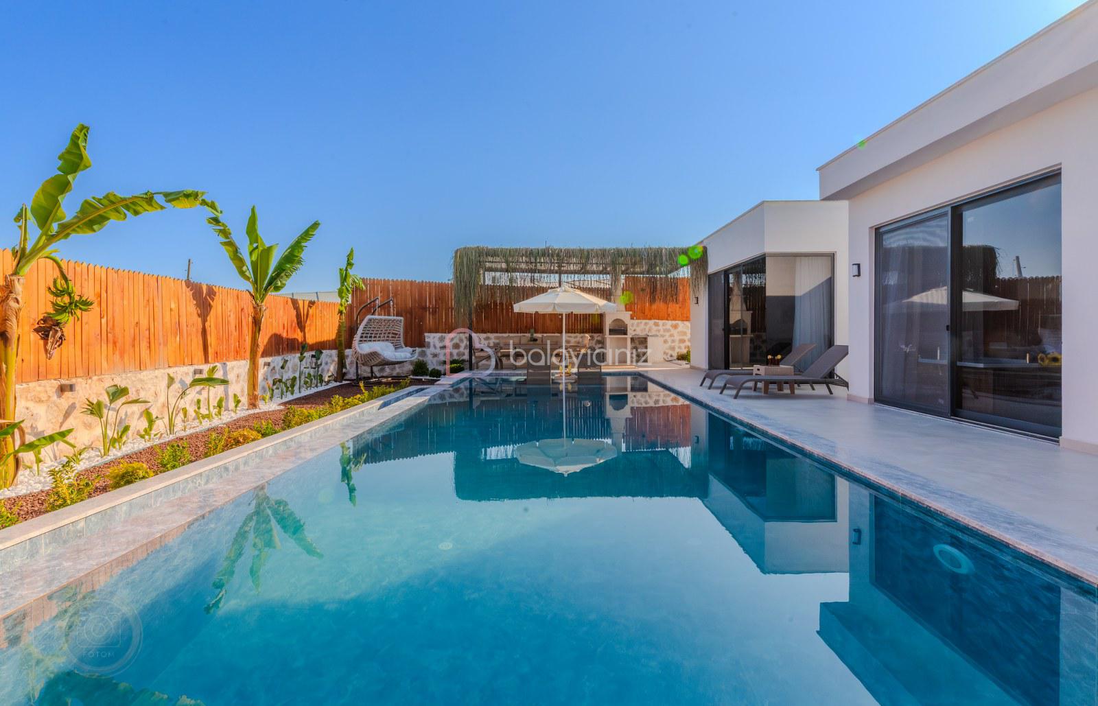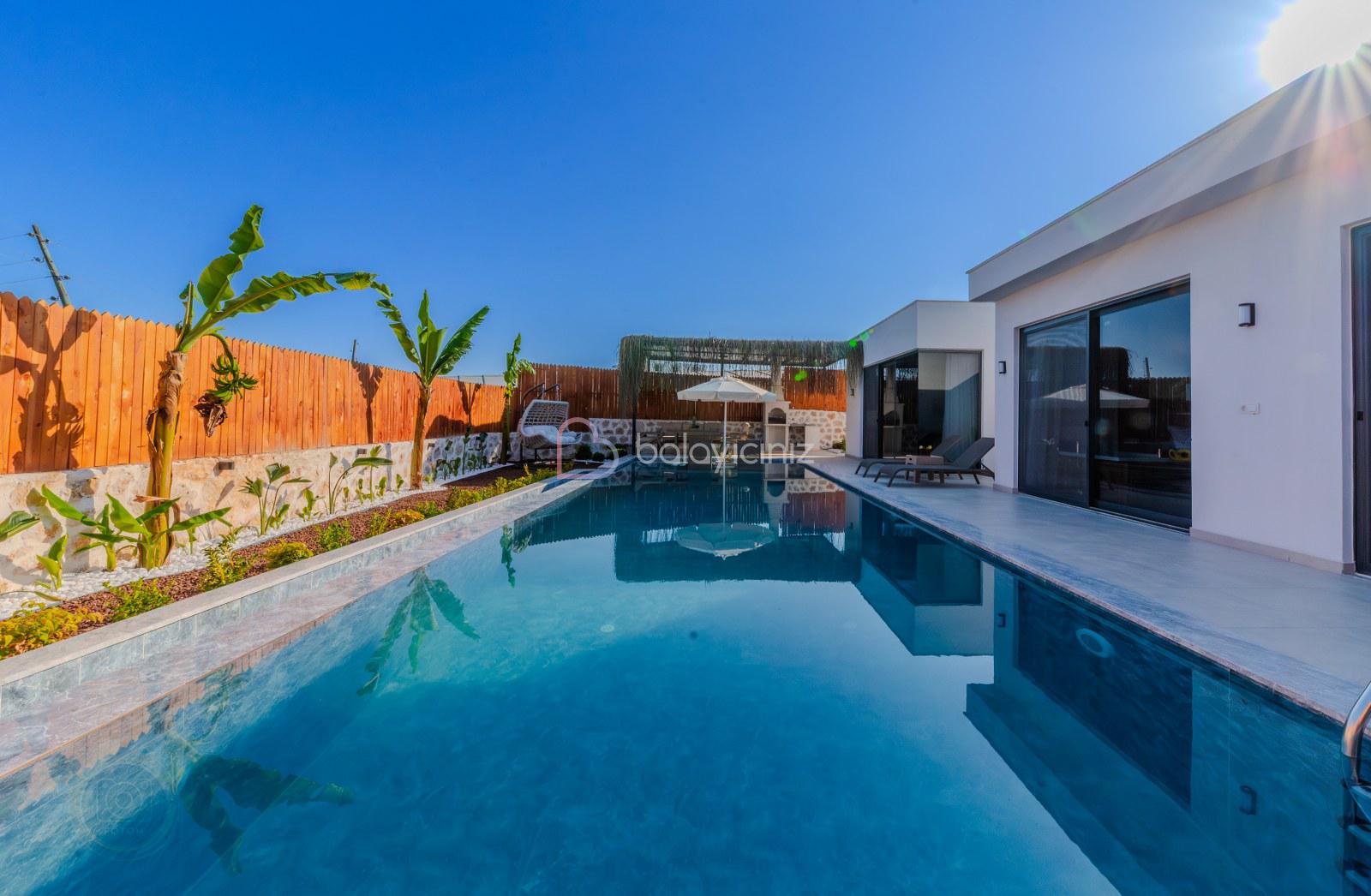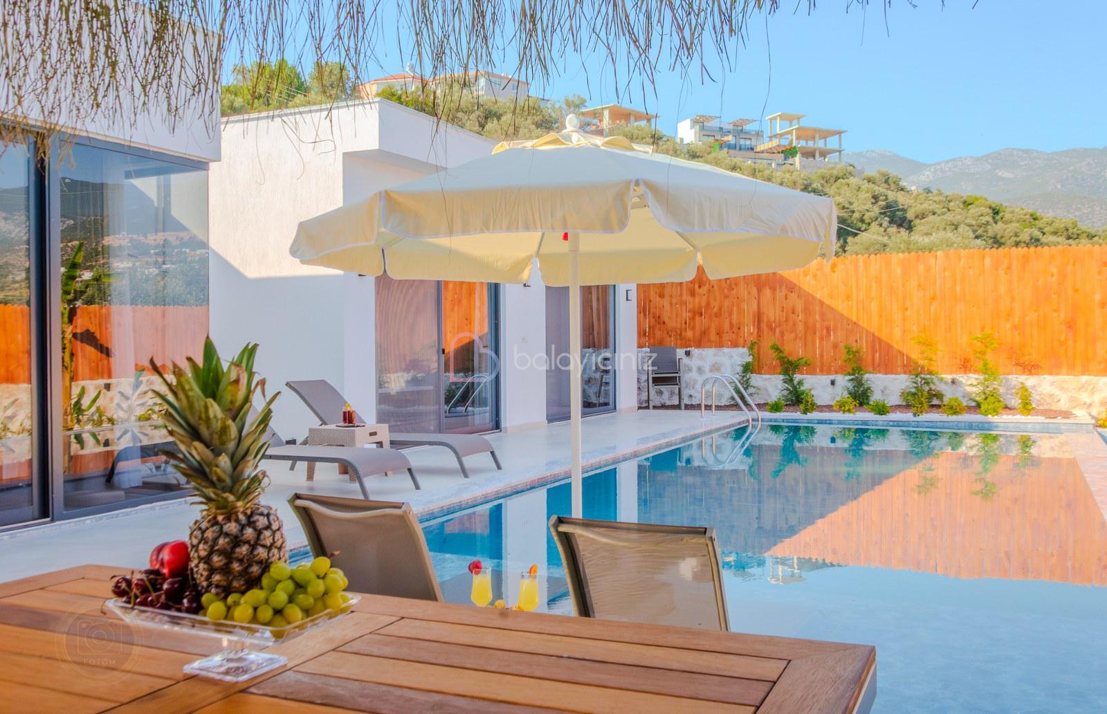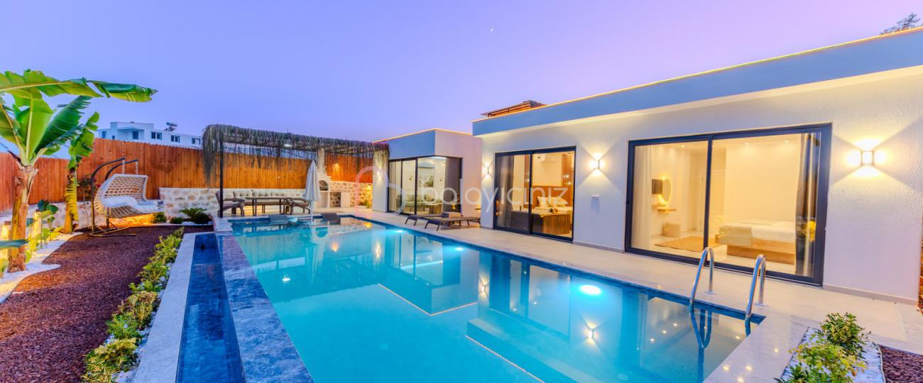 Villa Starlin bahçesinde özel yüzme havuzu, şezlong, semsiye,oturma grubu, mangal ve salıncak bulunmaktadır.