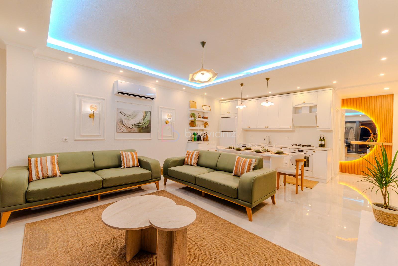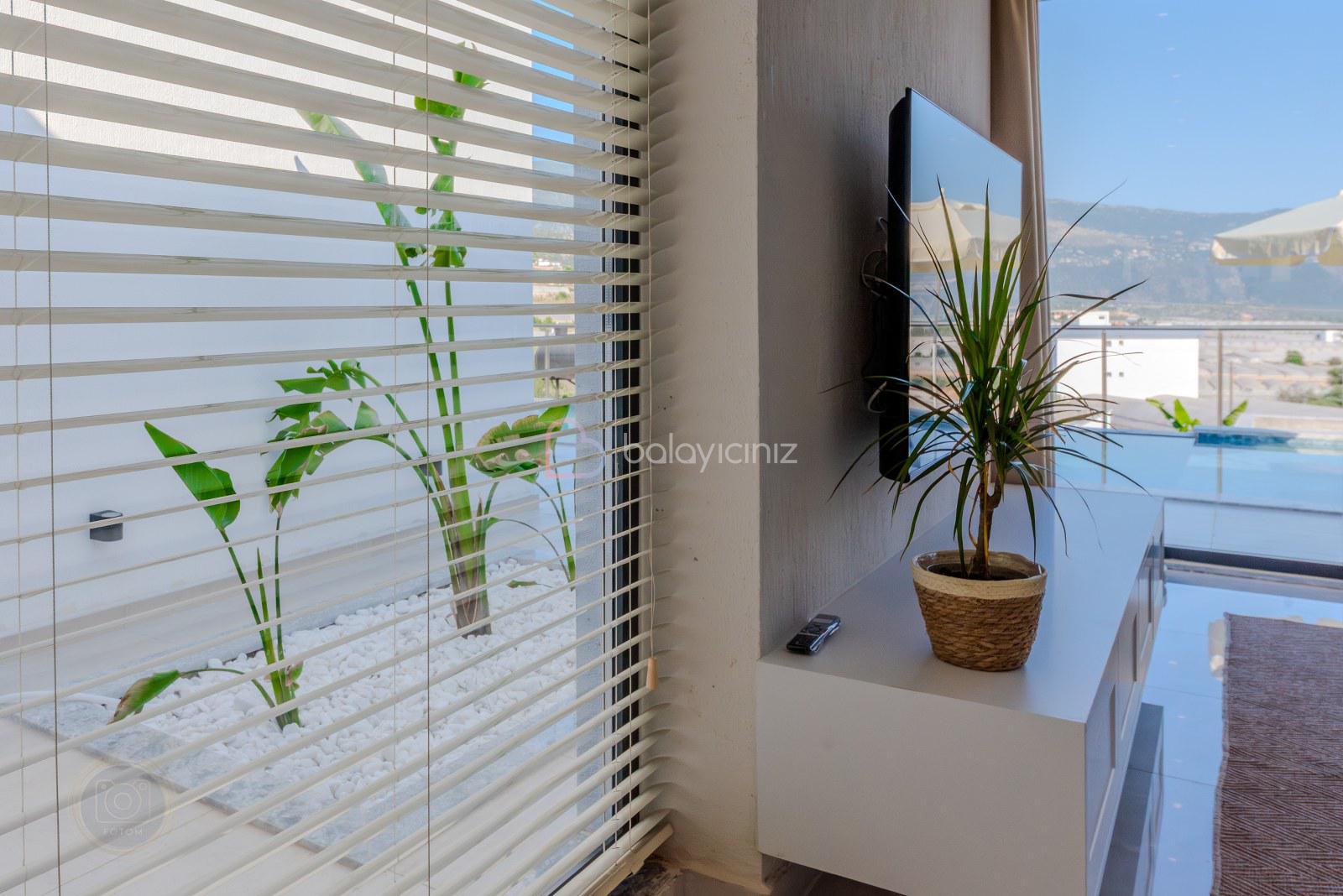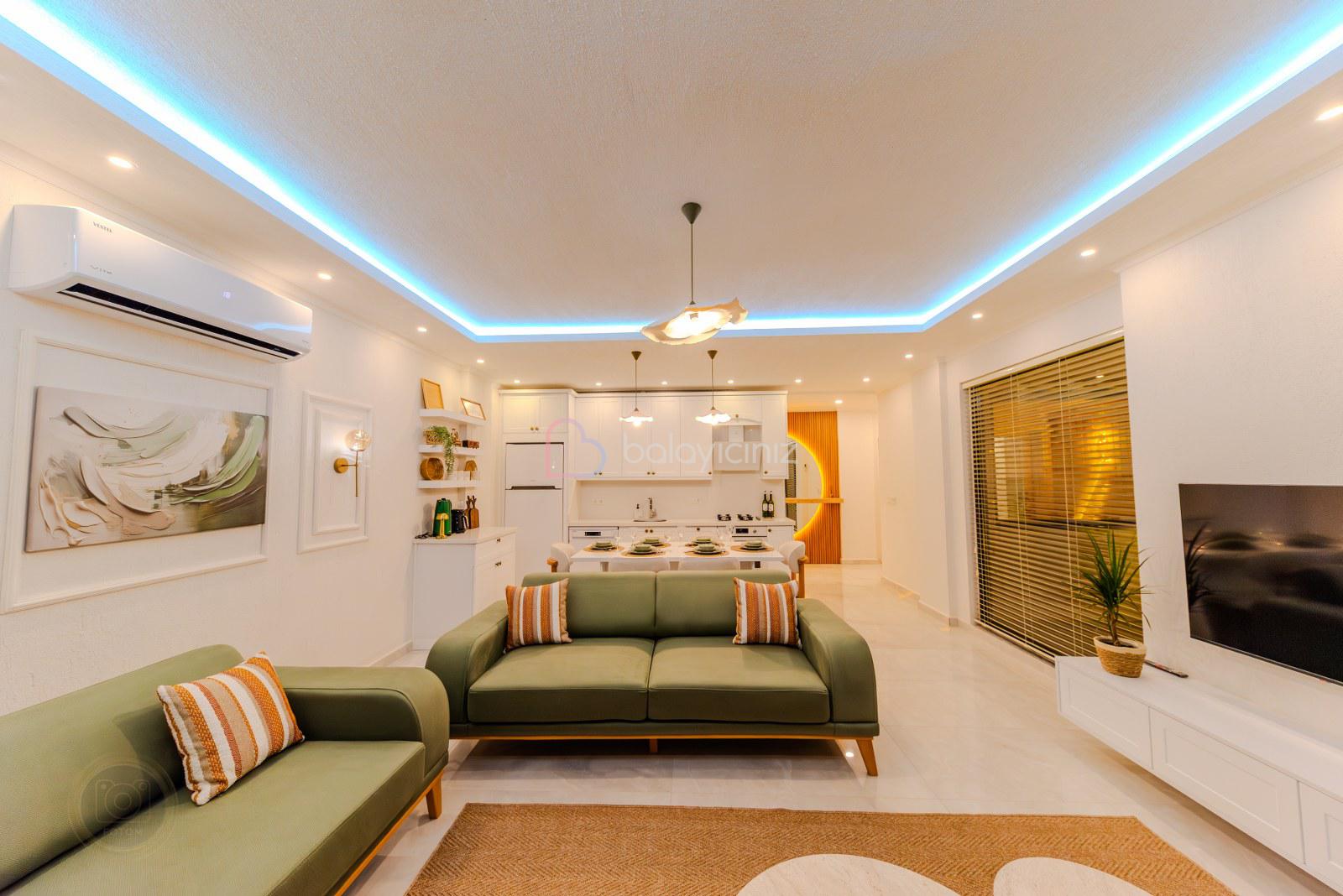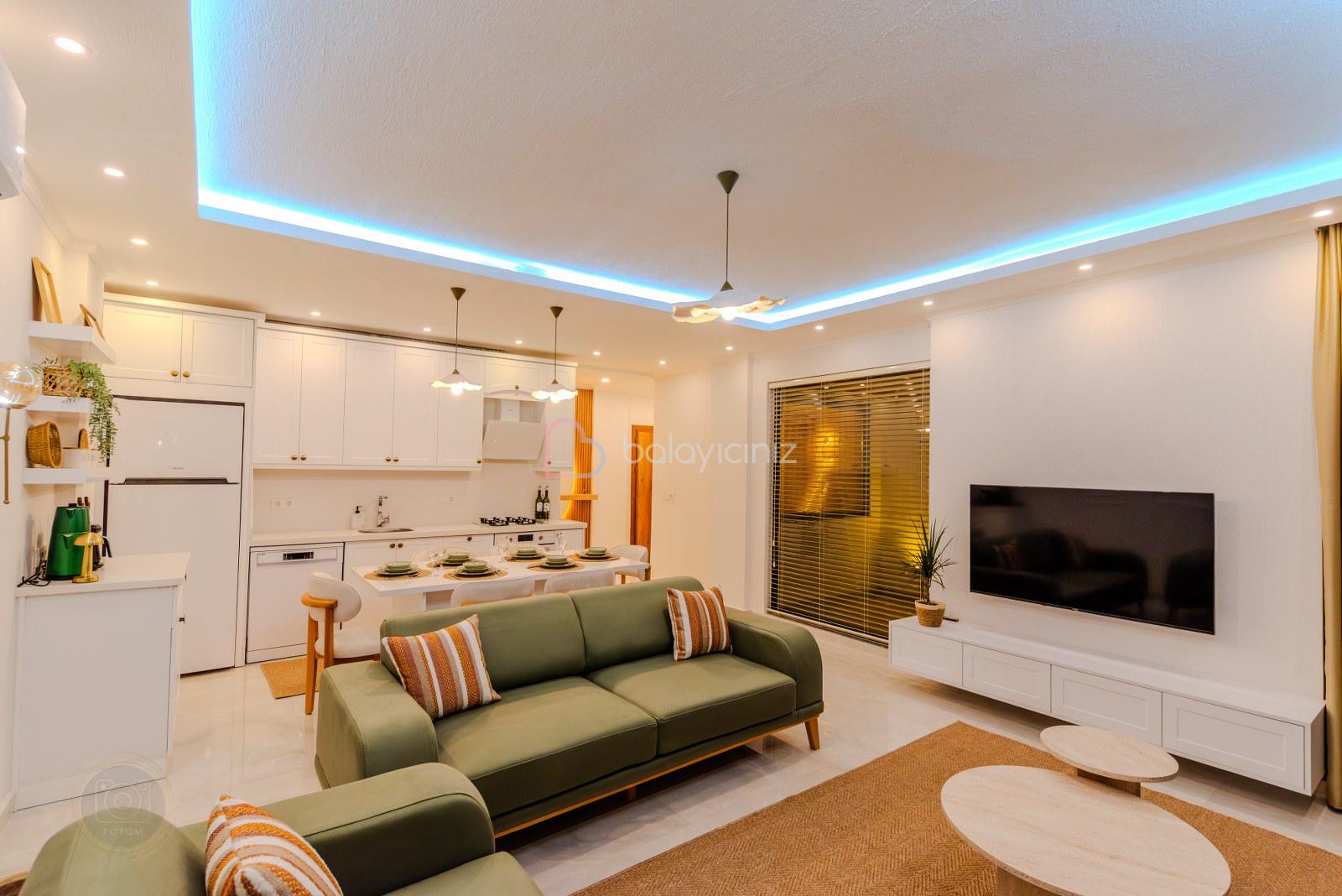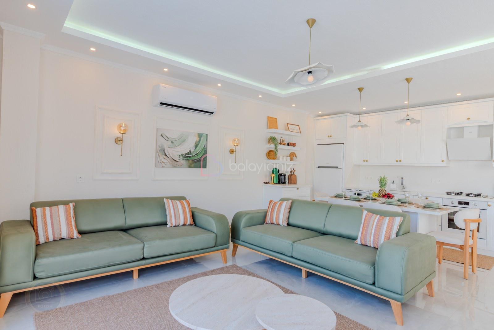 Oturma grubu, uydu alici, televizyon, klima, orta sehpa, internet ve havuza çikis bulunmaktadir.