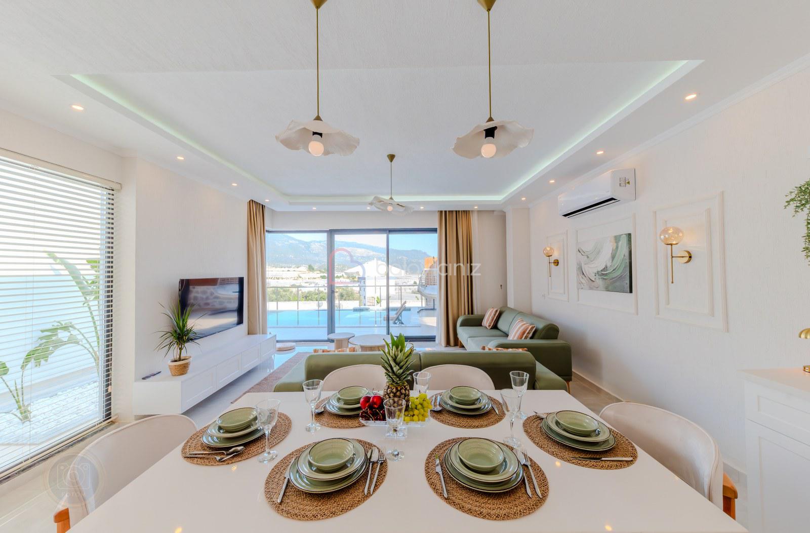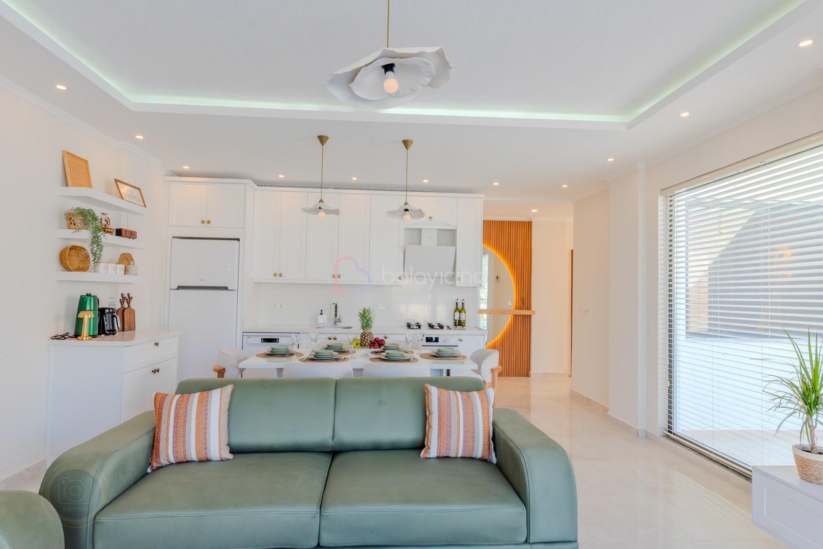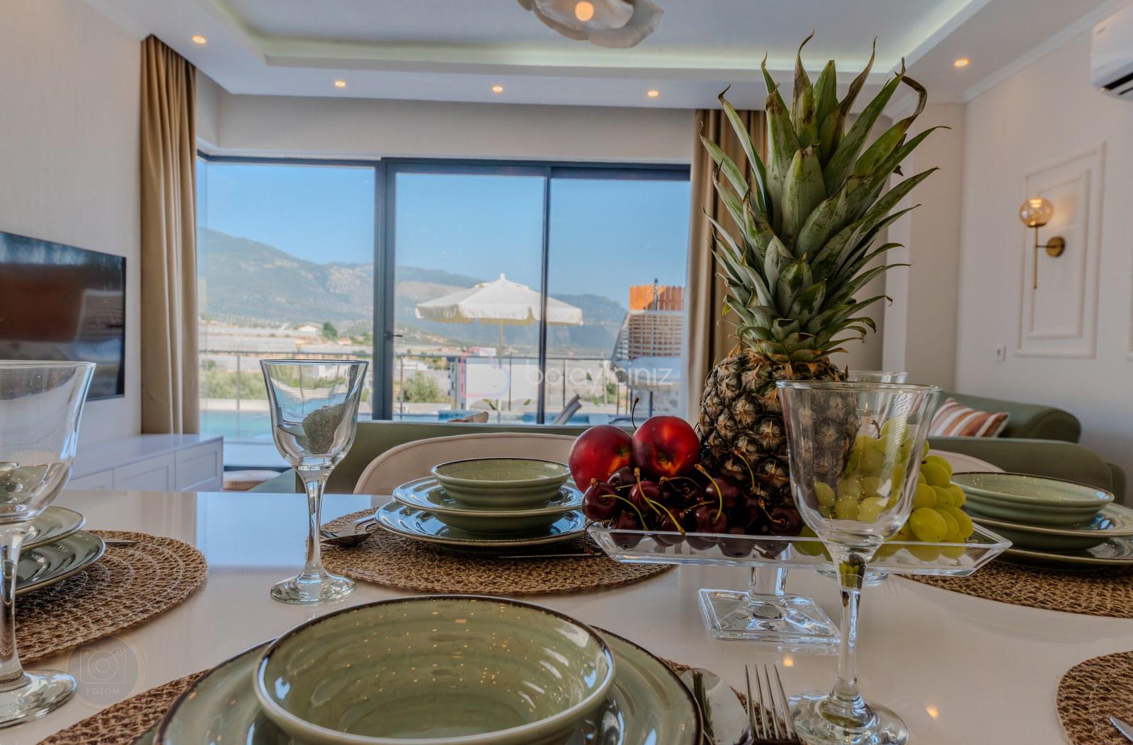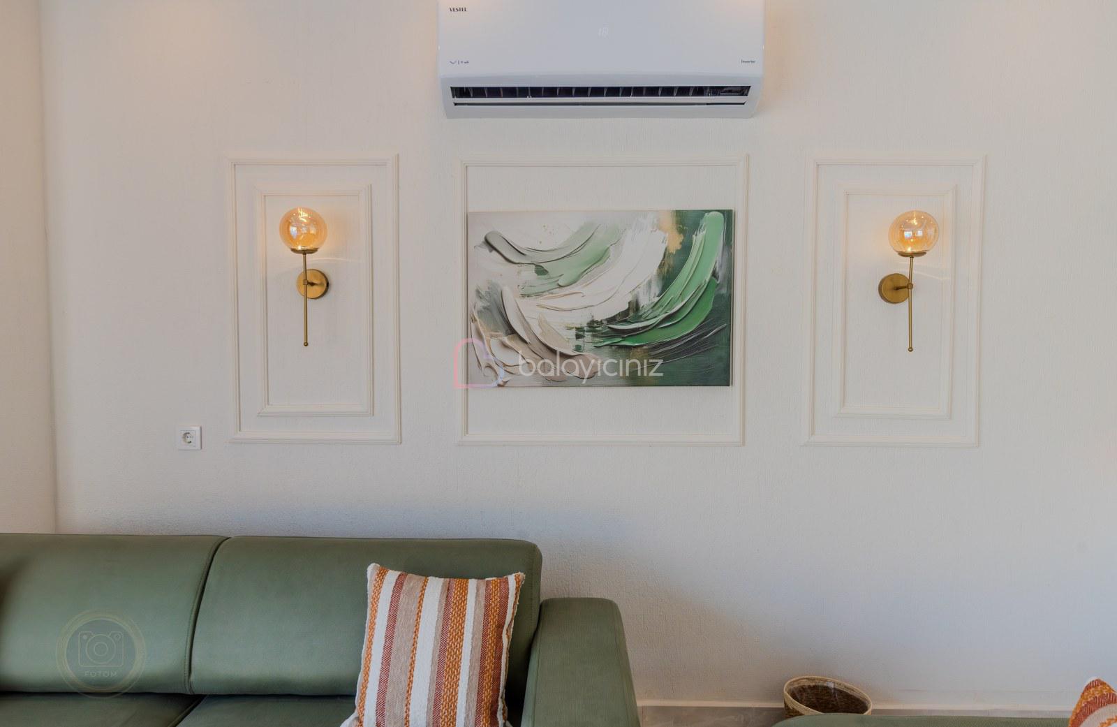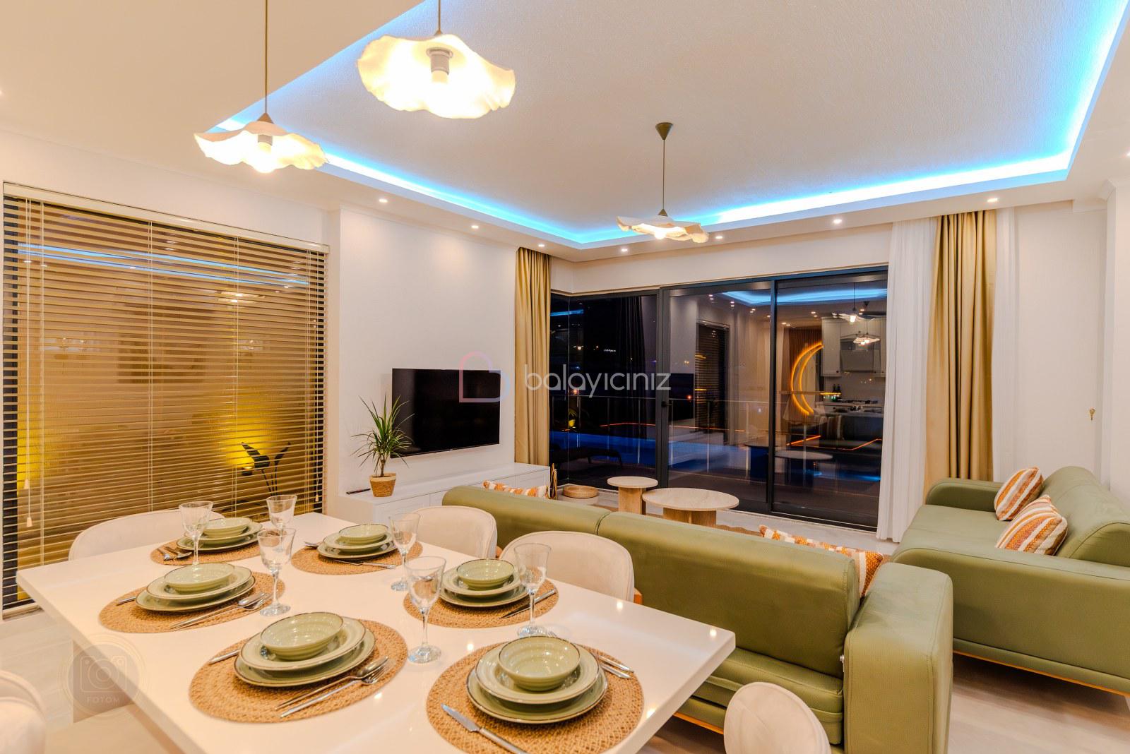 Oturma grubu, uydu alici, televizyon, klima, orta sehpa, internet ve havuza çikis bulunmaktadir.