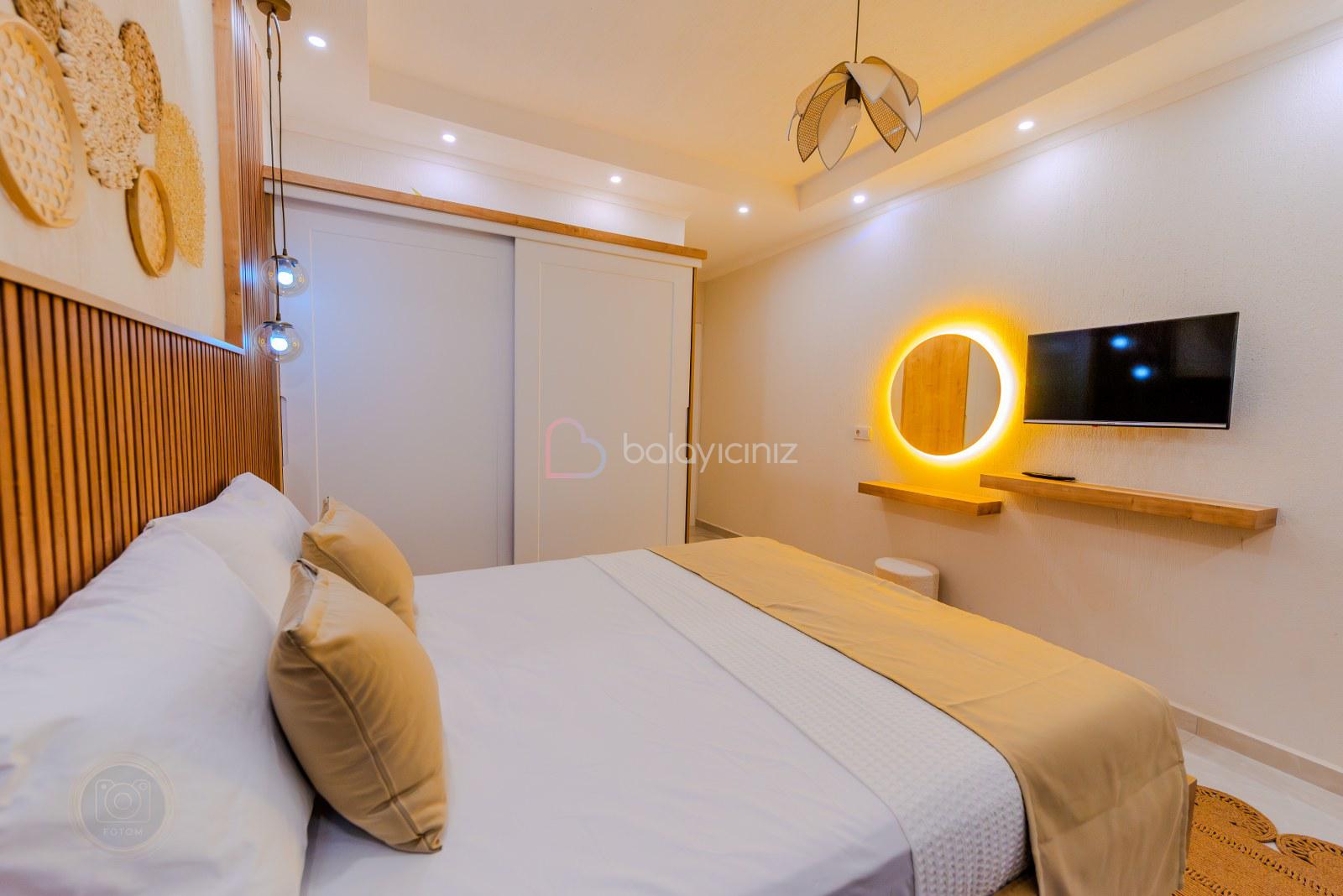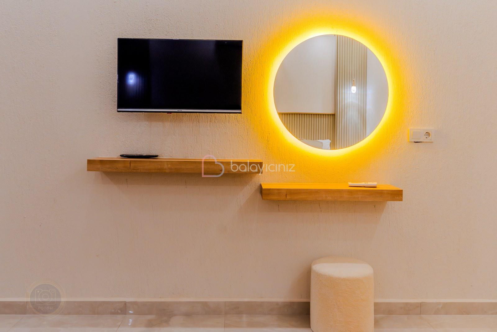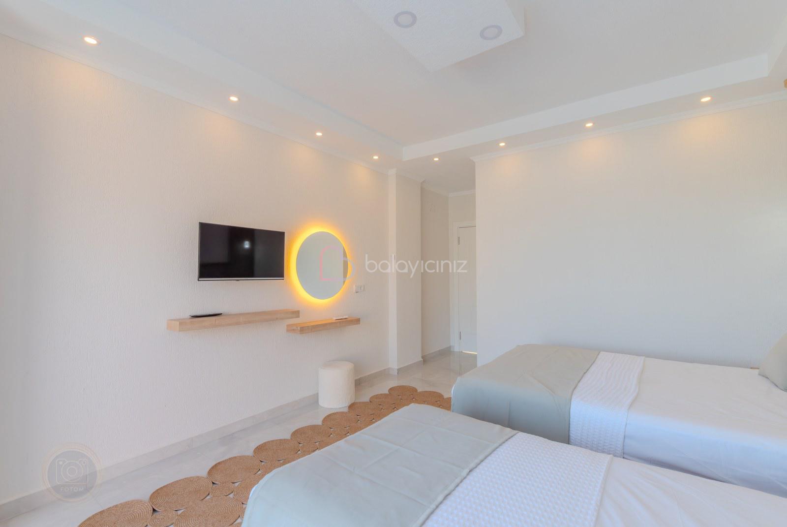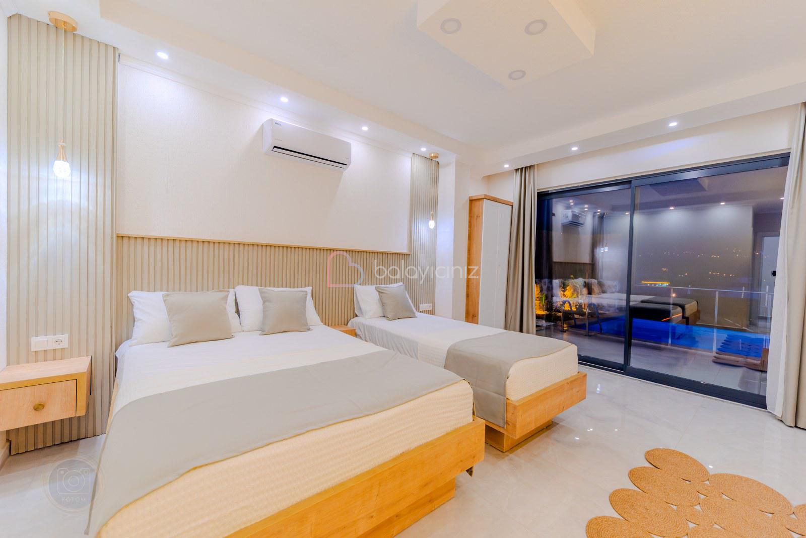 2. Yatak Odasi: 1 adet çift kisilik yatak, 1 adet tek kişilik yatak, komodin, elbise dolabi, makyaj masasi, klima ve banyo bulunmaktadir.