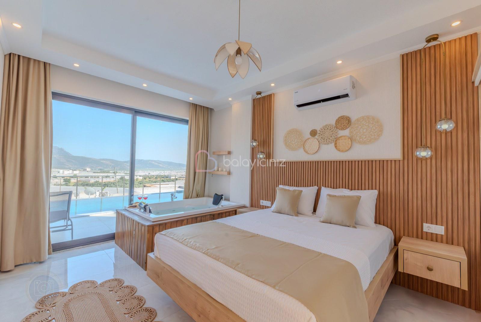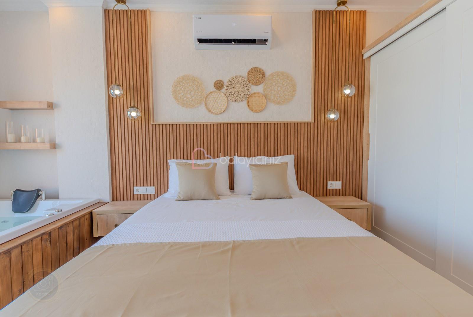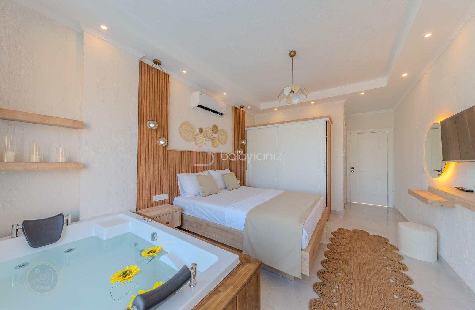 1. Yatak Odasi: 1 adet çift kisilik yatak, elbise dolabi, komodin, makyaj masasi, klima, jakuzi, banyo bulunmaktadir