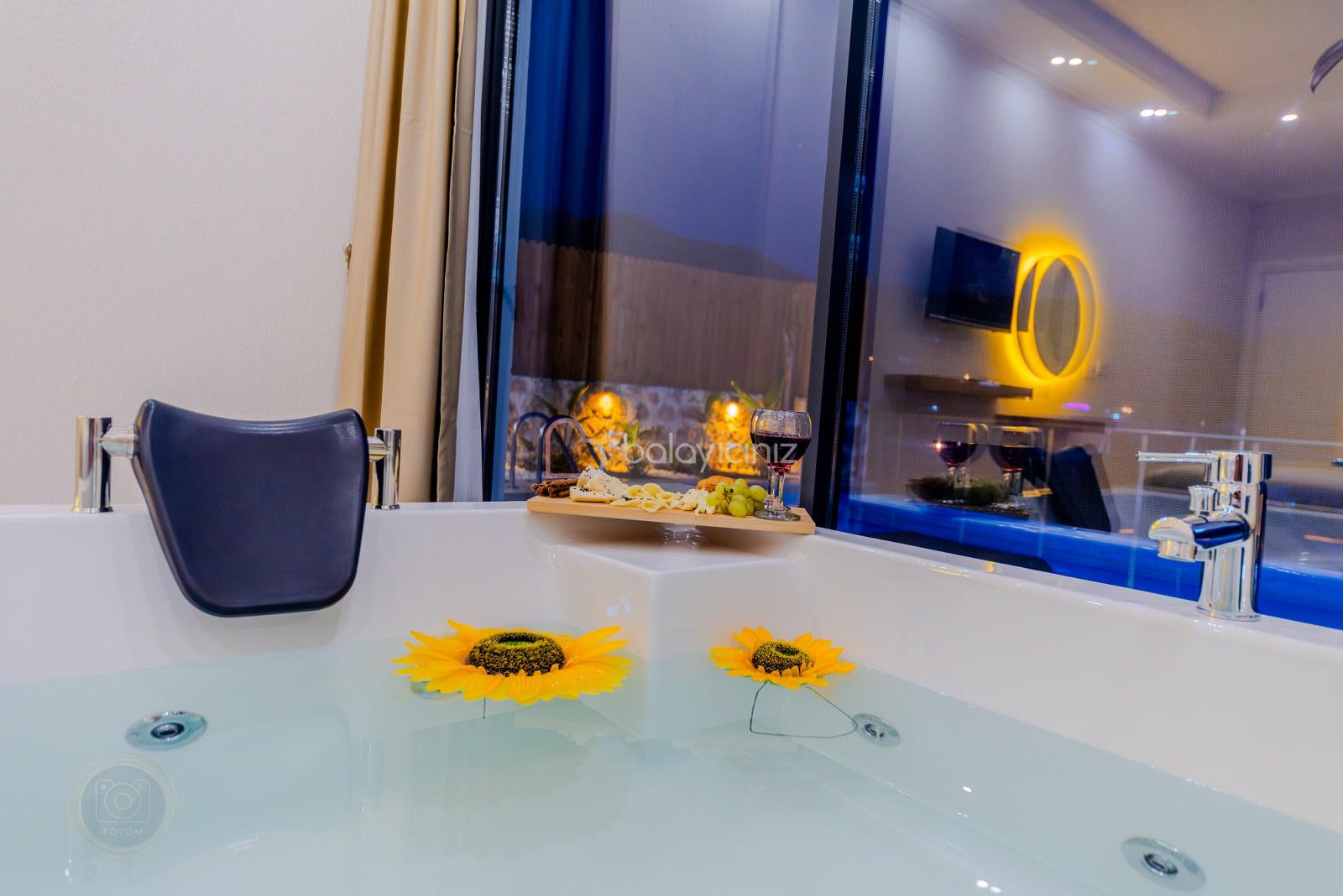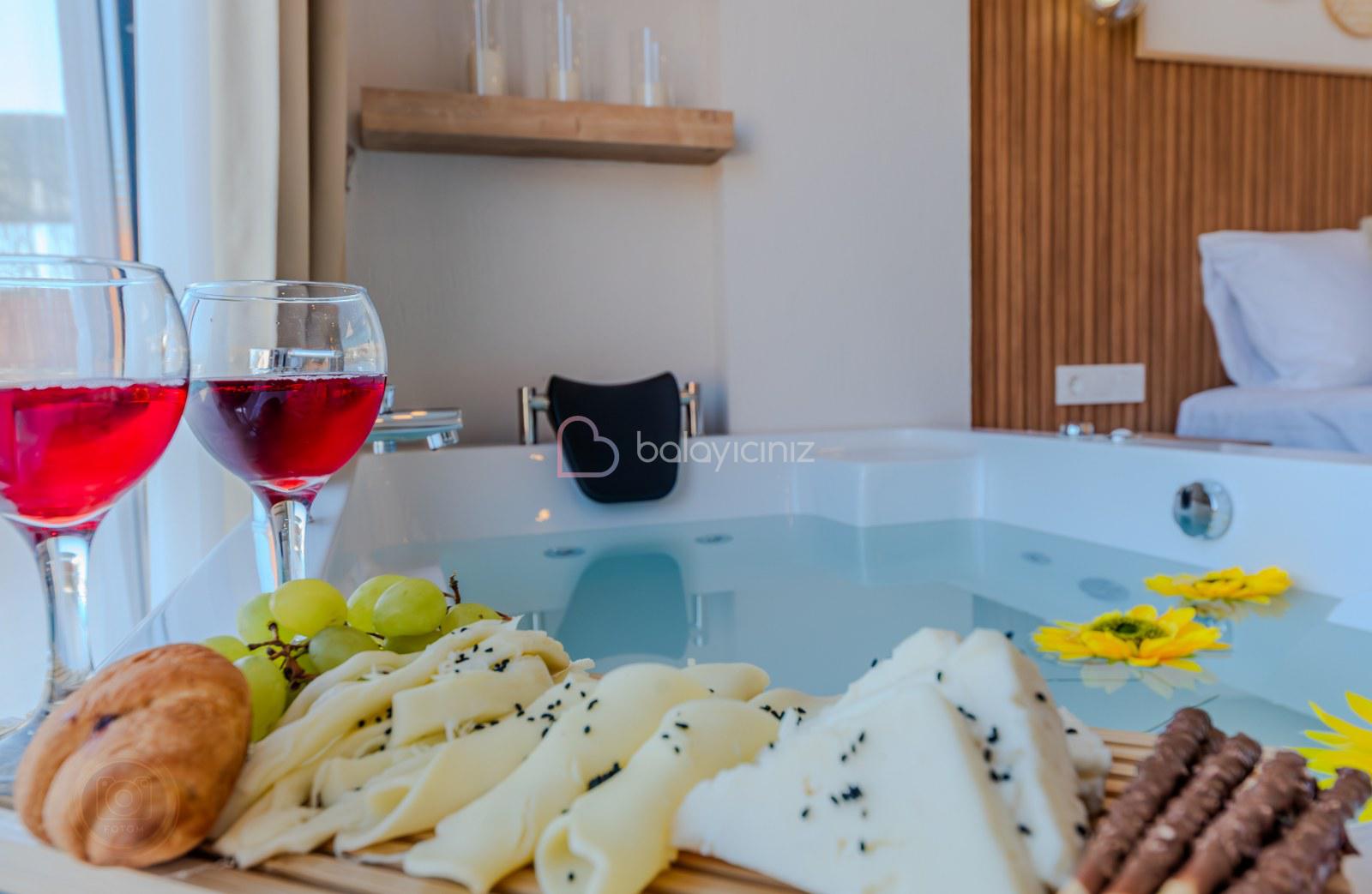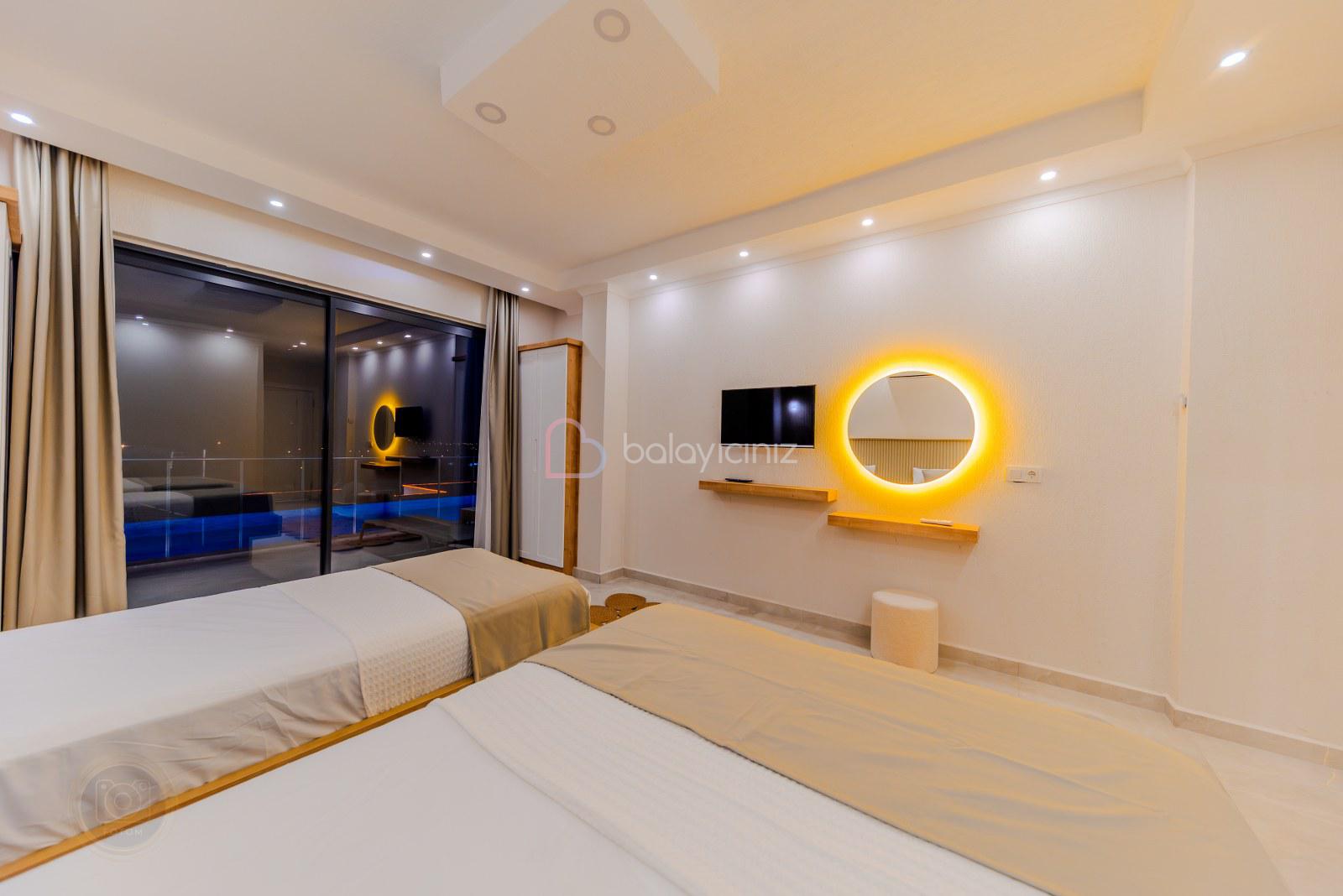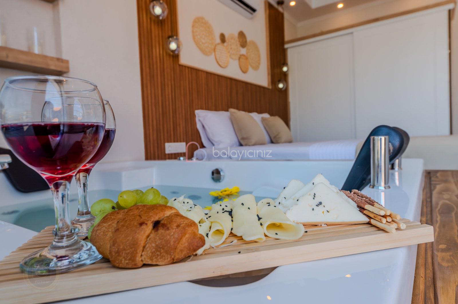 1. Yatak Odasi: 1 adet çift kisilik yatak, elbise dolabi, komodin, makyaj masasi, klima, jakuzi, banyo bulunmaktadir