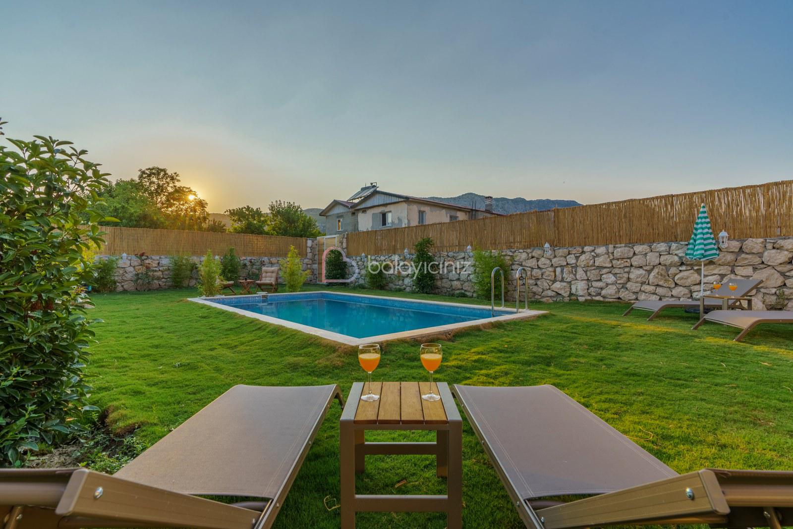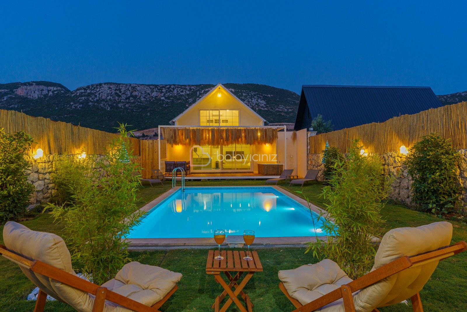 Doga içerisinde Muhafazakar, jakuzili kiralik yazlik villa
