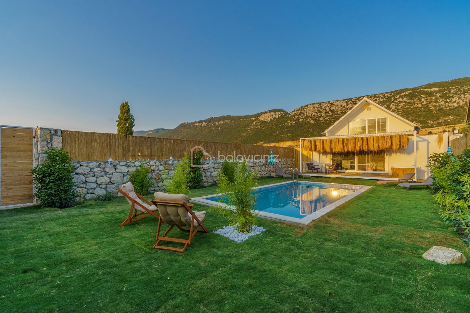 Villa Sumy, Kalkan Bezirgan Bölgesinde, 2 yatak odali ve 4 kisi kapasiteli, jakuzili, muhafazakar villadır. Villamizin havuz alani korunakli olup, bahçe alanında jakuzi bulunan yemyesil bir bahçeye sahiptir. Doga içerisinde sessiz, sakin , sehir kalabaligindan uzak bir tatil imkani sunmaktadir Villa Sumy Kalkan sehir merkezine 15 dakikalik sürüs mesafesindedir. Oldukça konforlu ve modern dizayn edilmis olup ihtiyaciniz olan her seye sahiptir. Muhafazakar, çekirdek aileler, balayi çiftleri için ideal seçim olacaktir, ihtiyacınız olan her şeyin düşünüldüğü Villa Sumy'de size sadece tatilin tadini çıkarmak kaliyor.
