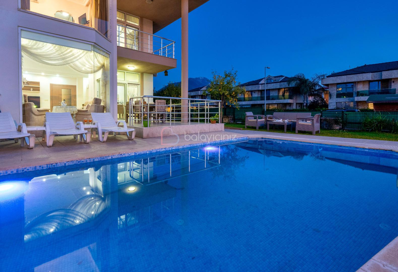 Villa Sunset Luxury, Fethiye merkezde konumlanmış,Deniz manzaralı sahil şeridine yakın mesafe de 3 yatak odalı 6 kişi kapasiteli geniş aileler, arkadaş grupları için ideal olan bir villamızdır. Lüks ve modern dizaynının yanında yeşil bahçe alanı ve havuz terasıyla keyifli bir tatil imkânı sunmaktadır. Villa Sunset Luxury jakuzili bir seçenektir. Geniş bir havuz terası ve bahçe alanına sahip olup kalabalık, çocuklu aileler, geniş arkadaş grupları içinde ideal bir seçenek olacaktır. Şehir merkezine ve denize yakındır. İhtiyacınız olan her şeyin düşünüldüğü villamızda size sadece sevdiklerinizle unutulmaz anlar yaşayıp tatilin tadını çıkarmak kalıyor.