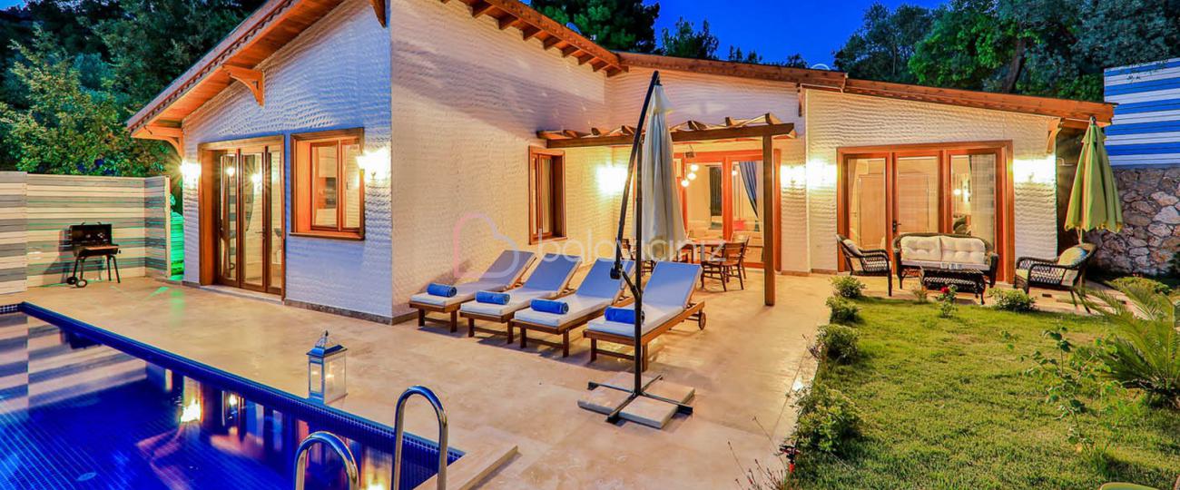 Yemek HizmetiVilla Sunset Uno, Kalkan’ın en güzel köylerinden birisi olan İslamlar Köyü’nde bulunmaktadır. Yemyeşil ağaçların arasında, doğa içerinde muhteşem doğa manzarasıyla öne çıkan villa, misafirlerine doğanın tadını çıkarabilme imkân sunmaktadır. Villa Sunset Uno, tek katlı ve ahşap yapıdadır. Villamız, 2 oda,4 kişi kapasiteli, balayi çiftleri ve 4 kişilik aileler için ideal olup, korunaklı havuzlu muhafazakar konseptte bir villadır. Misafirlerinin her türlü konforunun düşünülüp hayat geçirildiği villamızda, villa konuklarını doğal yasam içerisinde rüya gibi bir villa tatili bekliyor.