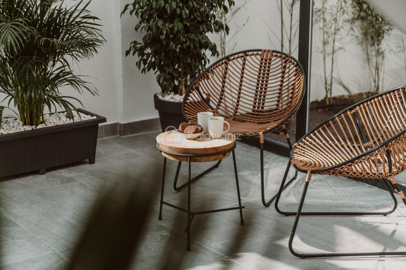 Havuz terasında şezlong, şemsiye, salıncak, bahçe oturma grubu, yemek masası, barbekü bulunmaktadır.