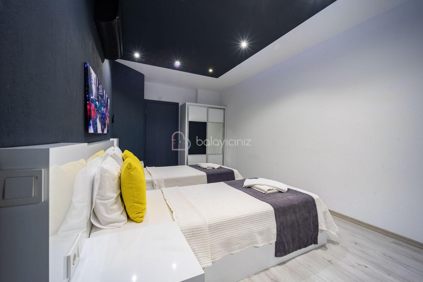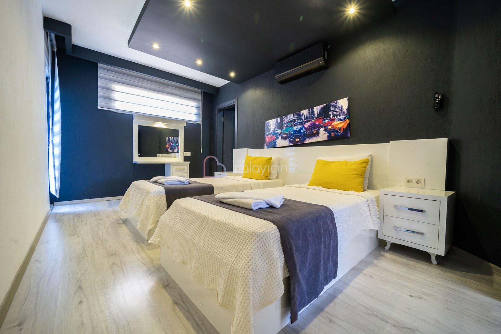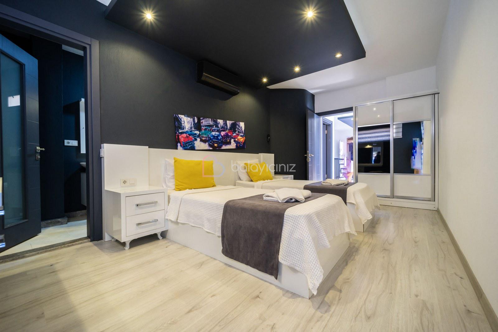 3. Yatak Odası: 2 adet tek kişilik yatak, klima, elbise dolabı, makyaj masası, komodin, banyo, tuvalet bulunmaktadır.
