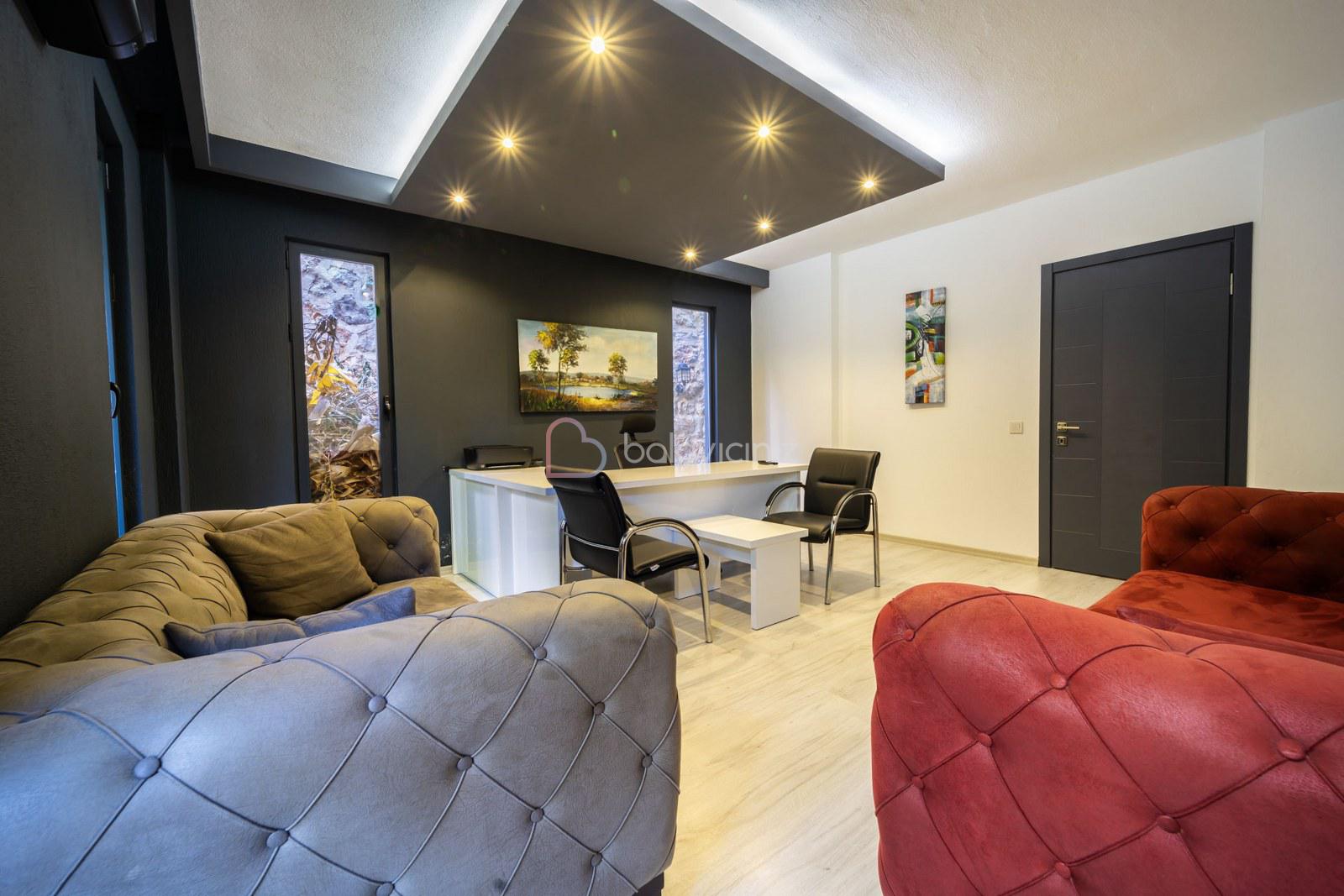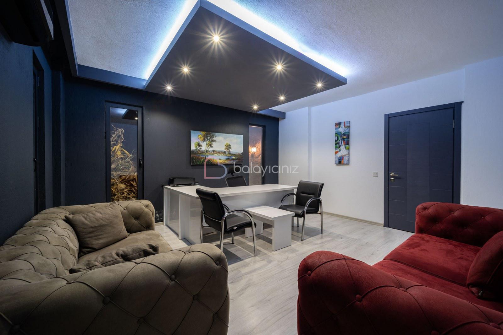 Modern oturma grubu, uydu alıcı, televizyon, orta sehpa, ütü, ütü masası, elektrik süpürgesi bulunmaktadır.