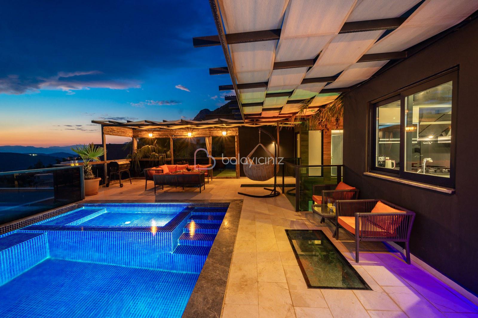 Villa Therapy Everest, Kalkan Kördere bölgesinde konumlanmış 3 yatak odalı, 6 kişi konaklama kapasitesine sahip, jakuzili, deniz manzaralı, saunalı, hamam, kapalı ısıtmalı havuzlu, bilardo masalı villadır. Villamiz doğa içinde konumlanmış, deniz manzaralı, şehir merkezine yakın konumdadır. Villa Therapy Everest, lüks ve modern dizayn edilmiş olup sizlere konforlu bir tatil imkanı sunmaktadır. Tüm yılın yorgunluğunu keyifli bir şekilde hem dinlenerek hem eğlenerek atabileceğiniz eşsiz bir havuz terası ve aktiviteleri mevcuttur. Geniş aileler, kalabalık arkadaş grupları için ideal olan seçeneğimiz de ihtiyacınız olan her şeyin mevcut olduğu Villa Therapy Everest'te sadece sevdiklerinizle tatilin tadını çıkarmak kalıyor.