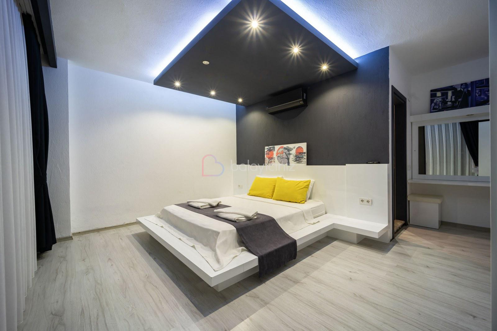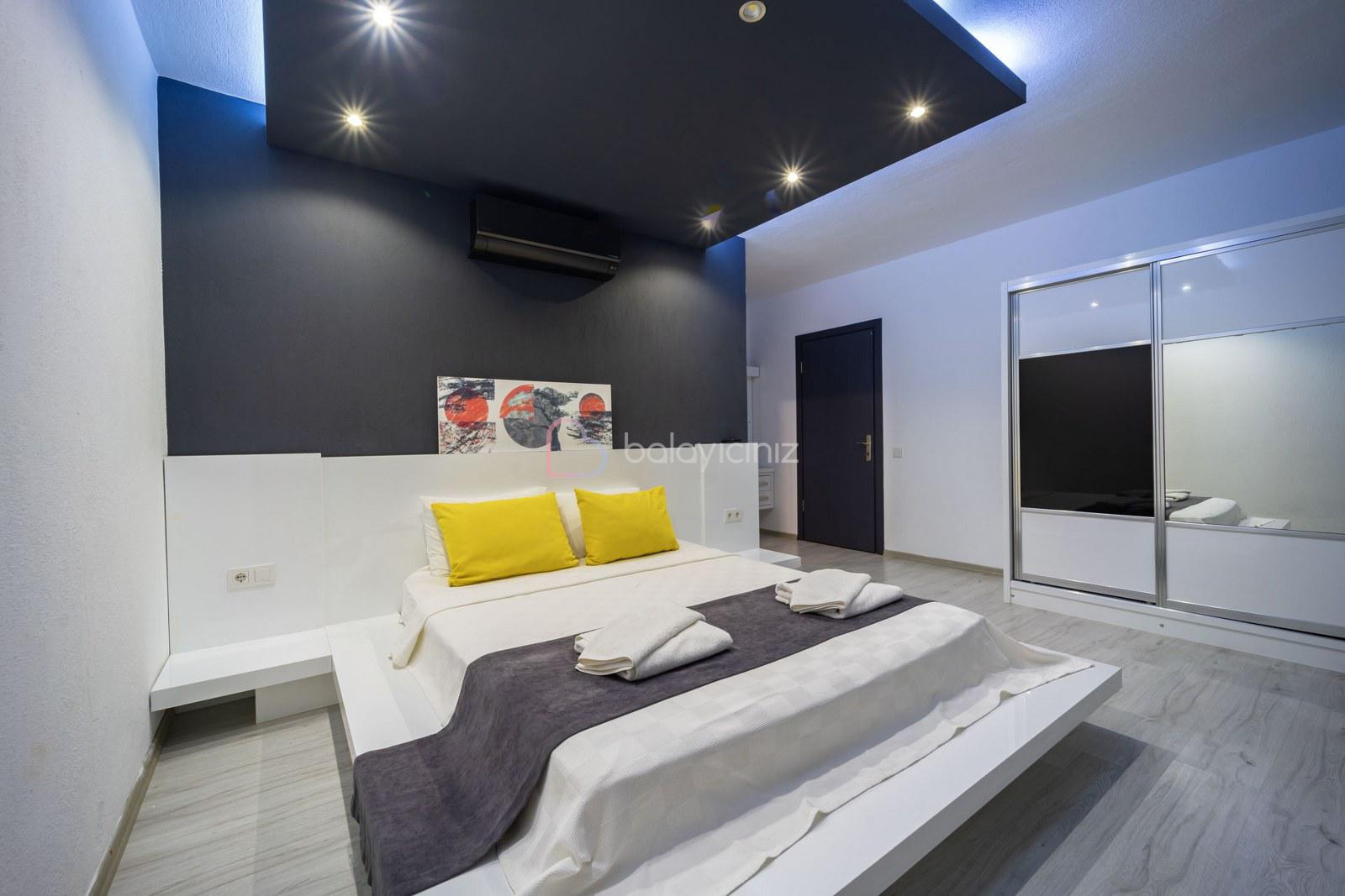1. Yatak Odası: 1 adet çift kişilik yatak, klima, elbise dolabı, makyaj masası, komodin, banyo, tuvalet bulunmaktadır.