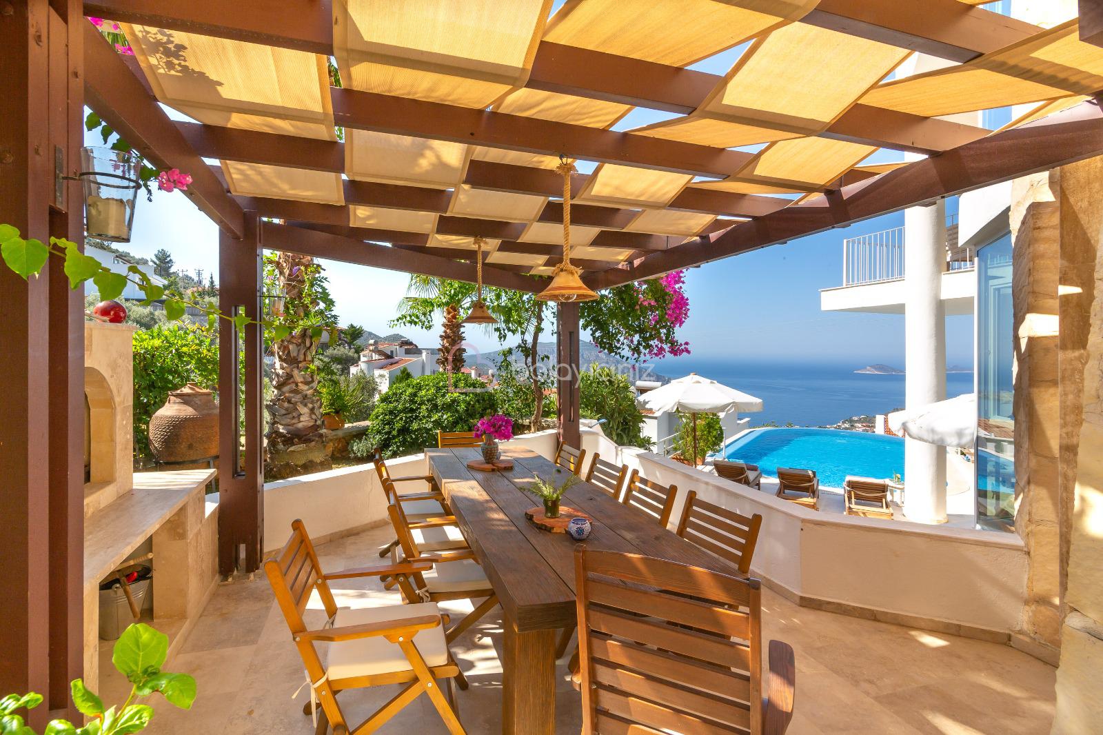 Yemek HizmetiKalkan Kızıltaş mevkiinde deniz manzarası ve doğa manzarasına sahip lüks ve özel havuzlu Villa Toros 5 yatak odası ile 10 kişilik konaklamalara imkân sağlamaktadır. Villa konforu ile size evinizdeki sıcaklığı andıracak bir tatil geçirmenize olanak sağlayacaktır. Havuz başında keyifli zaman geçirirken size eşlik eden olağanüstü deniz manzarasına hayran kalacağınız bir villa sizleri beklemektedir.