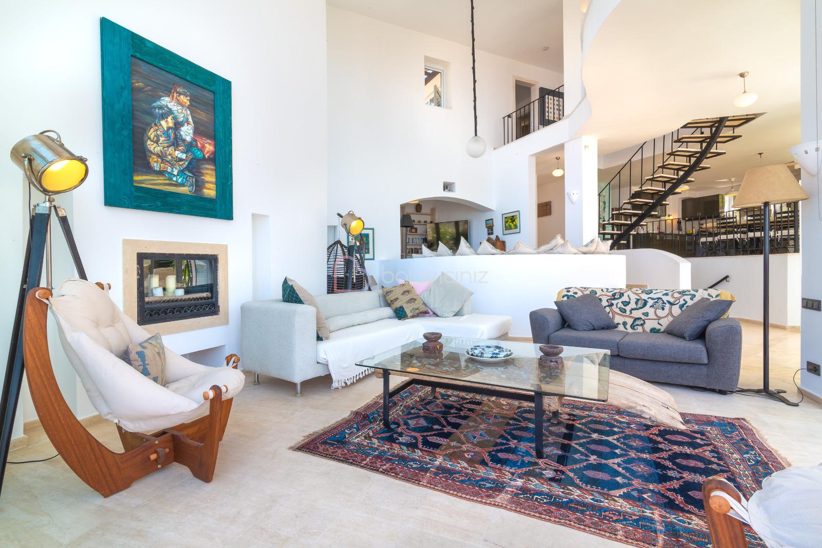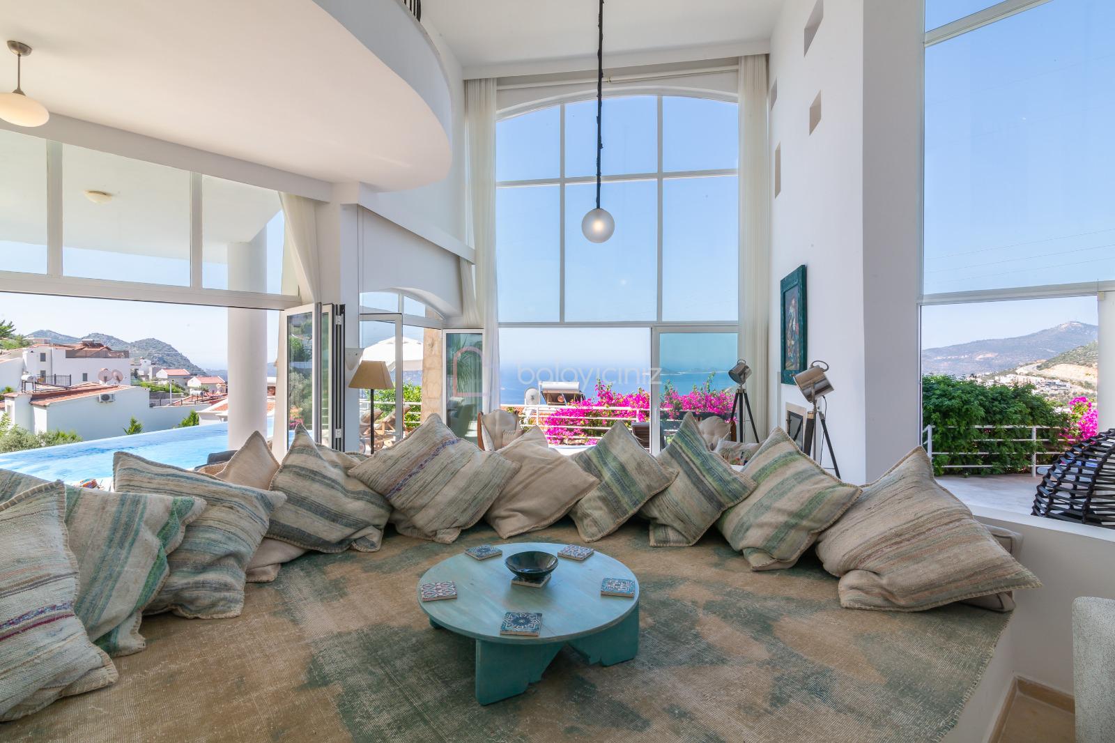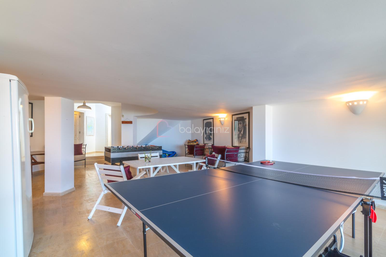 Deniz manzaralı salonunda oturma grubu, plazma TV, uydu alıcısı, klima, ütü ve ütü masası, sehpa ve havuz başına çıkış bulunmaktadır.