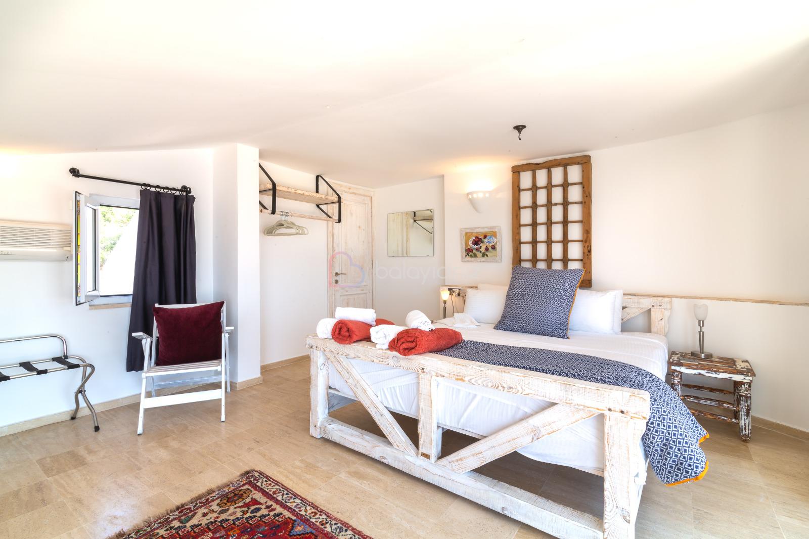 1. Yatak Odası: Çift kişilik süit yatak odası, klima, makyaj masası, elbise dolabı, komodin, banyo ve lavabo bulunmaktadır.