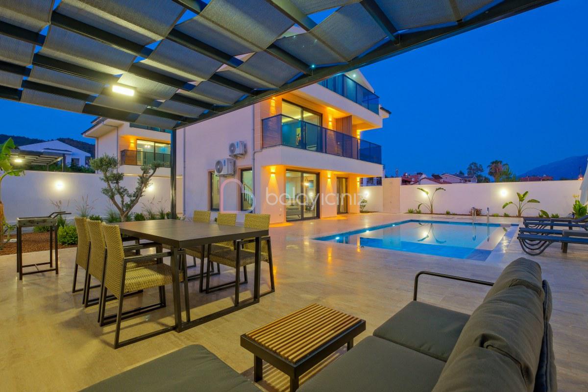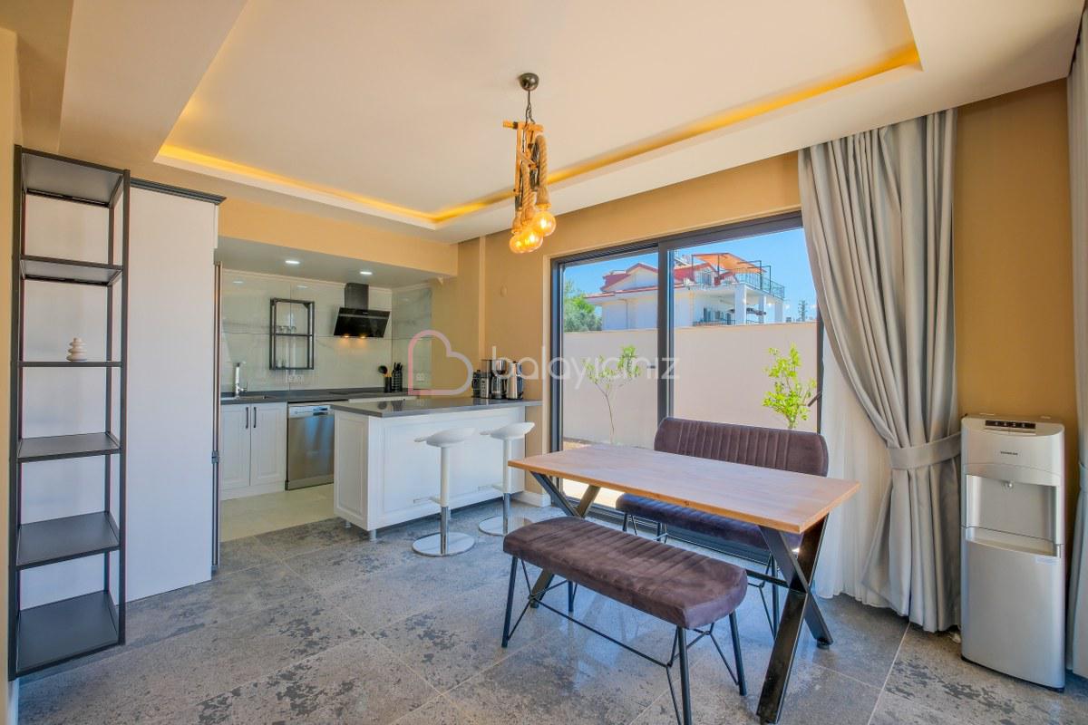 Yemek HizmetiVilla Tuncay 2, Fethiye'nin Çiftlik mevkiinde konumlanan, modern mimariye sahip 3 yatak odalı, 6 kişi konaklama kapasiteli kiralık yazlık villadır. Doğa içerisinde geniş aileler, kalabalık arkadaş grupları için ideal bir seçenek olacaktır. Konforlu ve modern dizayn edilen Villa Tuncay 2'de ihtiyacınız olan her şey mevcuttur sizlere sadece sevdiklerinizle eğlenceli ve konforlu bir tatilin tadını çıkarmak kalıyor.