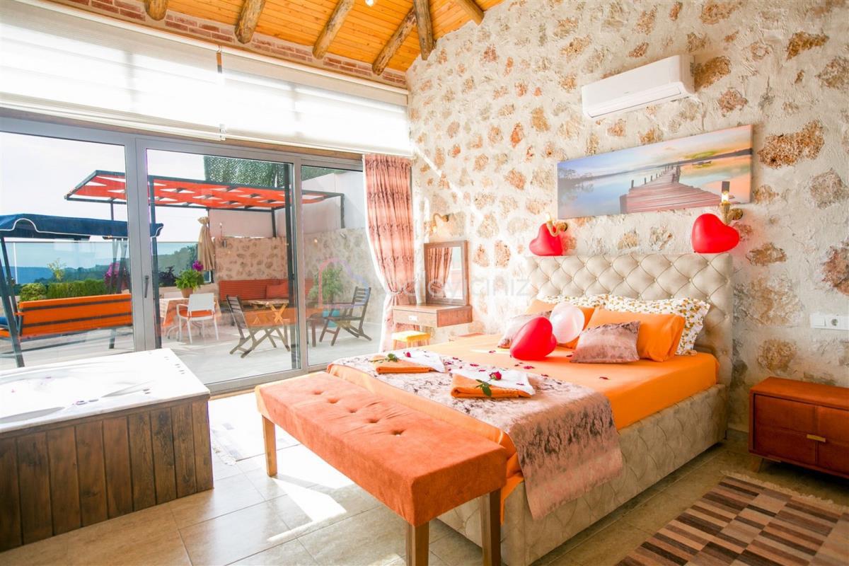 1. Yatak Odası: Çift kişilik yatak, klima, komodin, elbise dolabı, makyaj masası, berjer, jakuzi, banyo ve tuvalet bulunmaktadır.