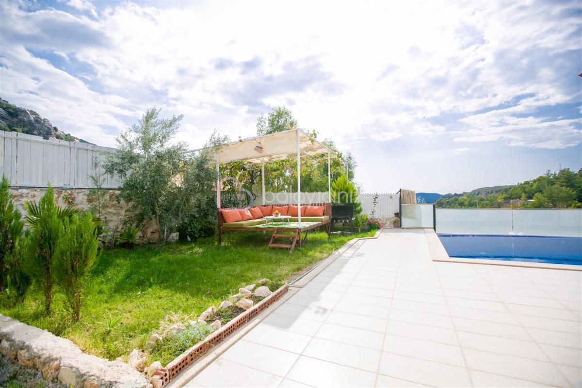 Özel yüzme Havuzu korunaklı olup dışarıdan gözükmemektedir. Bahçe içerisinde şezlonglar, güneş şemsiyeleri, masa ve sandalyeler, barbekü, salıncak, çardak ve oturama alanı bulunmaktadır.
