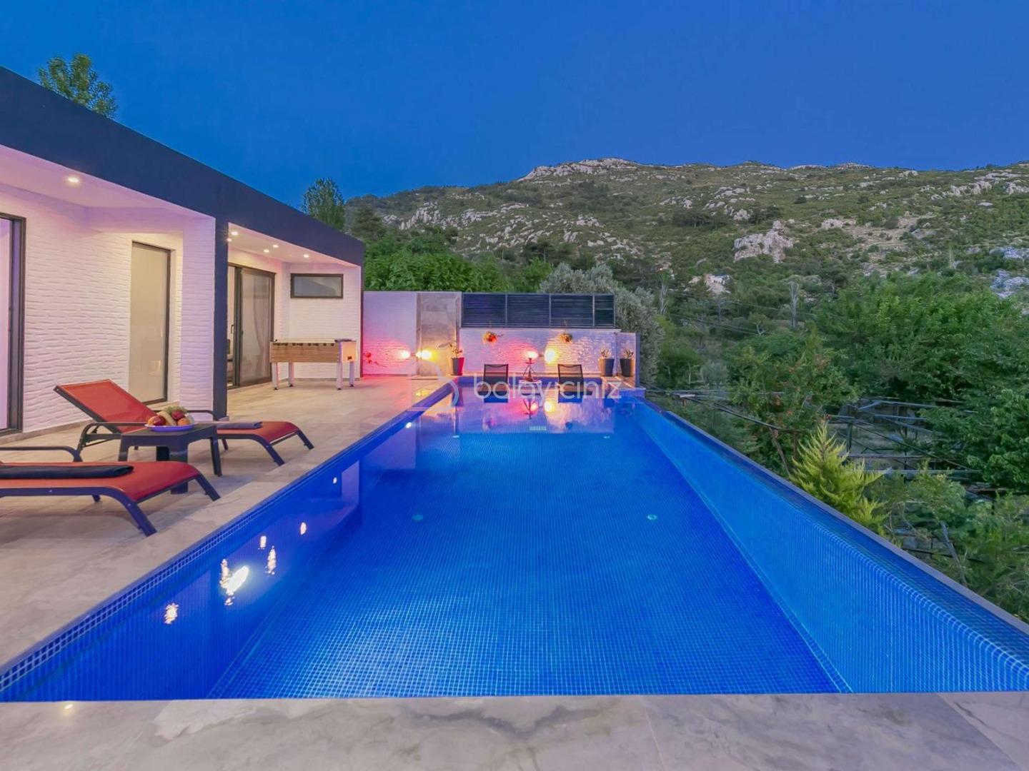Villa Viva, Kalkan’ın İslamlar bölgesinde bulunmaktadır. Tek odalı 2 kişi kapasiteli ve kapalı havuzludur. Balayi çiftleri düşünülerek keyifle inşa edilmiş. Kapalı havuzlu özelliklli olması sayesinde kış aylarında da villamızda konaklama yapabilirsiniz. Muhafazakar konseptte olan villamızda korunaklı yüzme havuzu mevcuttur. Şehrin gürültüsünden uzak, doğa içerisinde bir tatil geçirmek isteyen misafirlerimiz için Villa Viva ideal seçeneklerimizden birisidir.