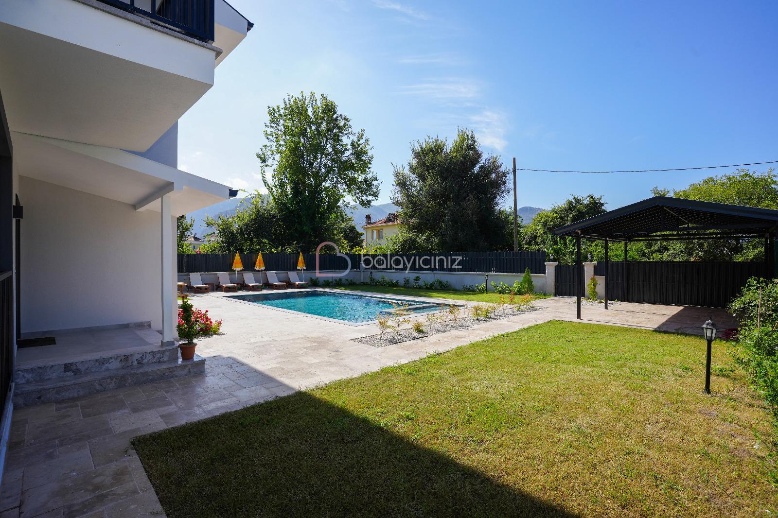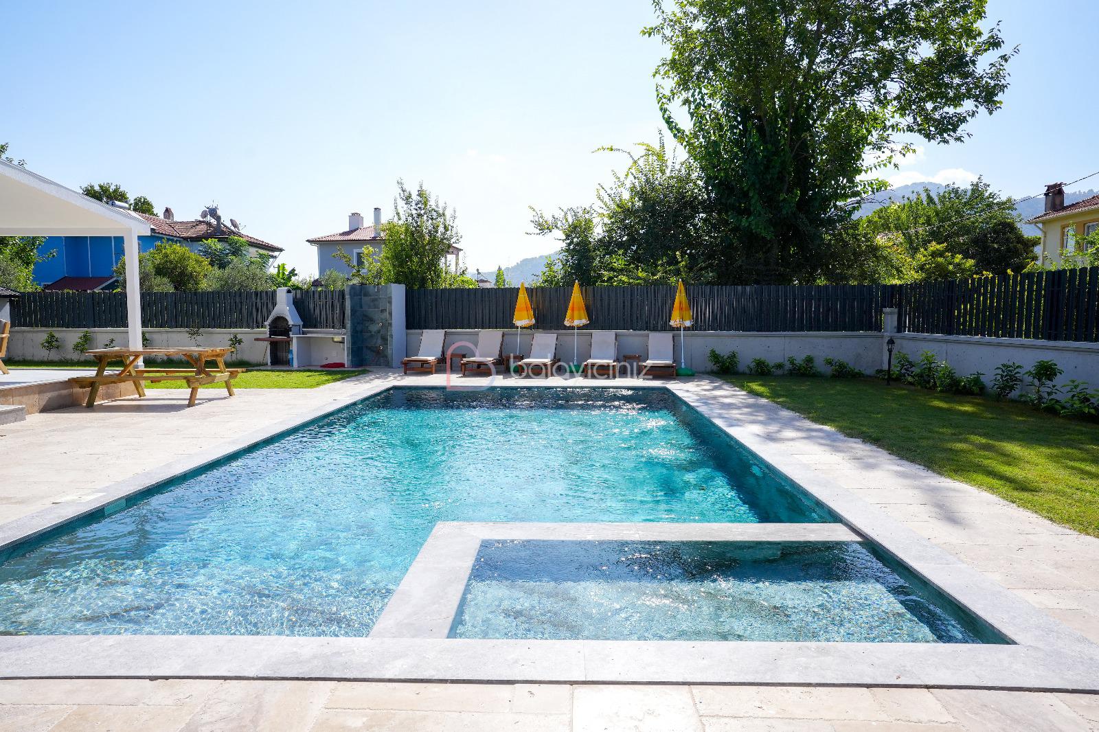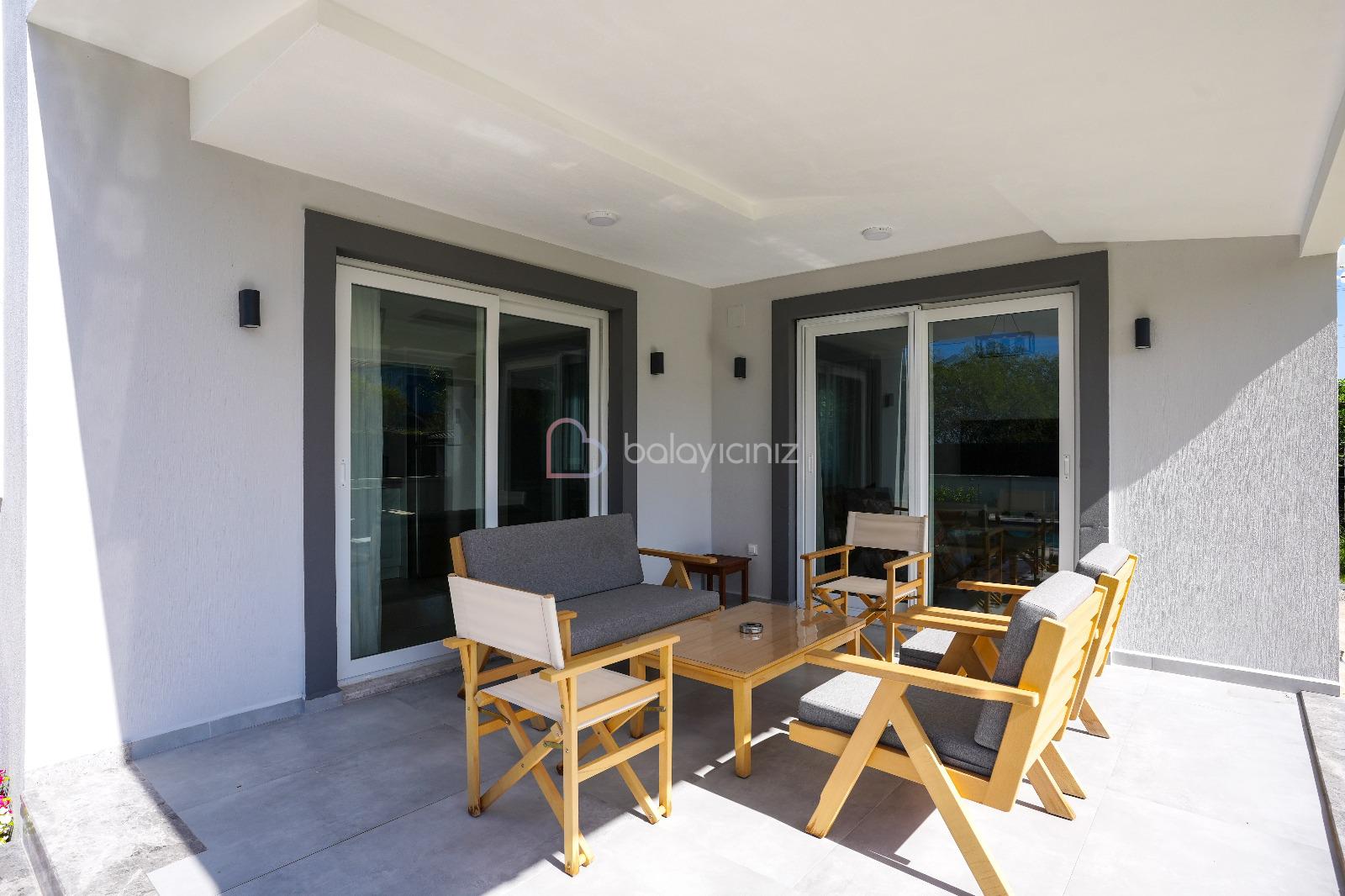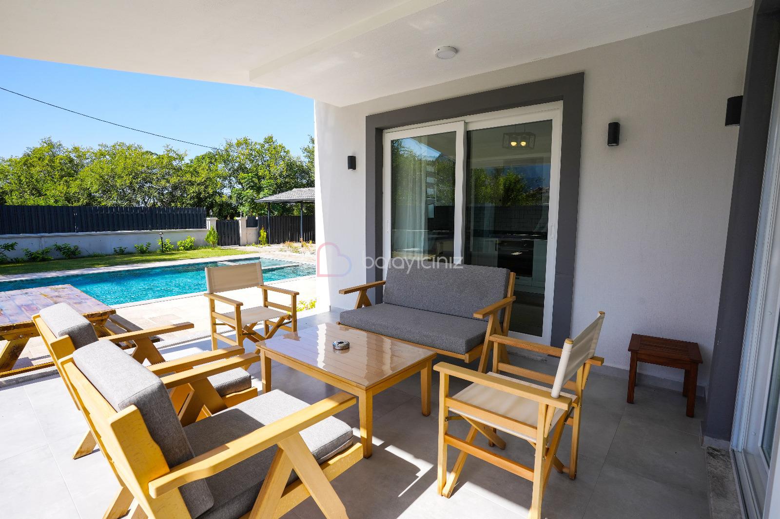 Havuz terasında özel yüzme havuzu, şezlonglar, güneş şemsiyesi, bahçe mobilyaları, mangal bulunmaktadır.