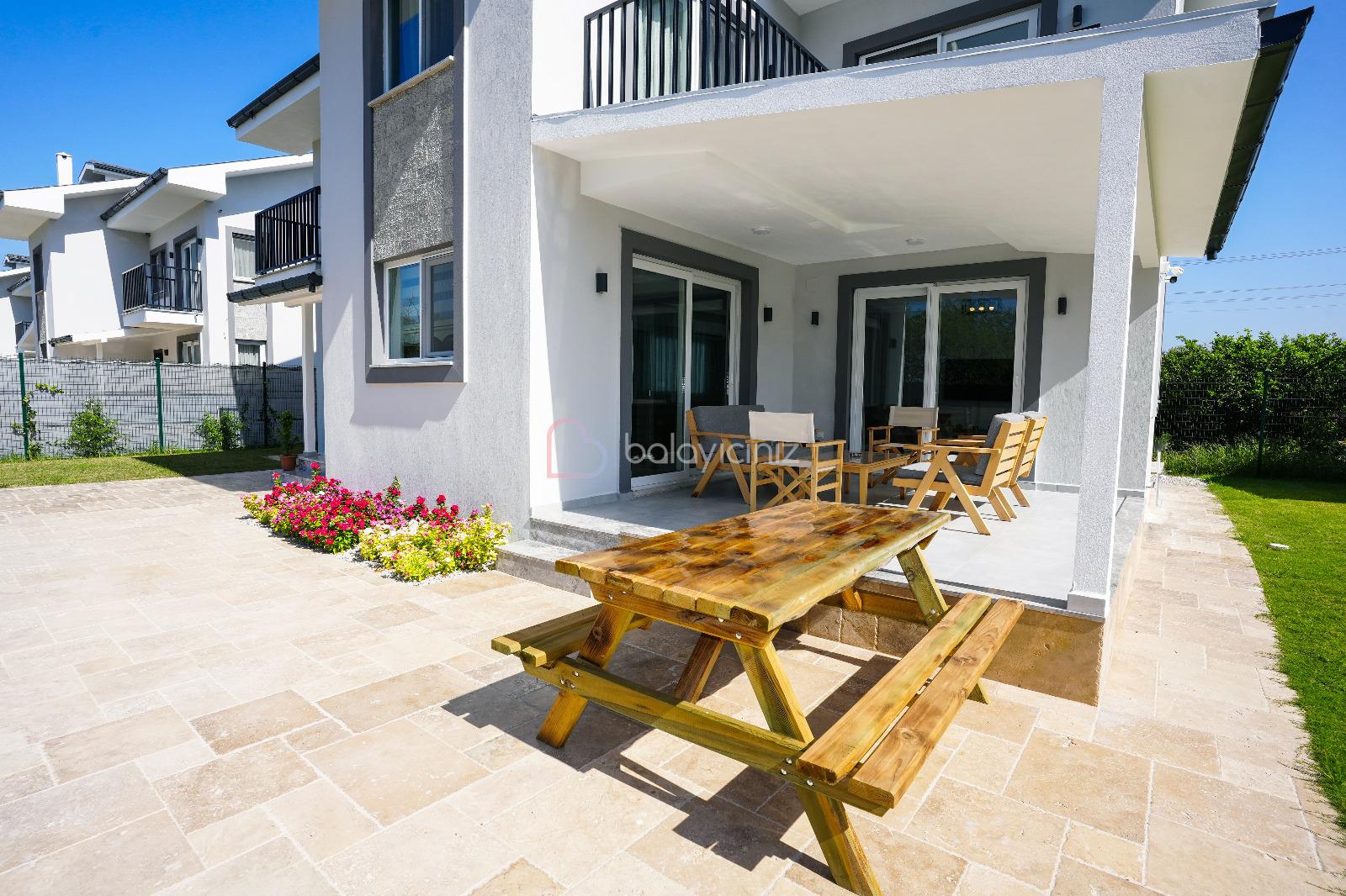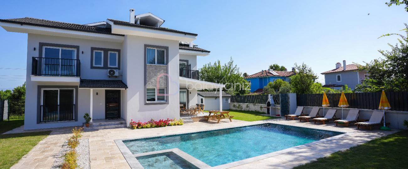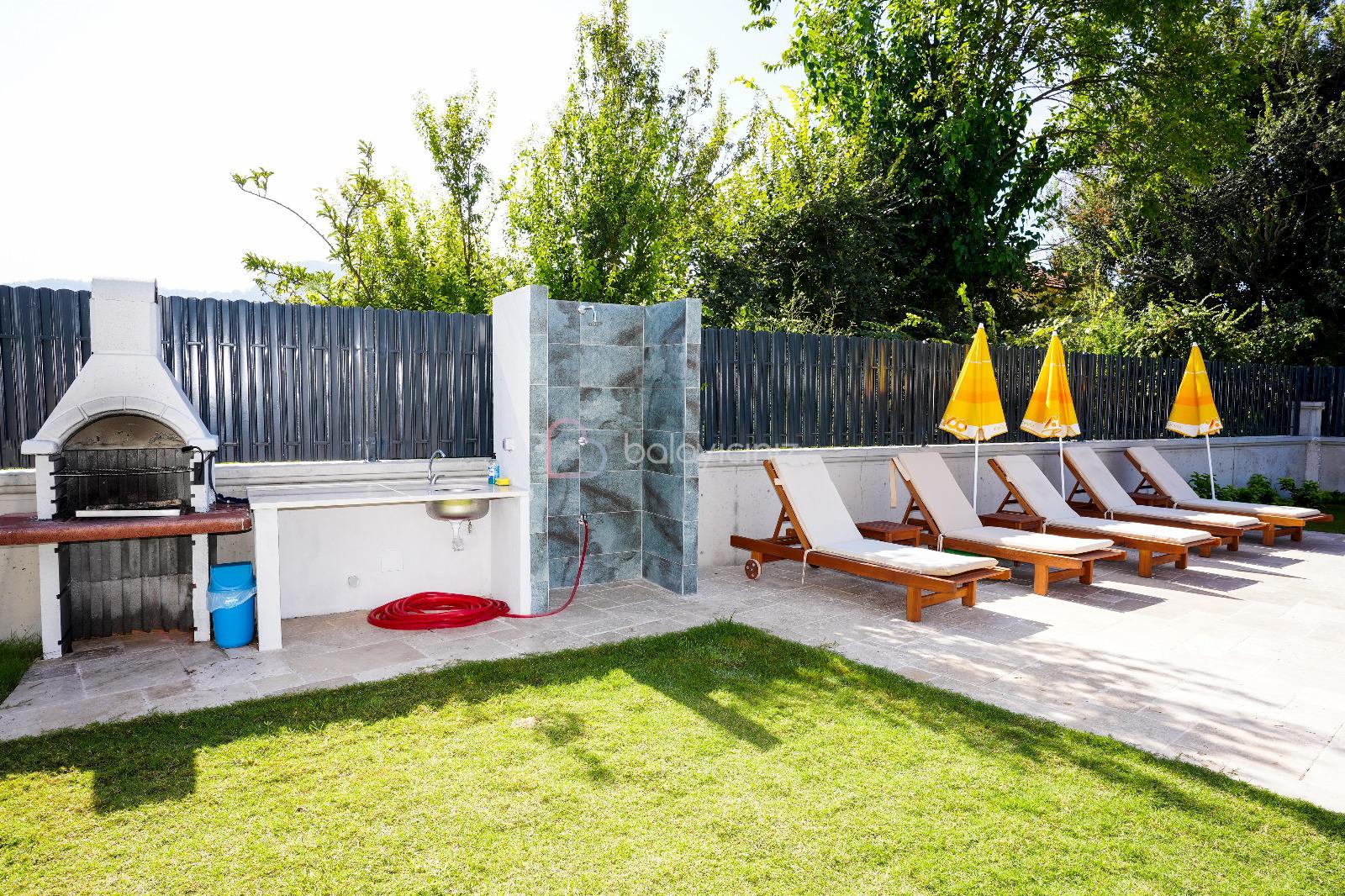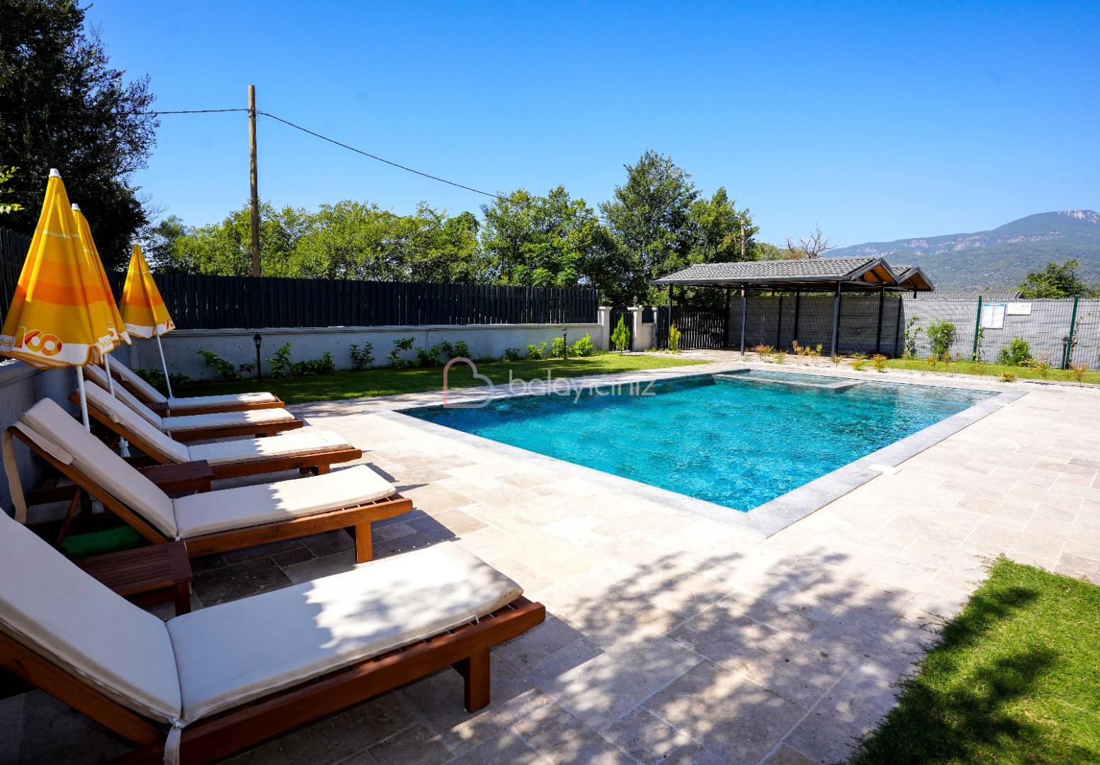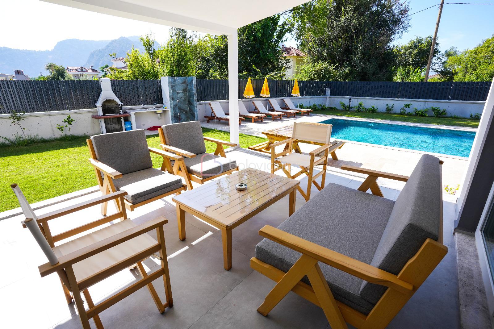 Havuz terasında özel yüzme havuzu, şezlonglar, güneş şemsiyesi, bahçe mobilyaları, mangal bulunmaktadır.