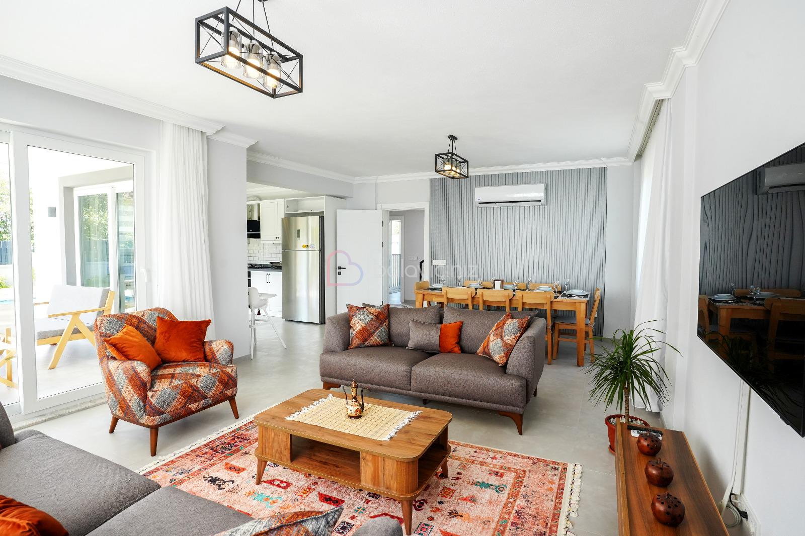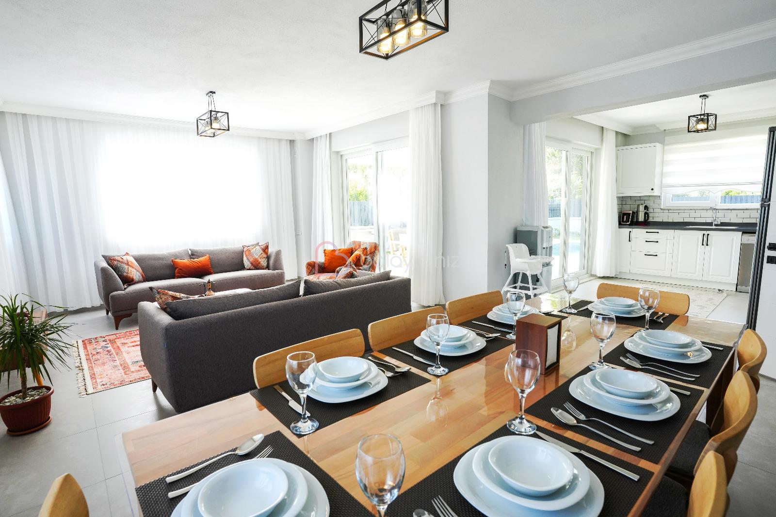 Oturma grubu, televizyon, orta sehpa, yemek masası, internet, Havuz terasına çıkış bulunmaktadır.