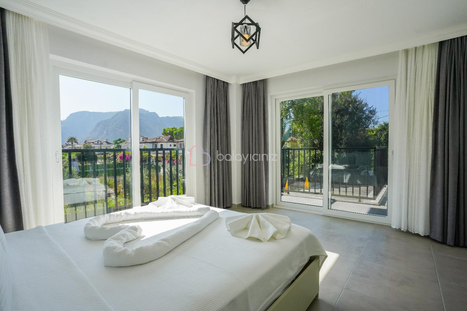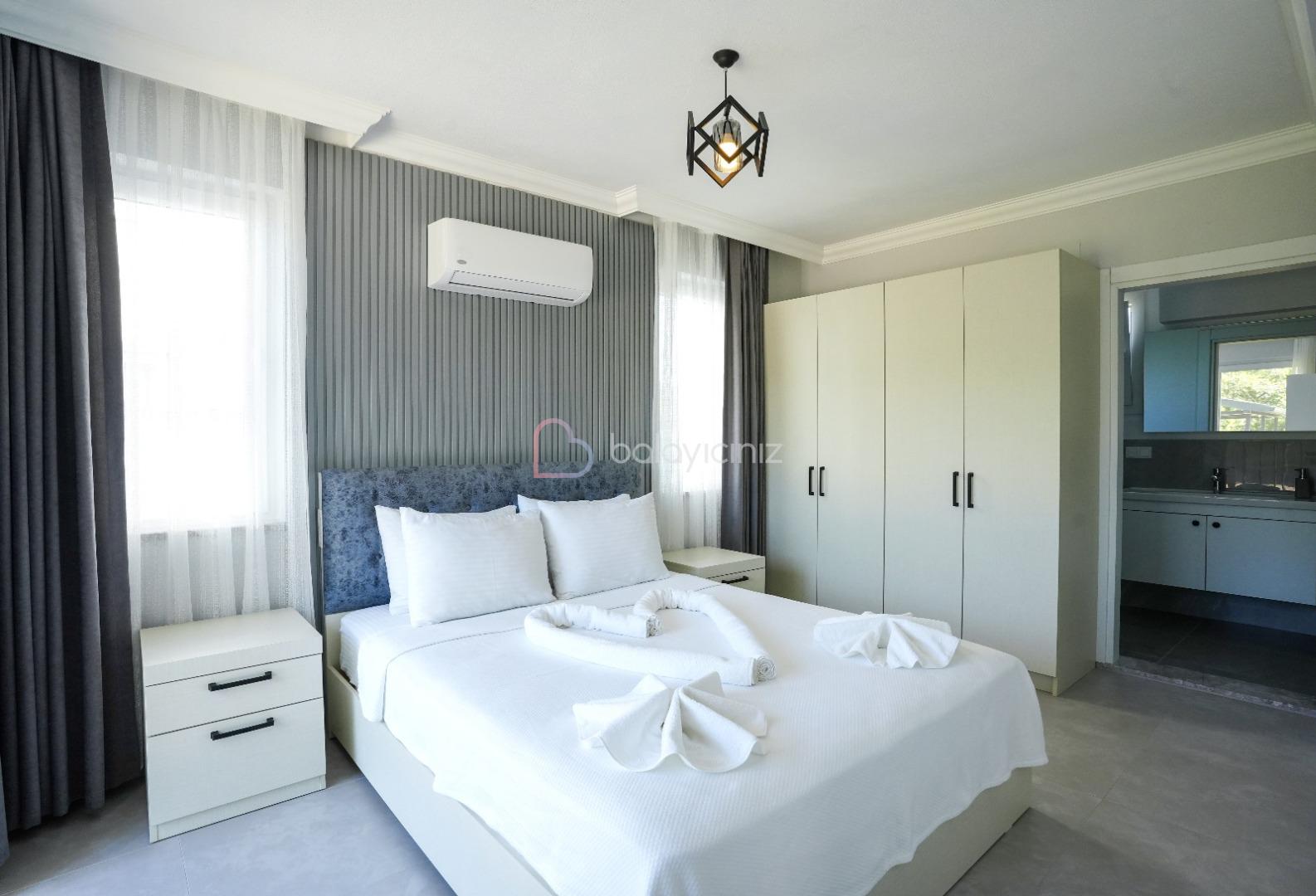 3.Yatak Odası: Çift kişilik yatak odası, klima, elbise dolabı, komidin, makyaj masası, banyo ve tuvalet bulunmaktadır.