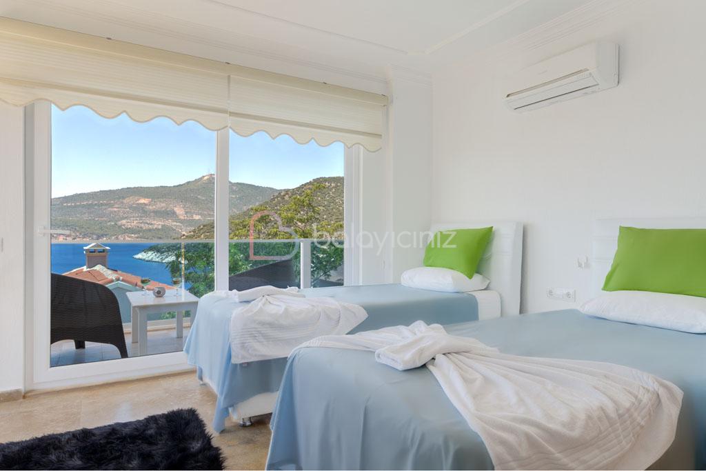 3. Yatak Odası: 2 adet tek kişilik yatak, komodin, elbise dolabı, makyaj masası, klima, banyo ve tuvalet bulunmaktadır.