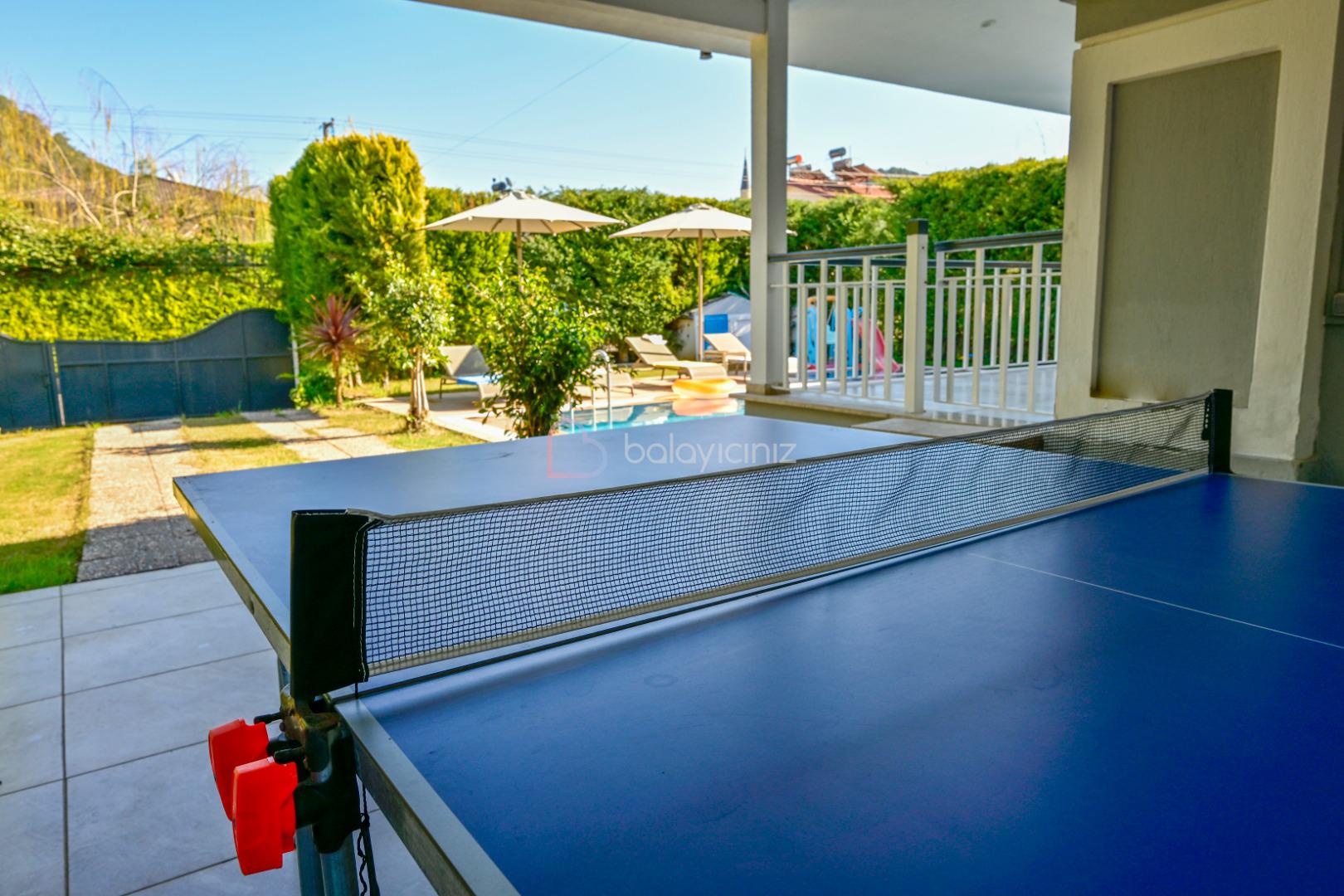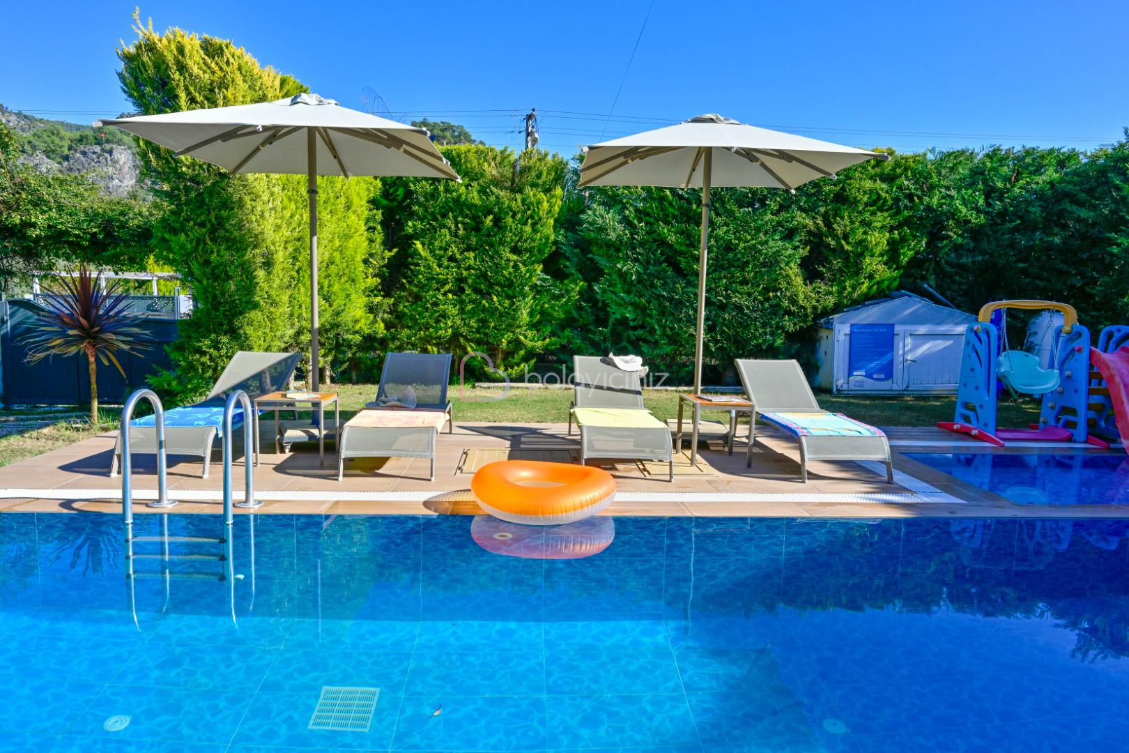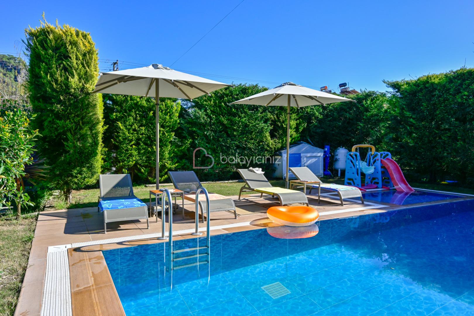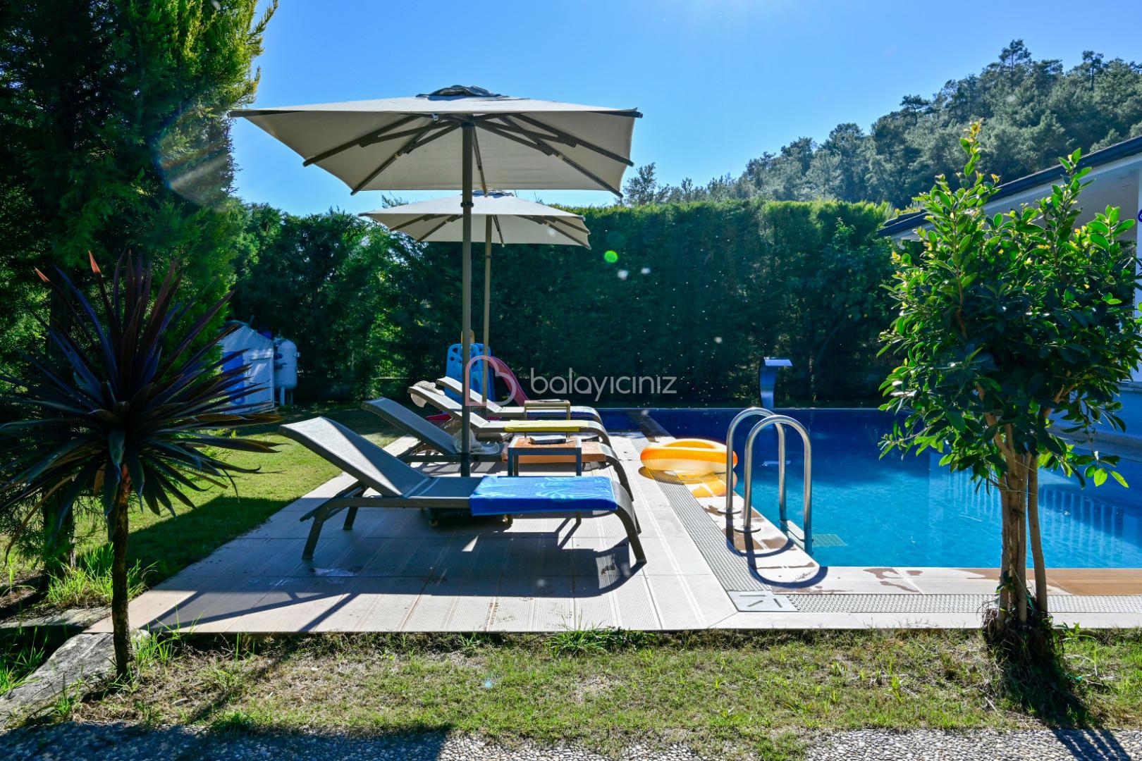 Özel yüzme havuzu, şezlong, şemsiye, barbekü alanı, yemek masası, oturma alanı, salıncak, otopark bulunmaktadır.