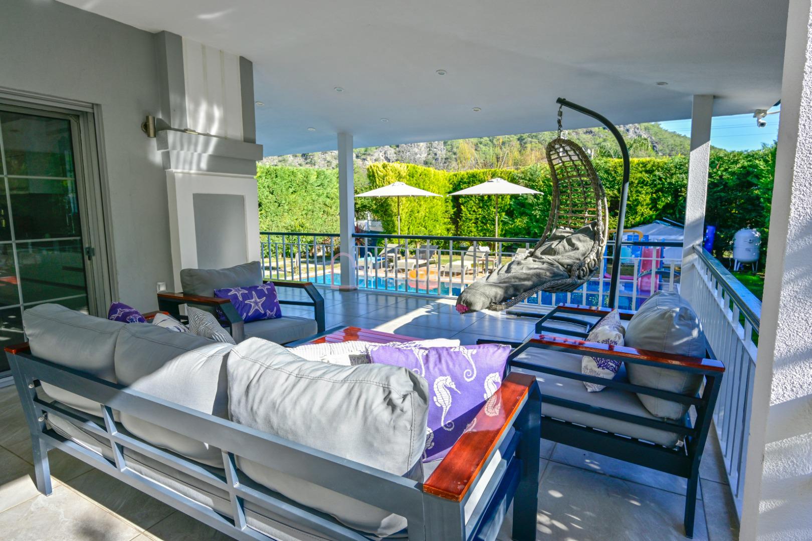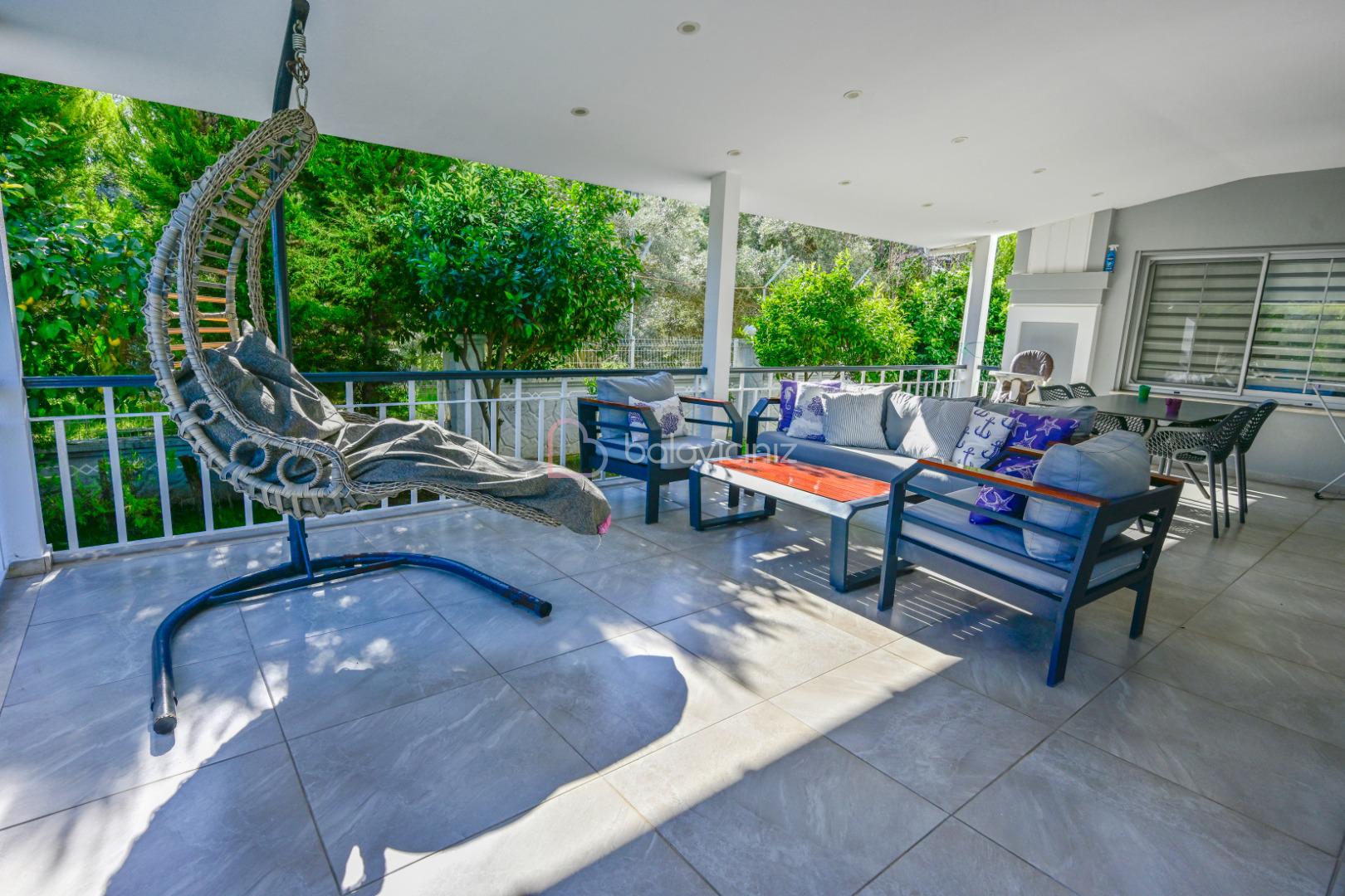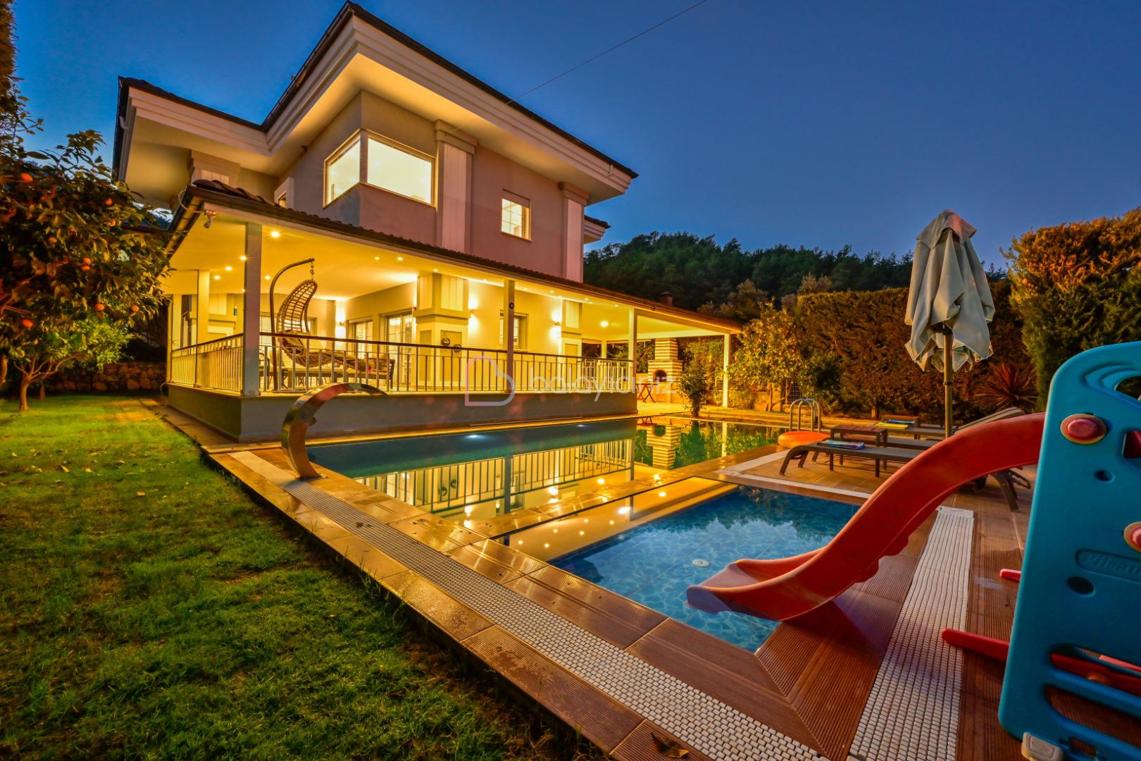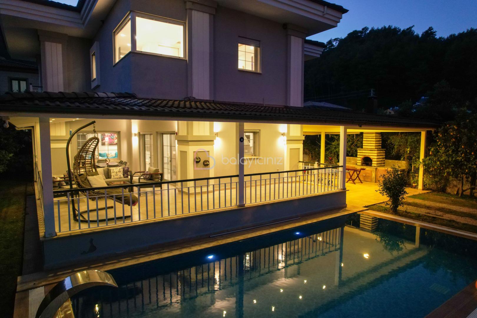 Özel yüzme havuzu, şezlong, şemsiye, barbekü alanı, yemek masası, oturma alanı, salıncak, otopark bulunmaktadır.