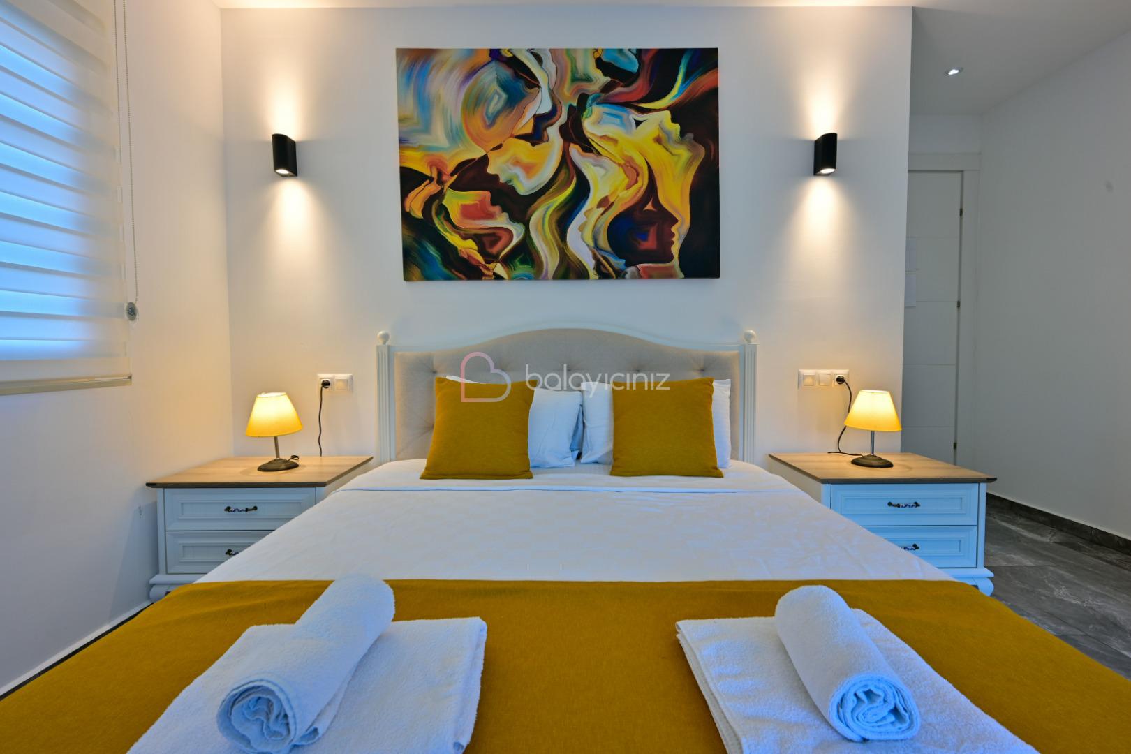 2.Yatak Odası: 1 adet çift kişilik yatak, makyaj masası, elbise dolabı, klima, banyo, tuvalet, havuz terasına çıkış bulunmaktadır.