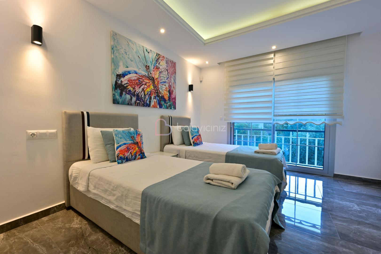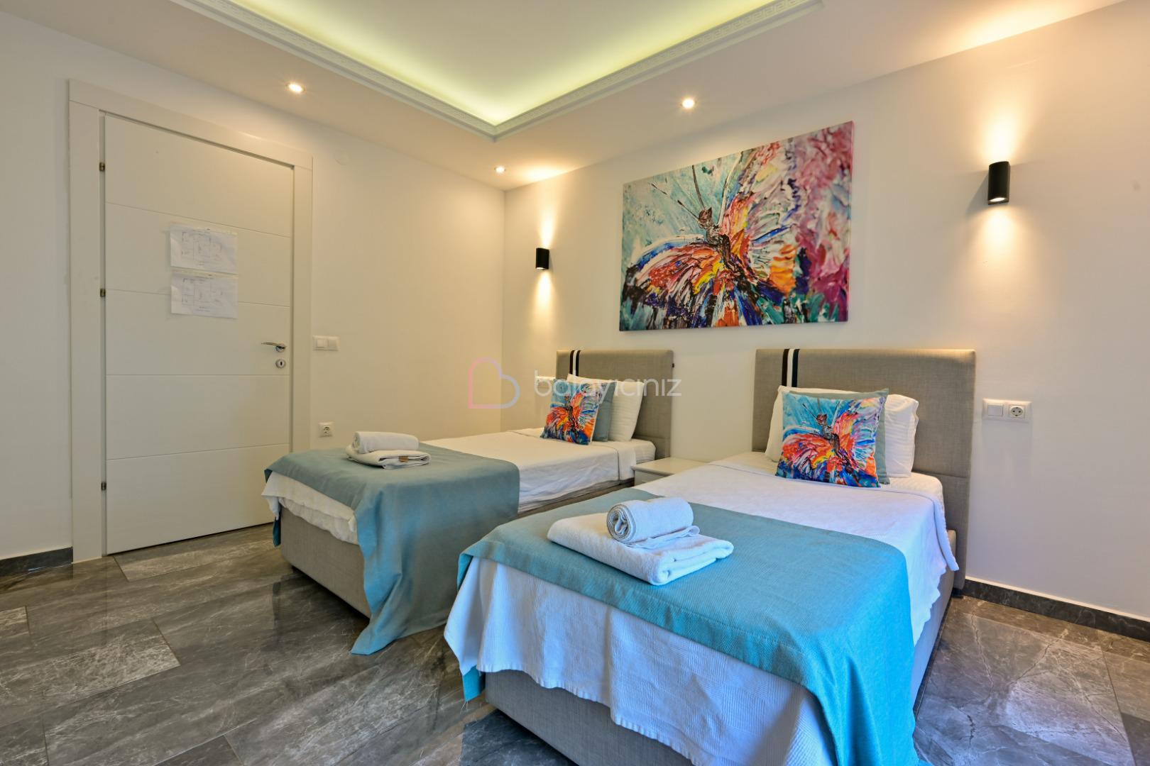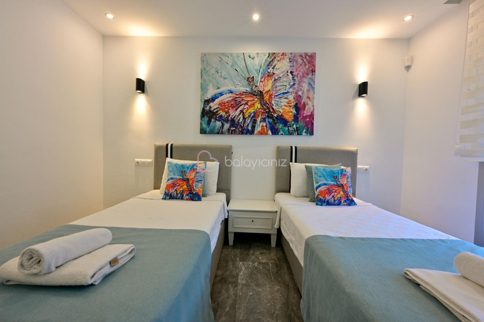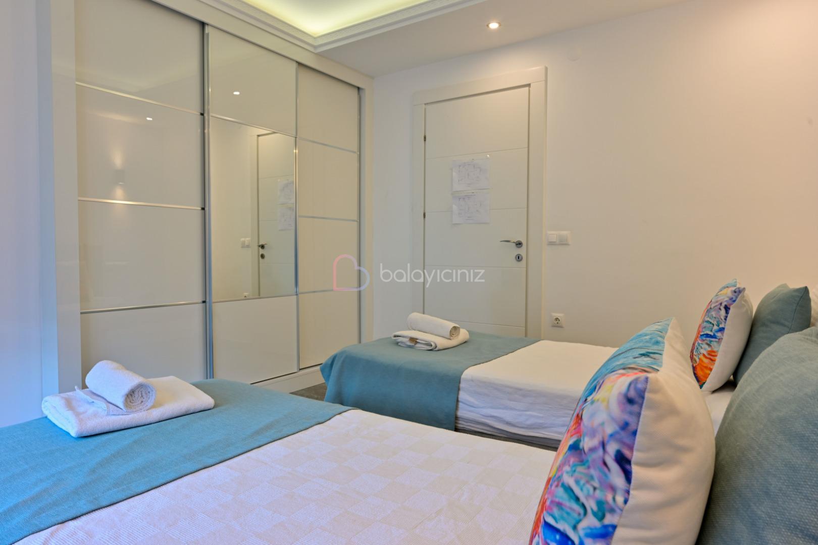 3.Yatak Odası: 2 adet tek kişilik yatak, makyaj masası, elbise dolabı, klima, banyo, tuvalet, havuz terasına çıkış bulunmaktadır.